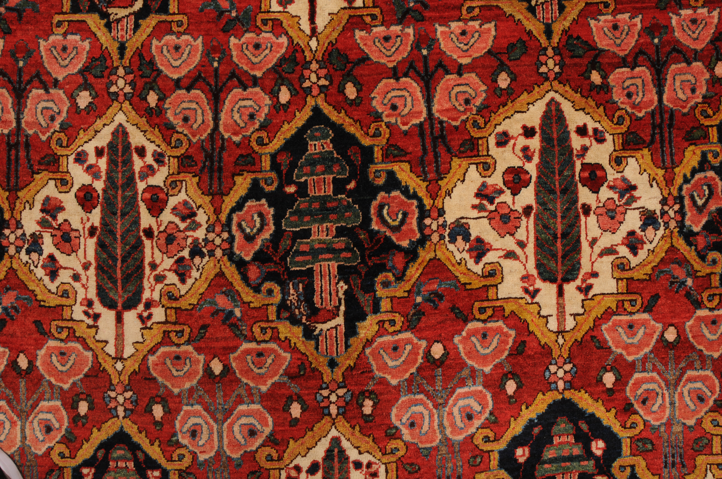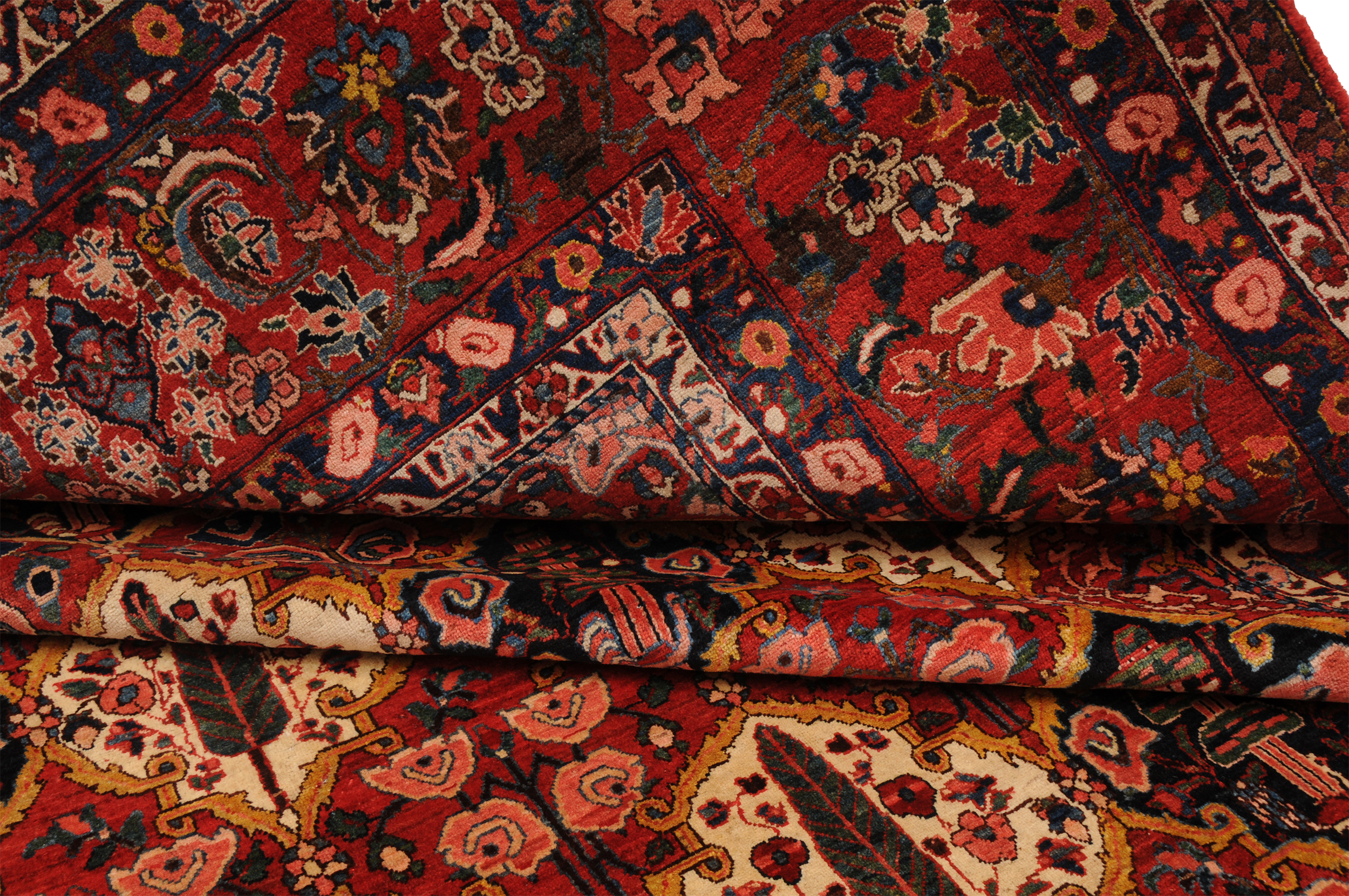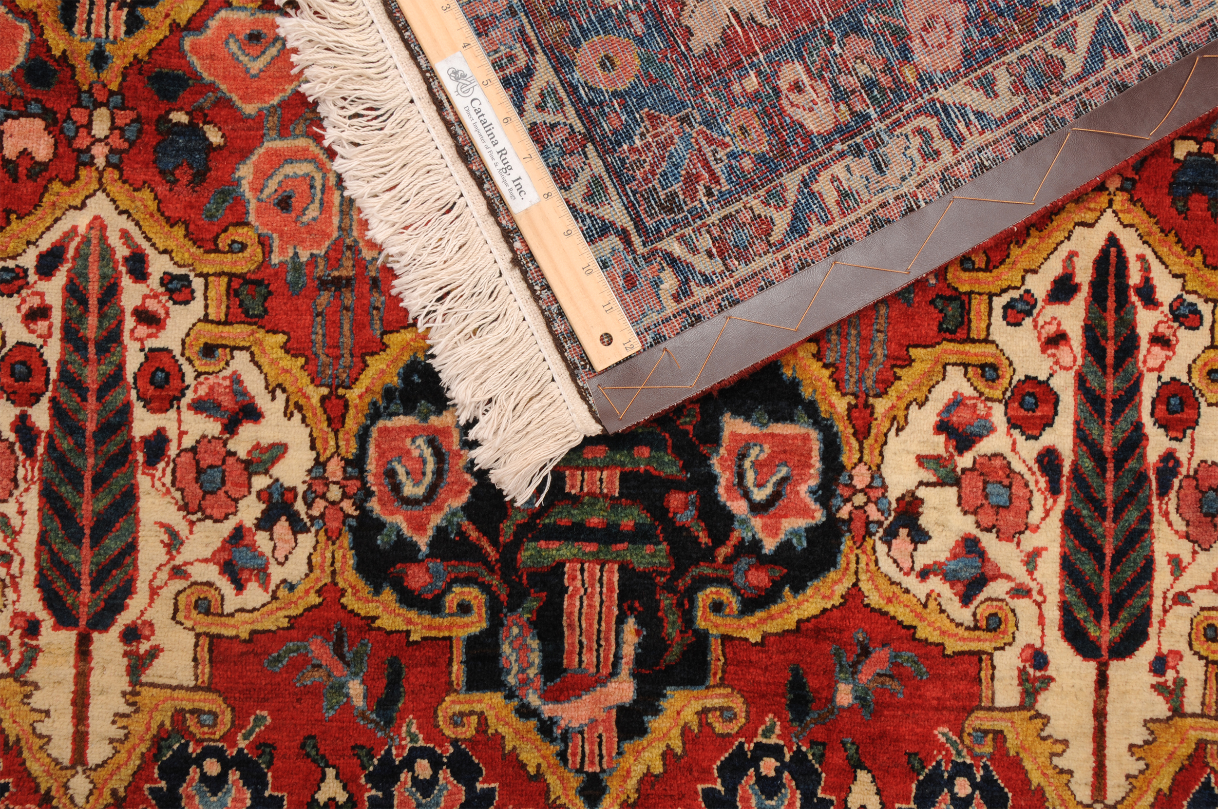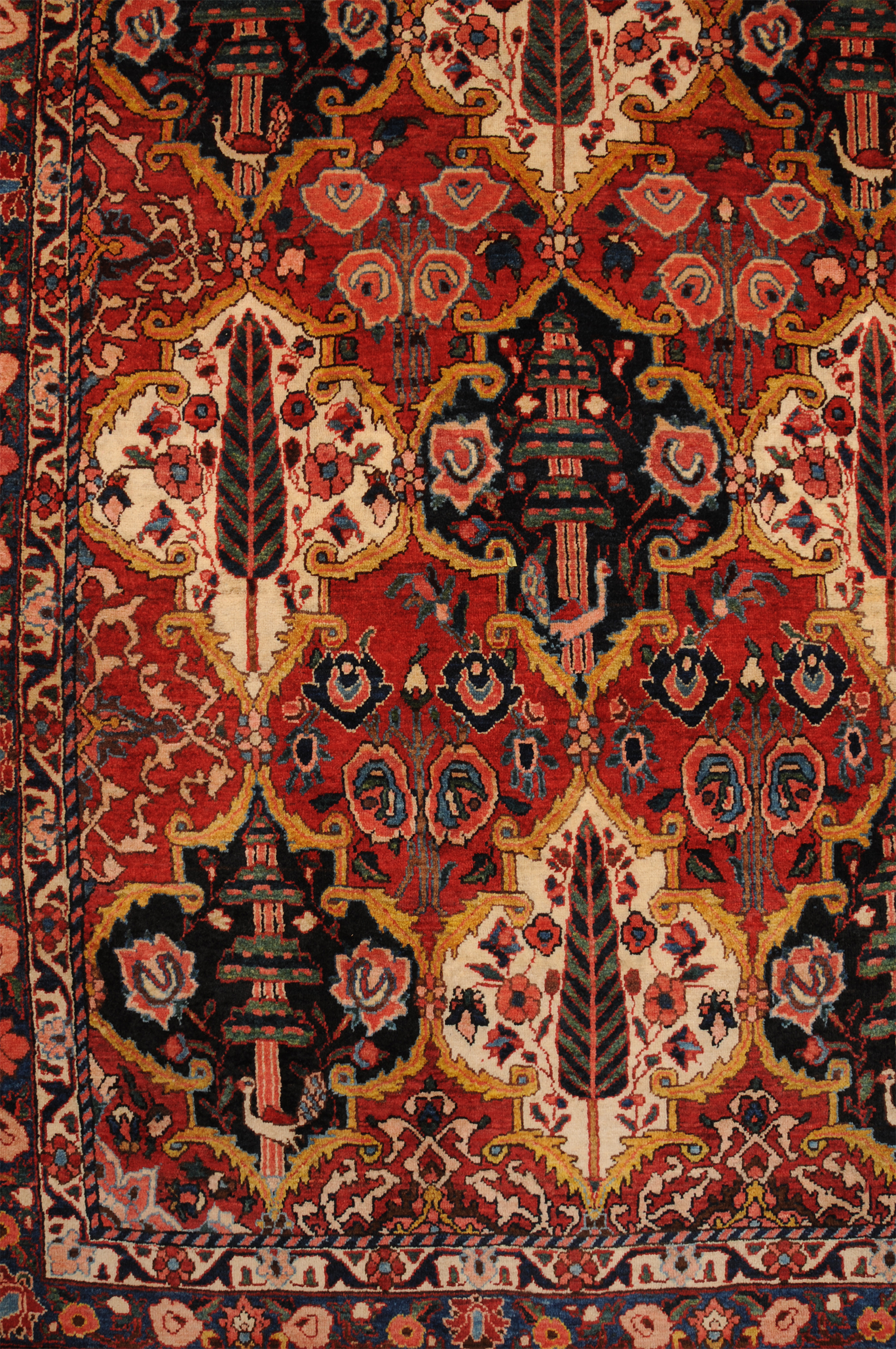 This Persian Rug is hand-knotted with 100% Wool Pile and Cotton Foundation. This Rug has a Garden Design and its Main colors are Orange, Brown, and Peach.