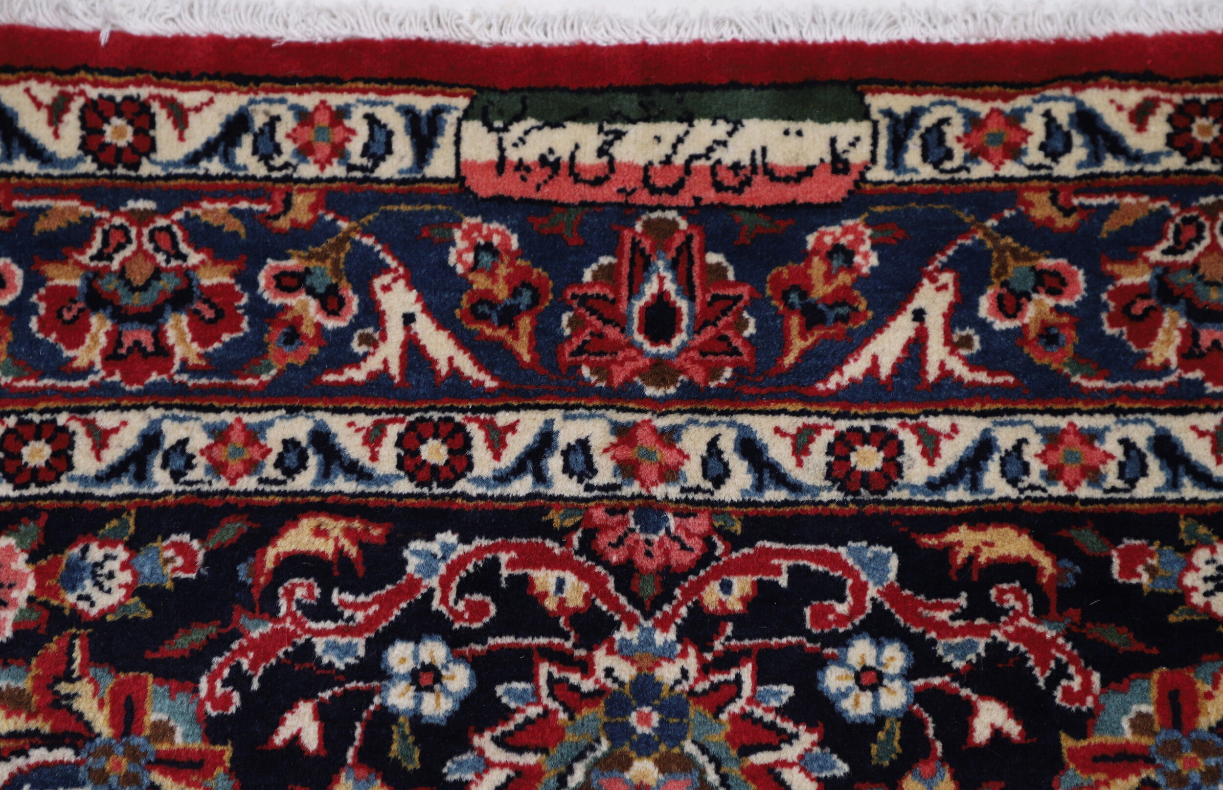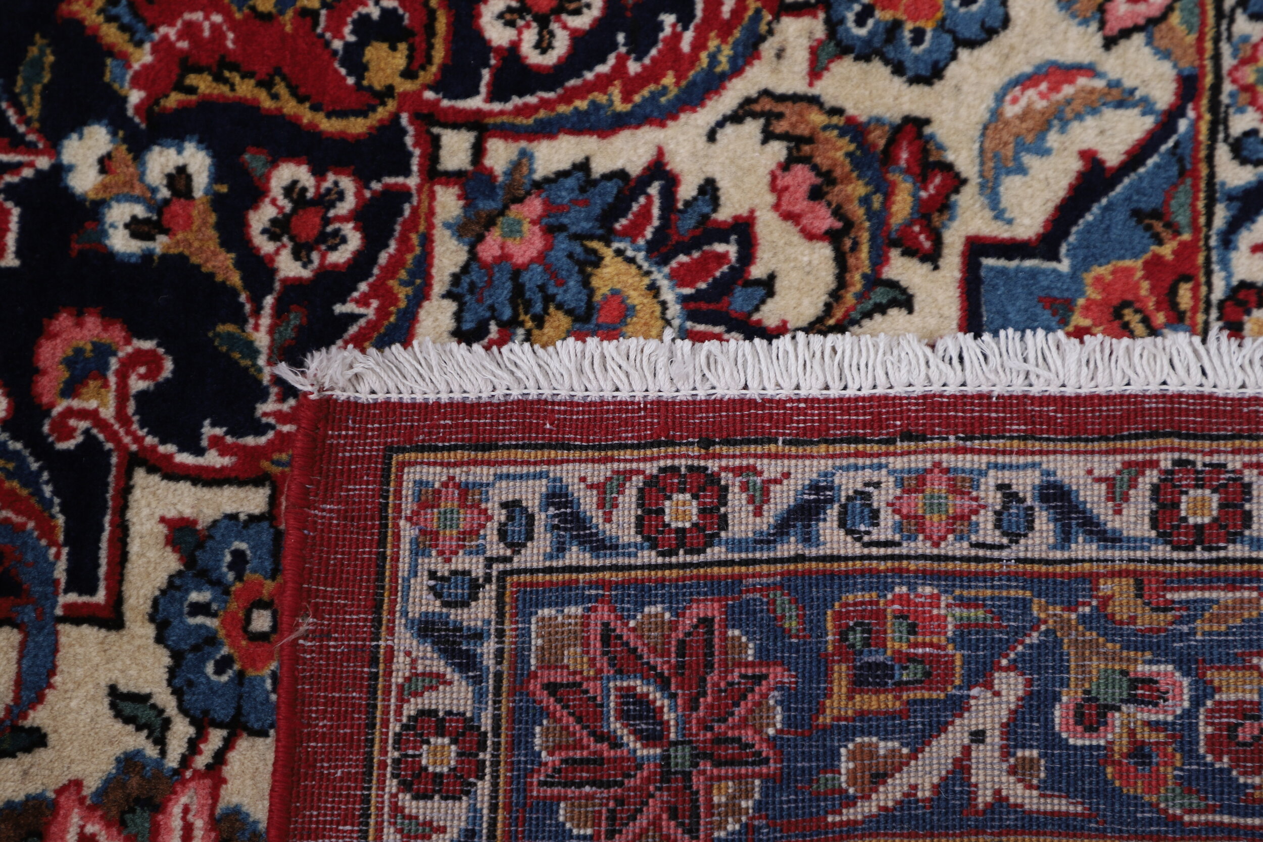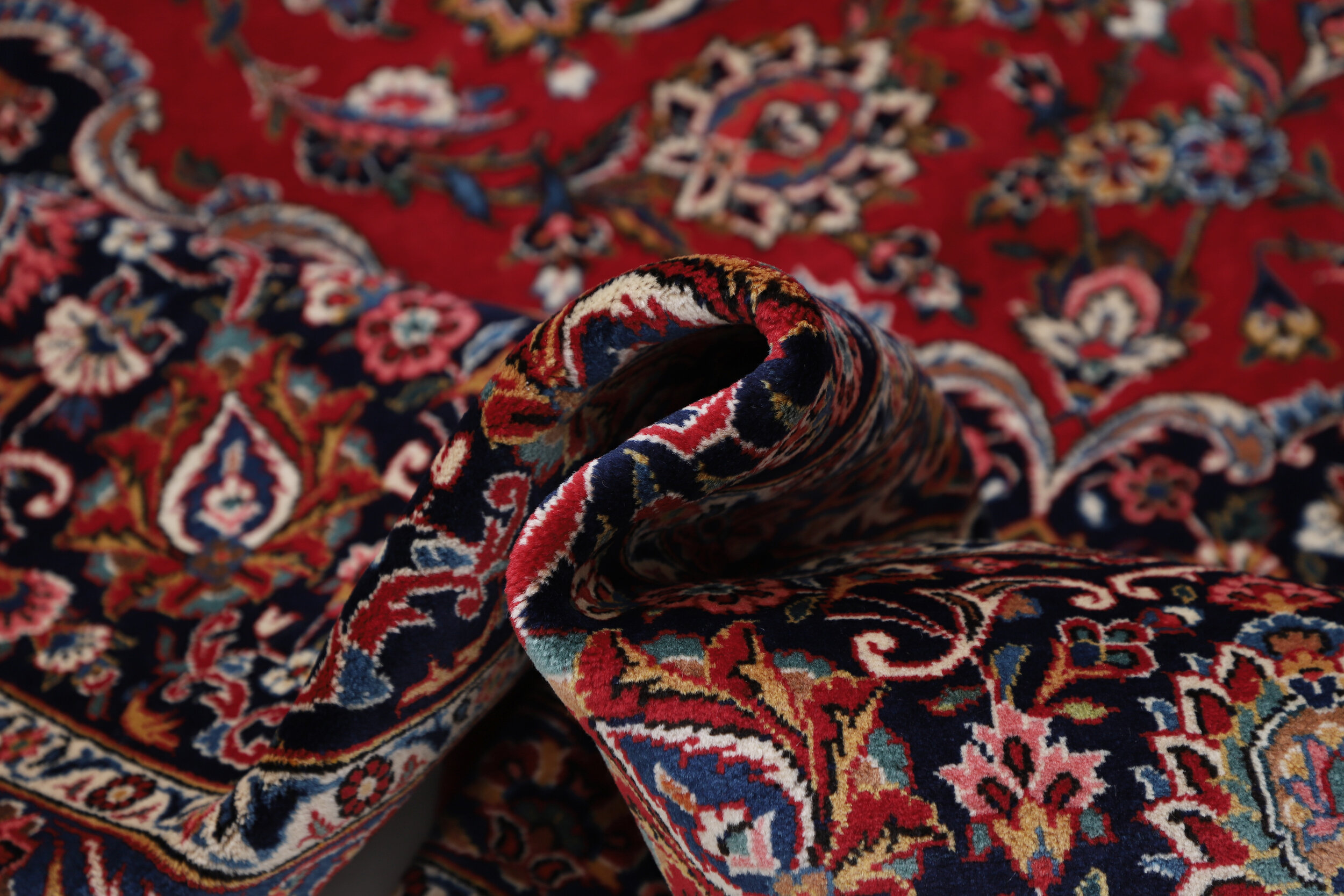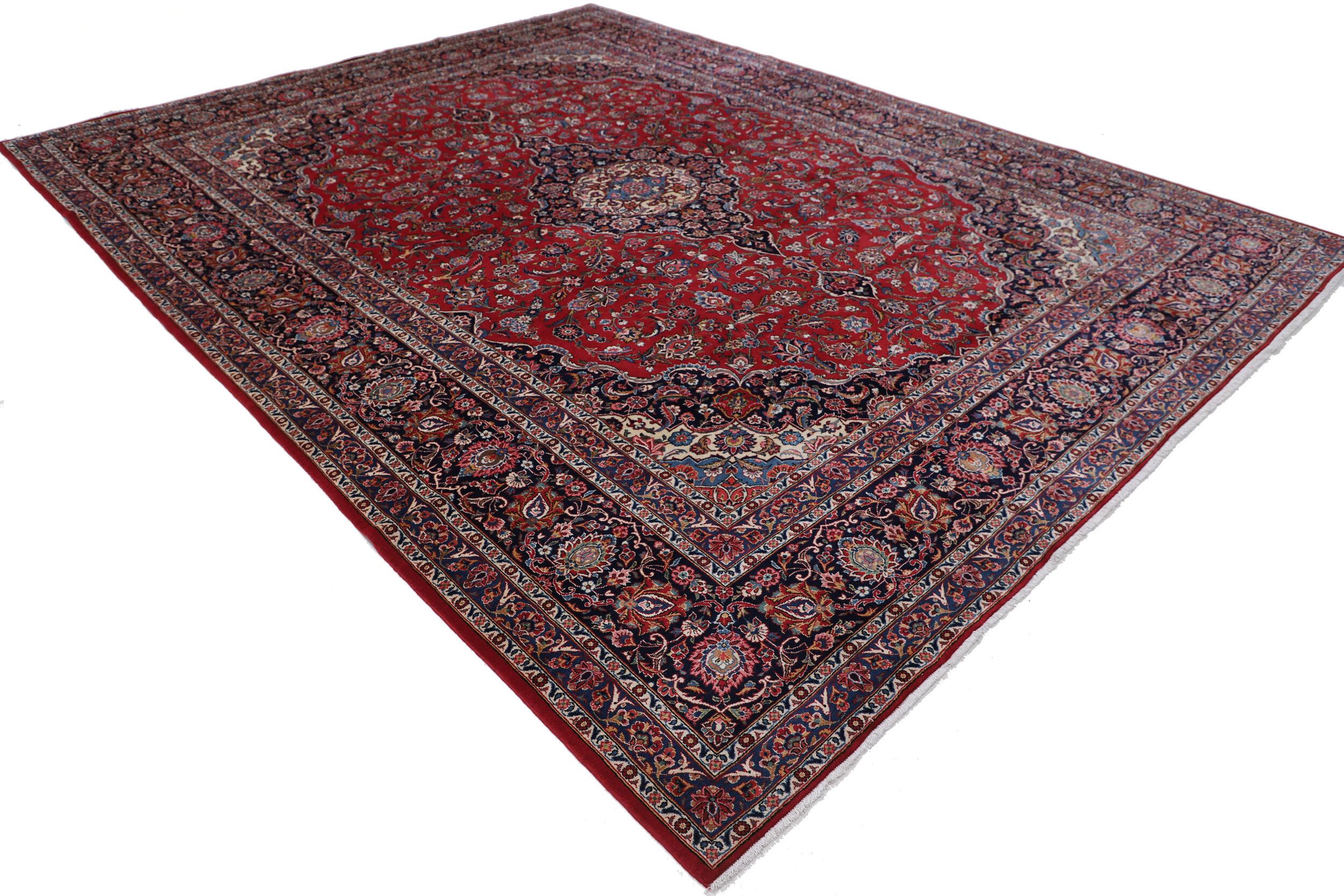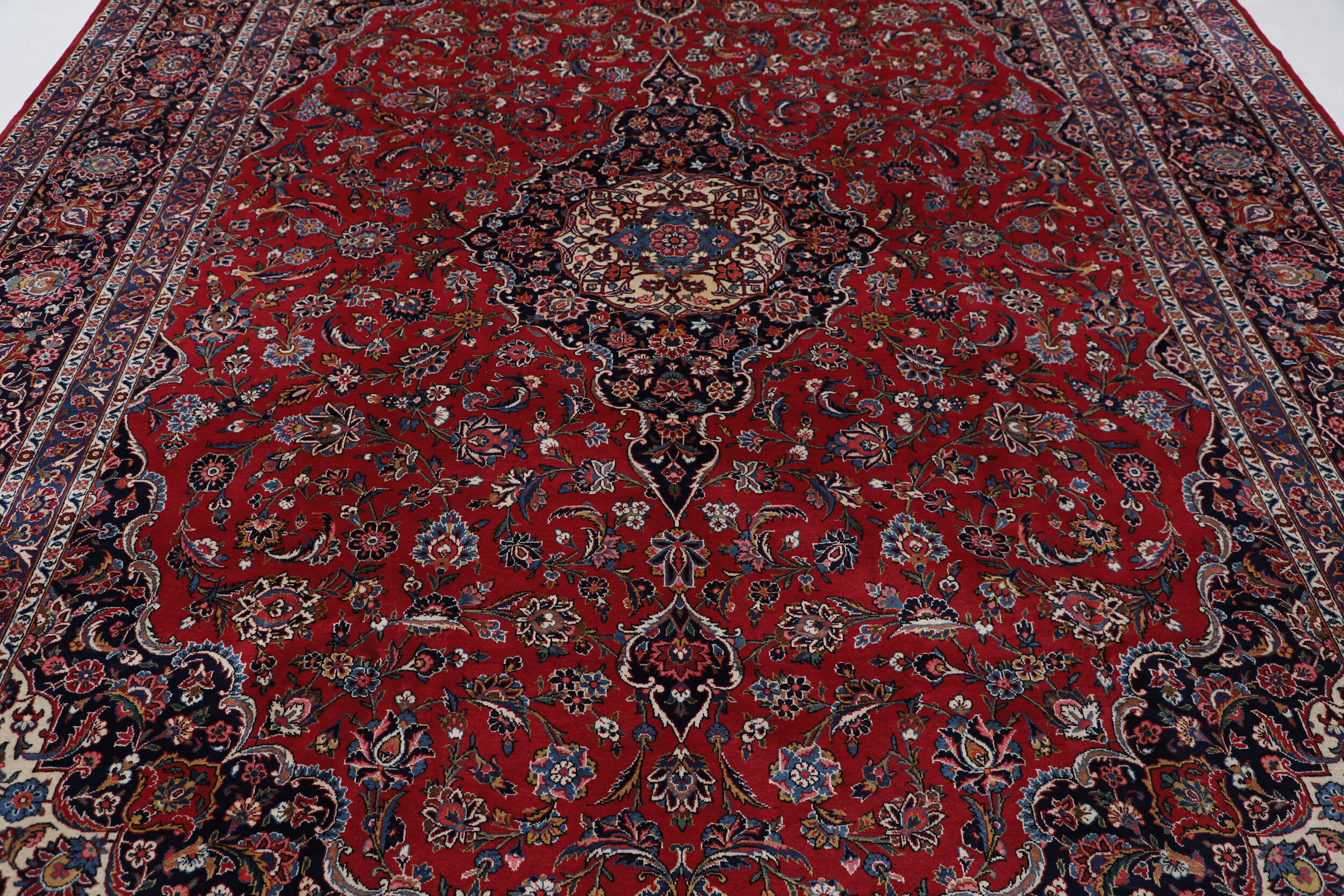 This Hand Knotted Kashan rug measures 10’6″ x 13’10” and features an aged (40-50 years) red and beige floral design. With an approximate knot count of 225 KPSI, this rug is made using 100% wool and cotton materials, and has a high pile height ranging from 1/2″ to 5’8″. This rug is perfect for adding warmth and texture to any living space or bedroom.