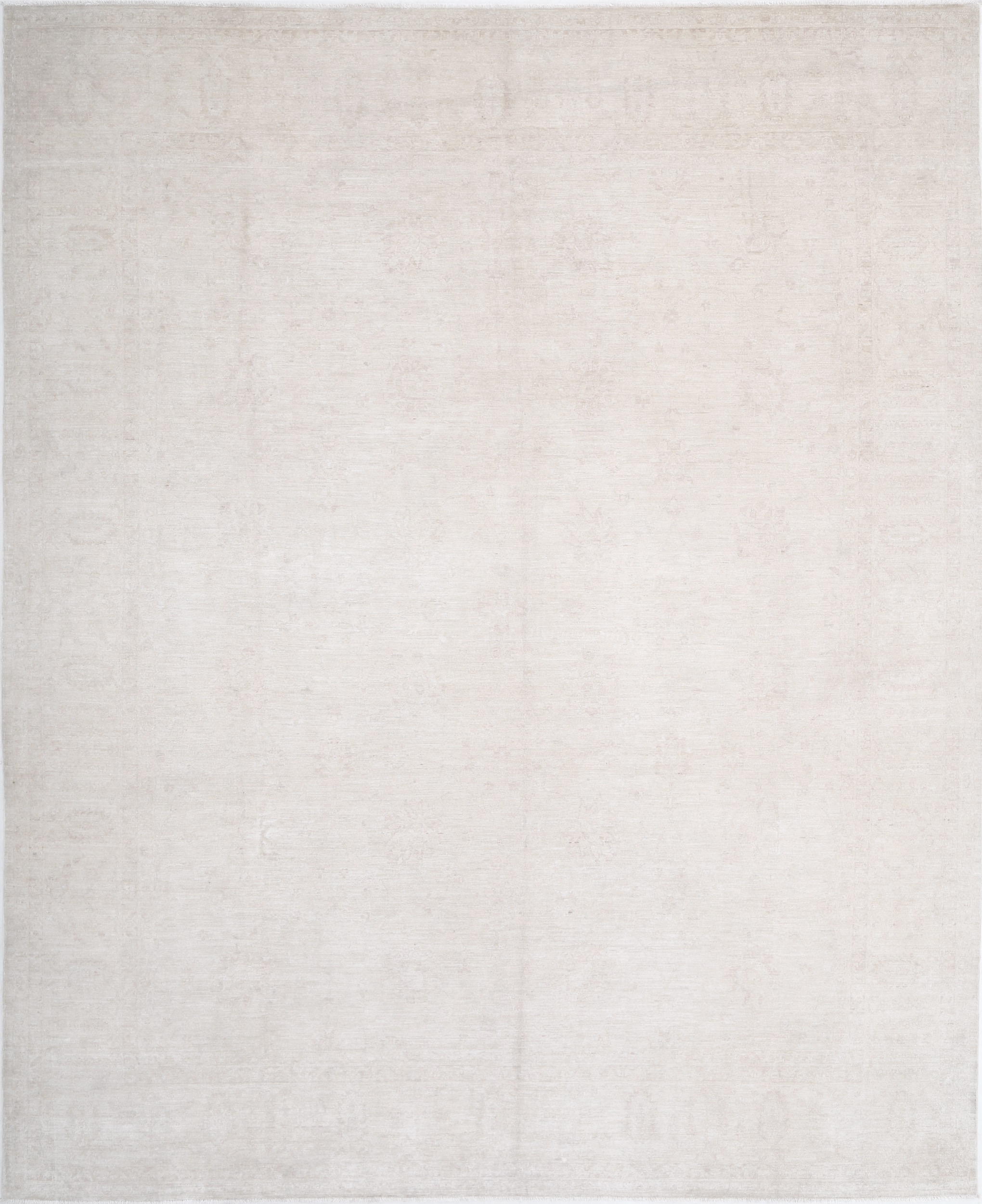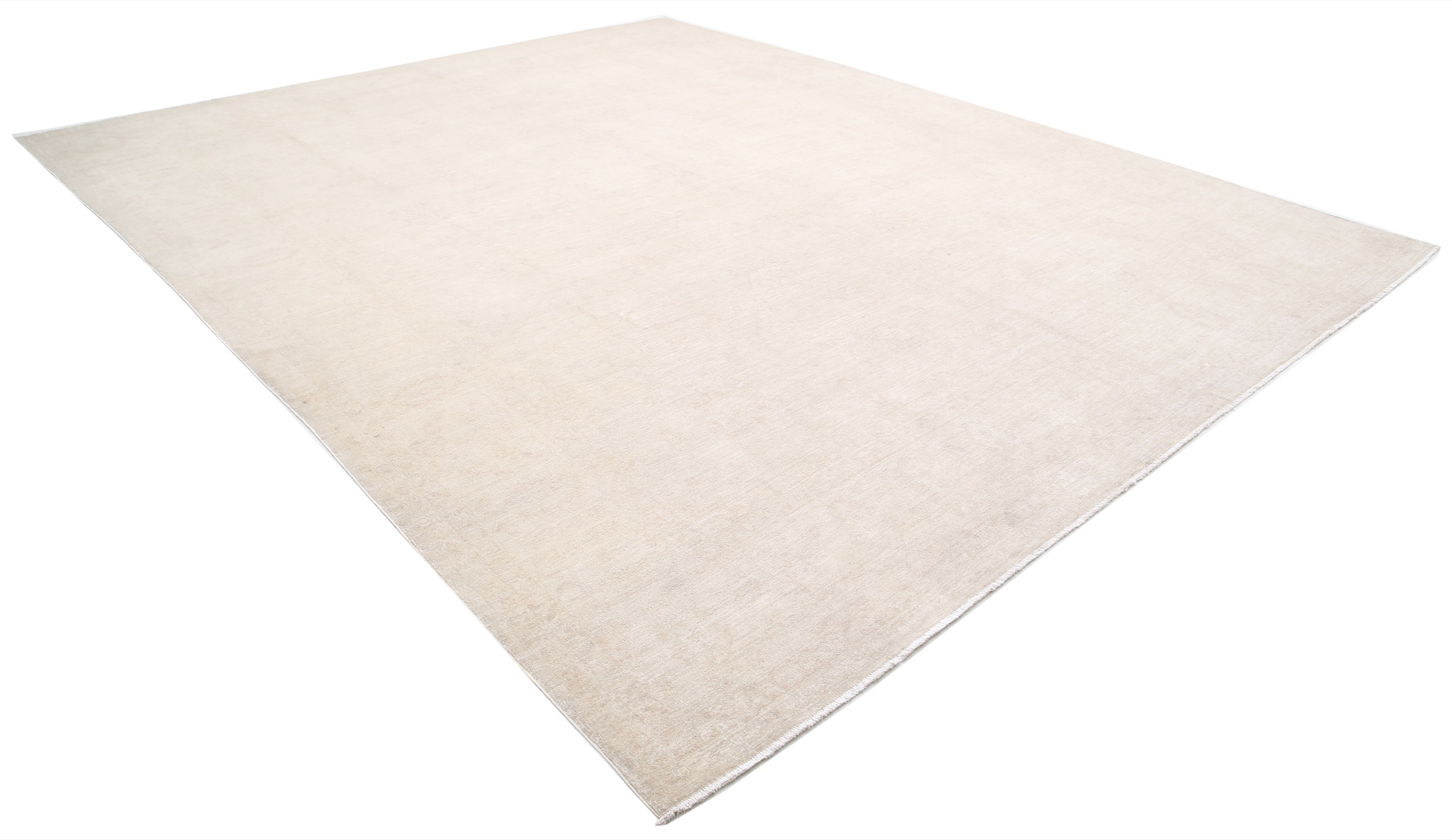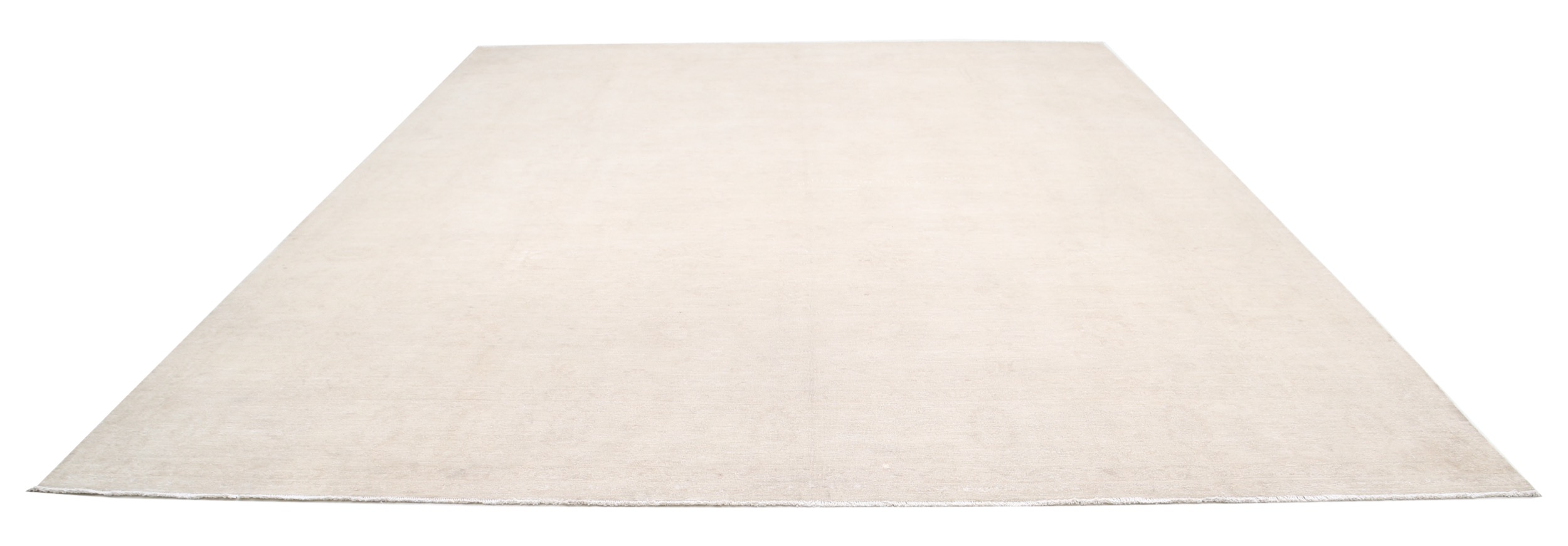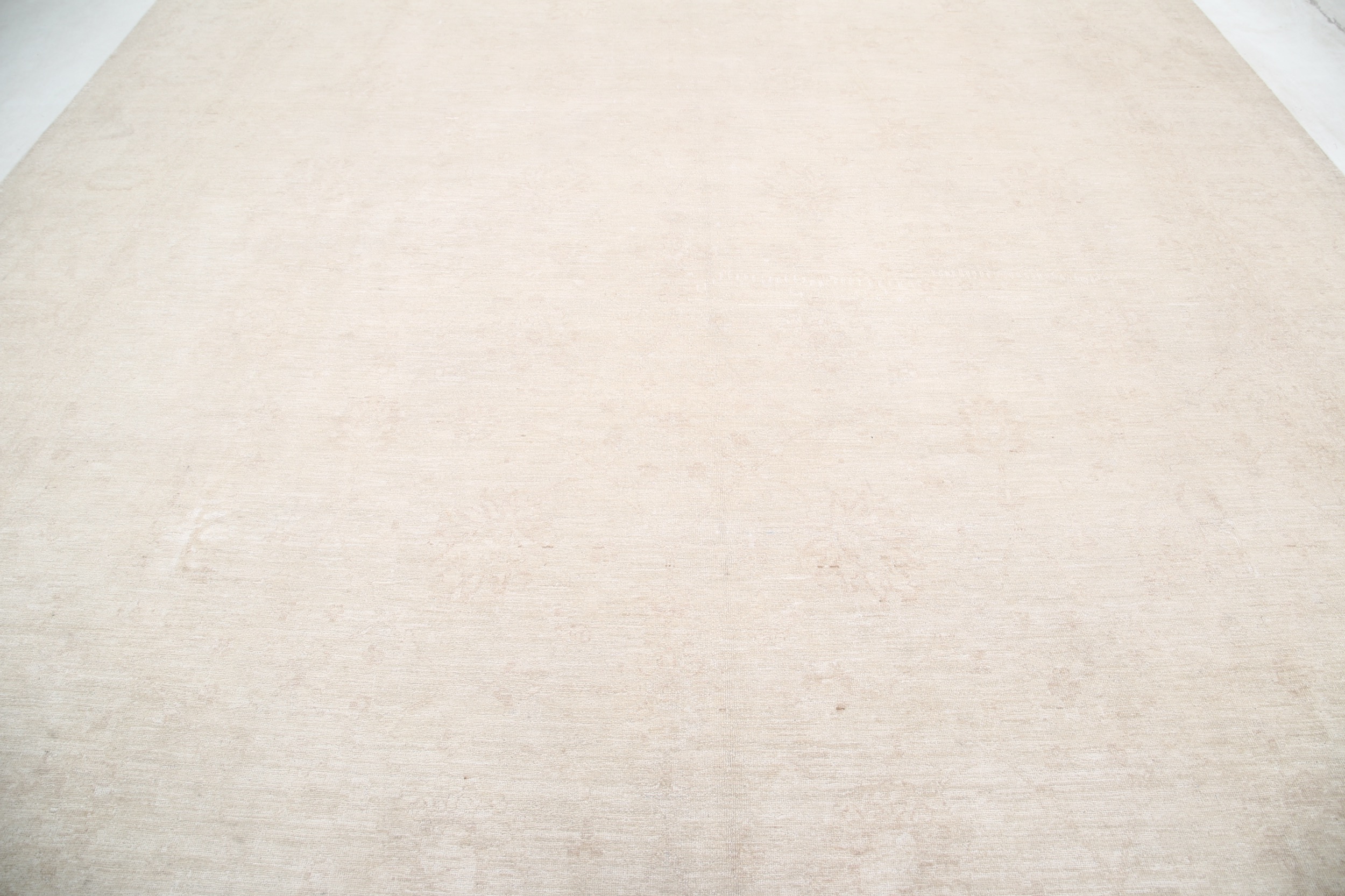This 11’9″ x 14’3″ Oushak rug, hand-knotted in Afghan / Pakistan, features a allover design. It is woven with Approx. 156KPSI, showcasing a field in Beige and a Taupe border. The rug has a Medium Pile and a 100% Wool pile, and is in excellent condition.