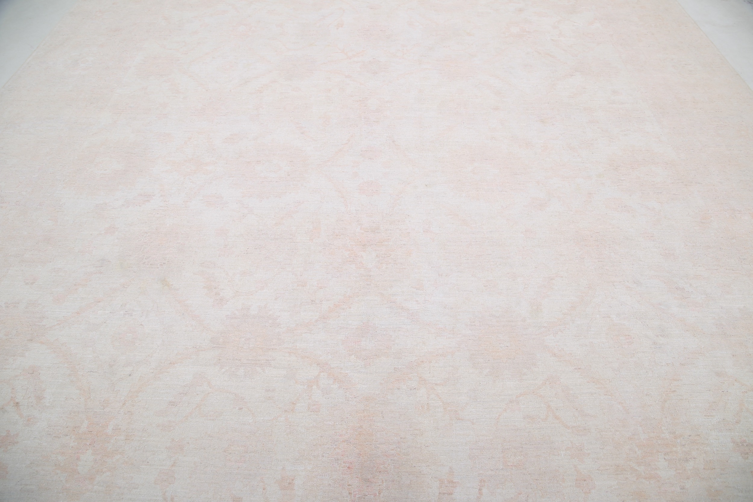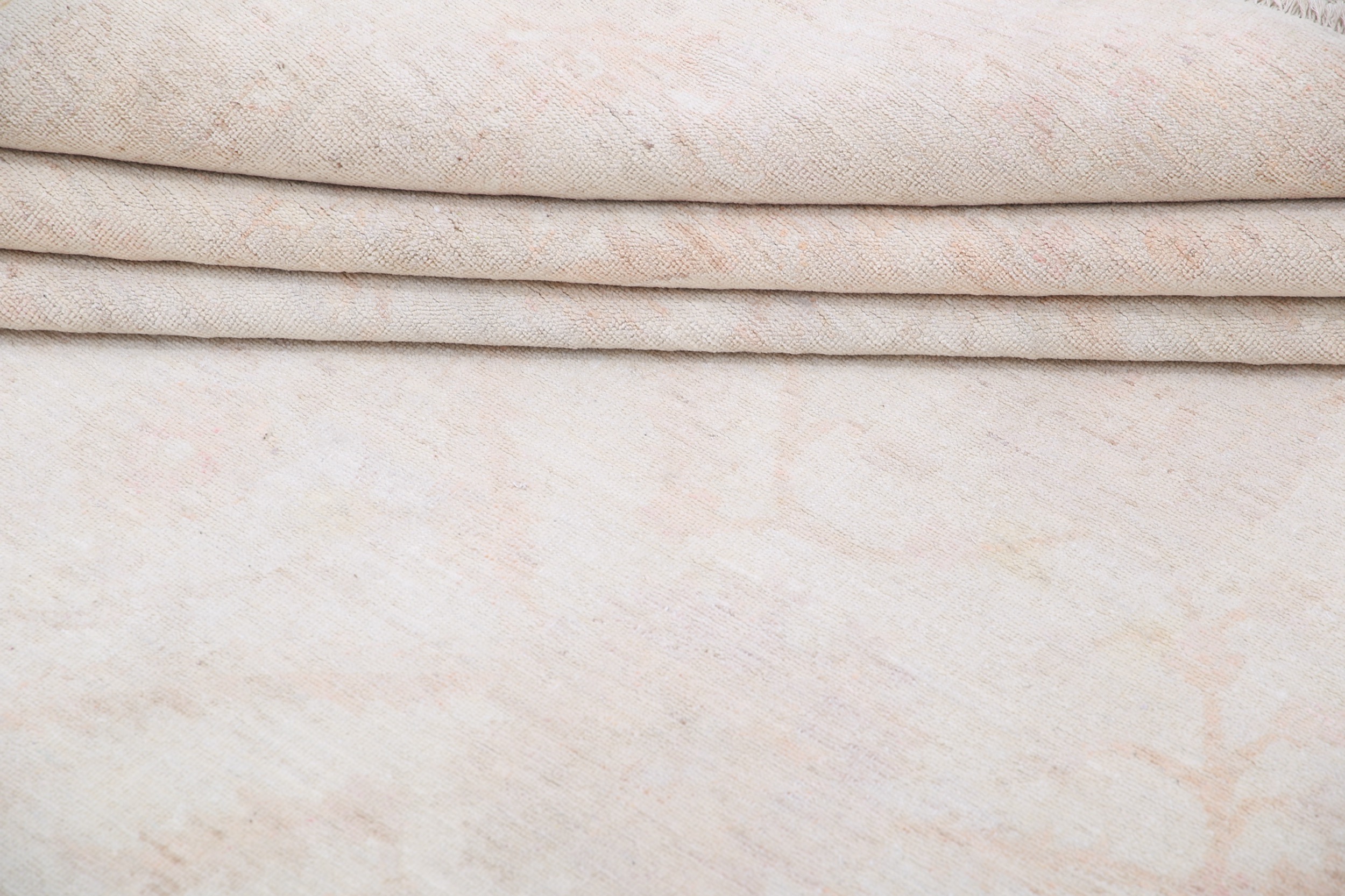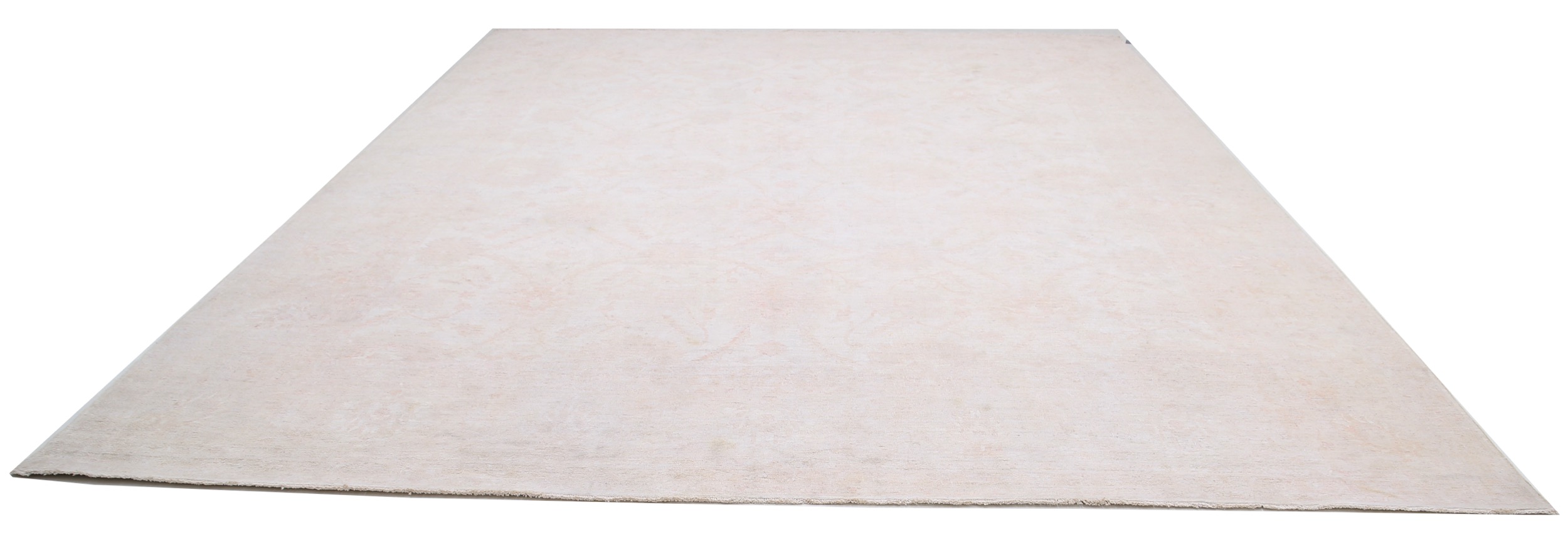 This 11’9″ x 14’6″ Oushak rug, hand-knotted in Afghan / Pakistan, features a allover design. It is woven with Approx. 156KPSI, showcasing a field in Beige and a Beige border. The rug has a Medium Pile and a 100% Wool pile, and is in excellent condition.