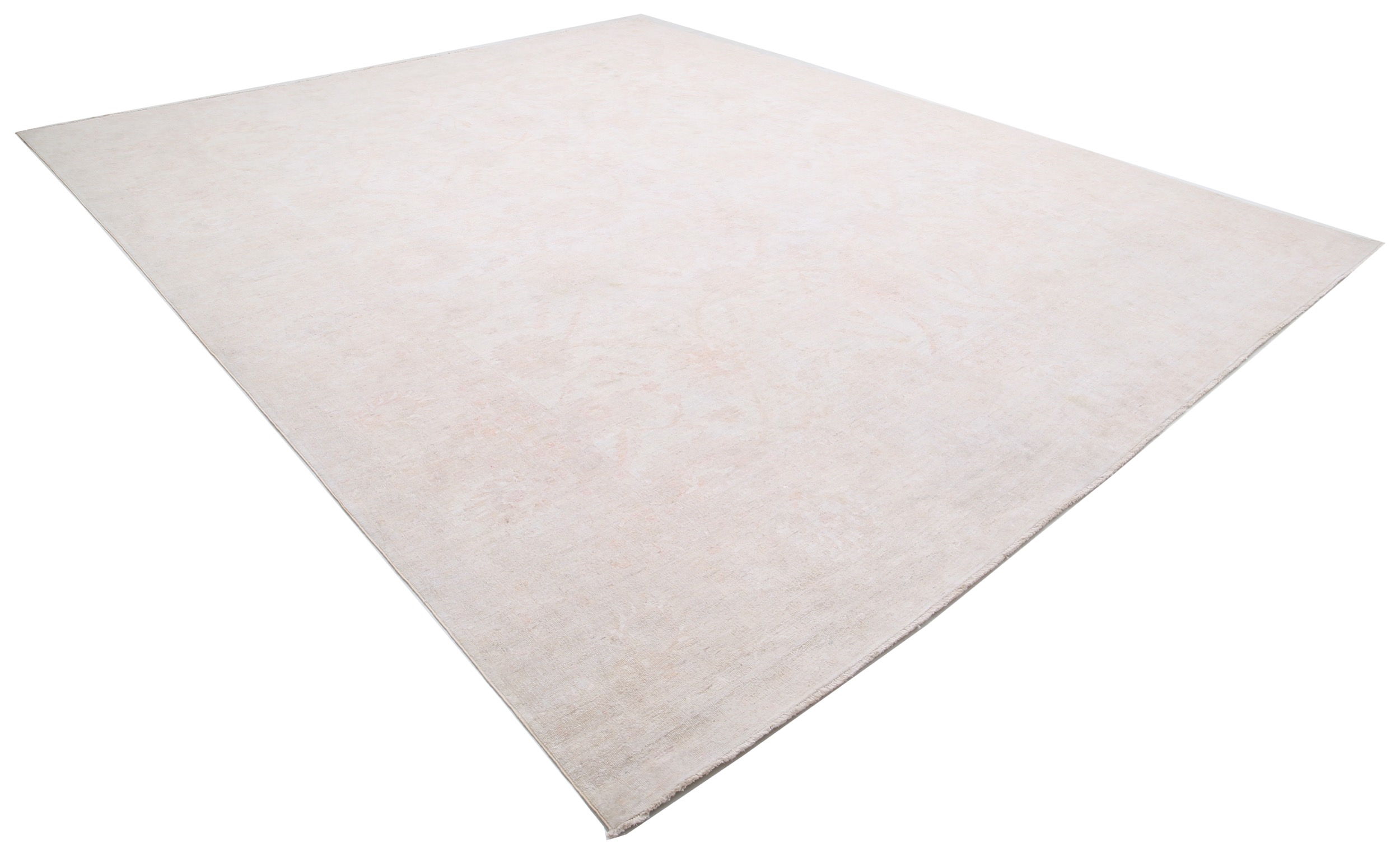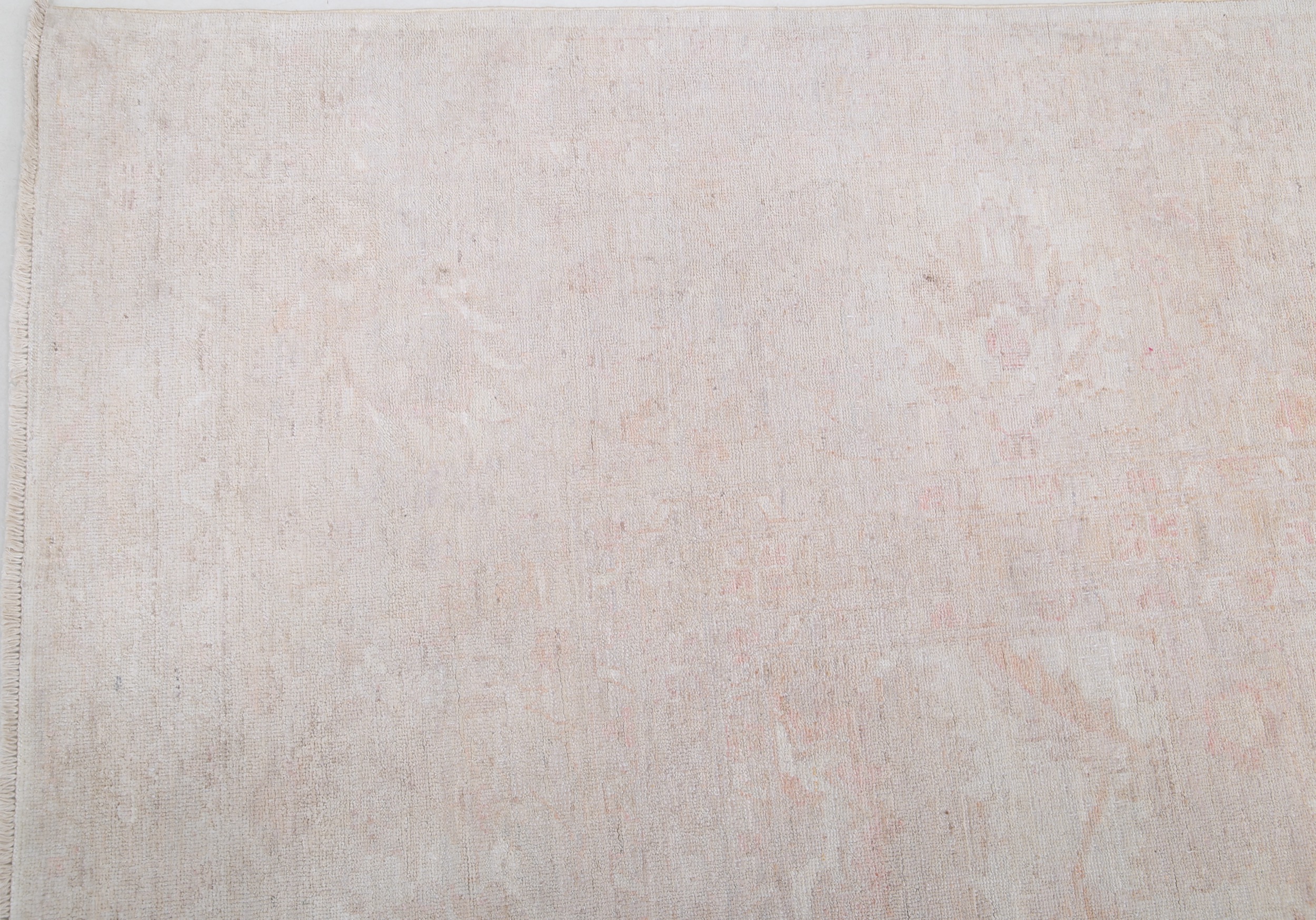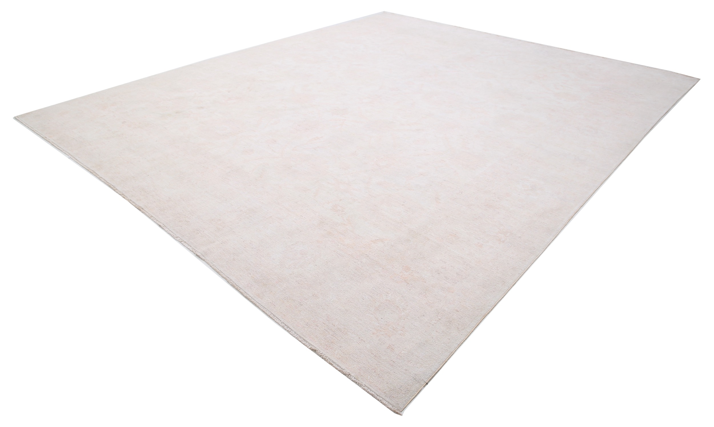This 11’9″ x 14’6″ Oushak rug, hand-knotted in Afghan / Pakistan, features a allover design. It is woven with Approx. 156KPSI, showcasing a field in Beige and a Beige border. The rug has a Medium Pile and a 100% Wool pile, and is in excellent condition.