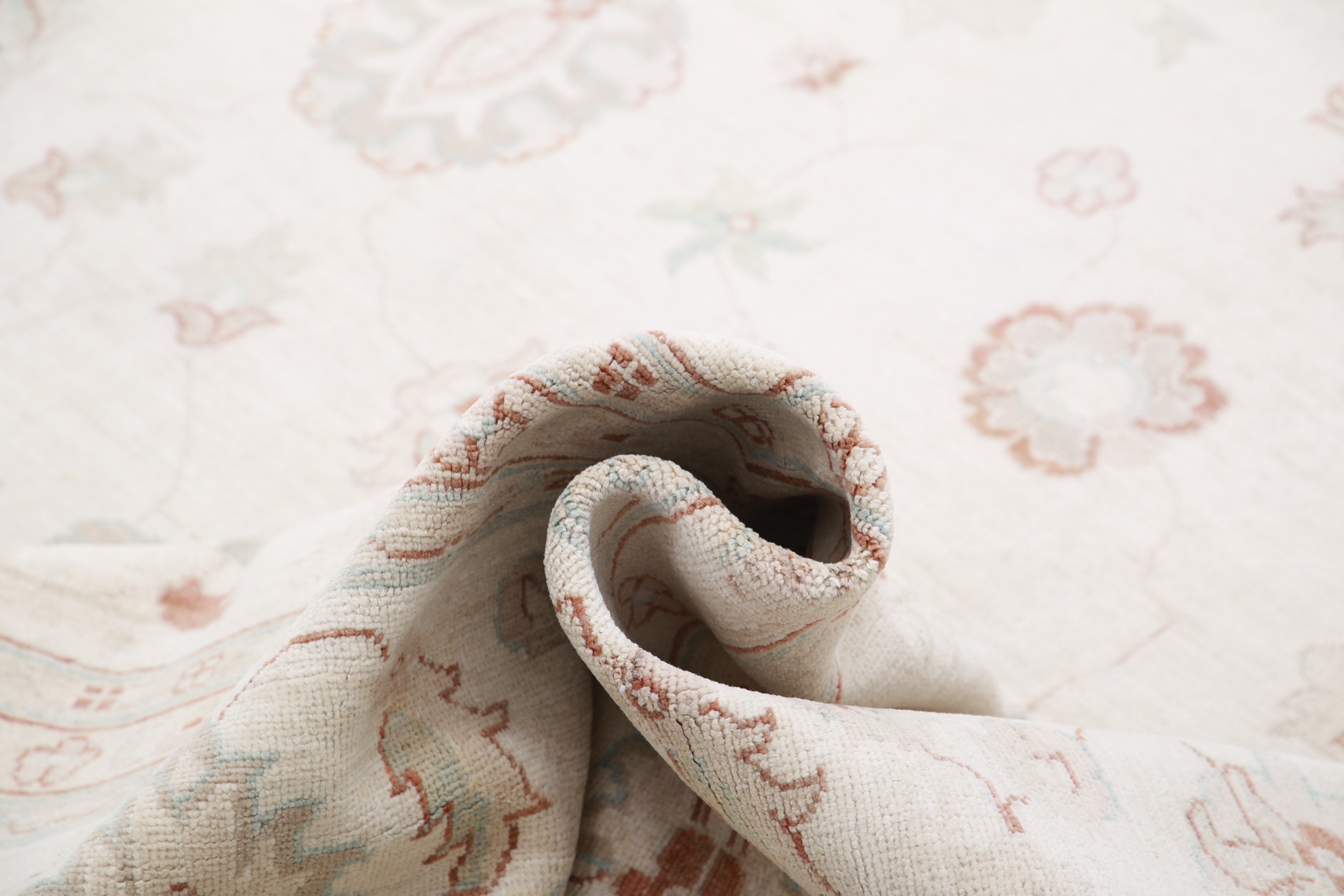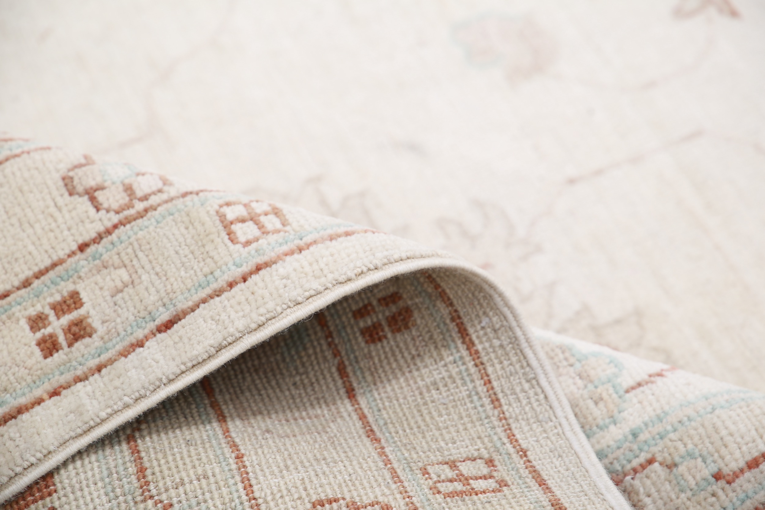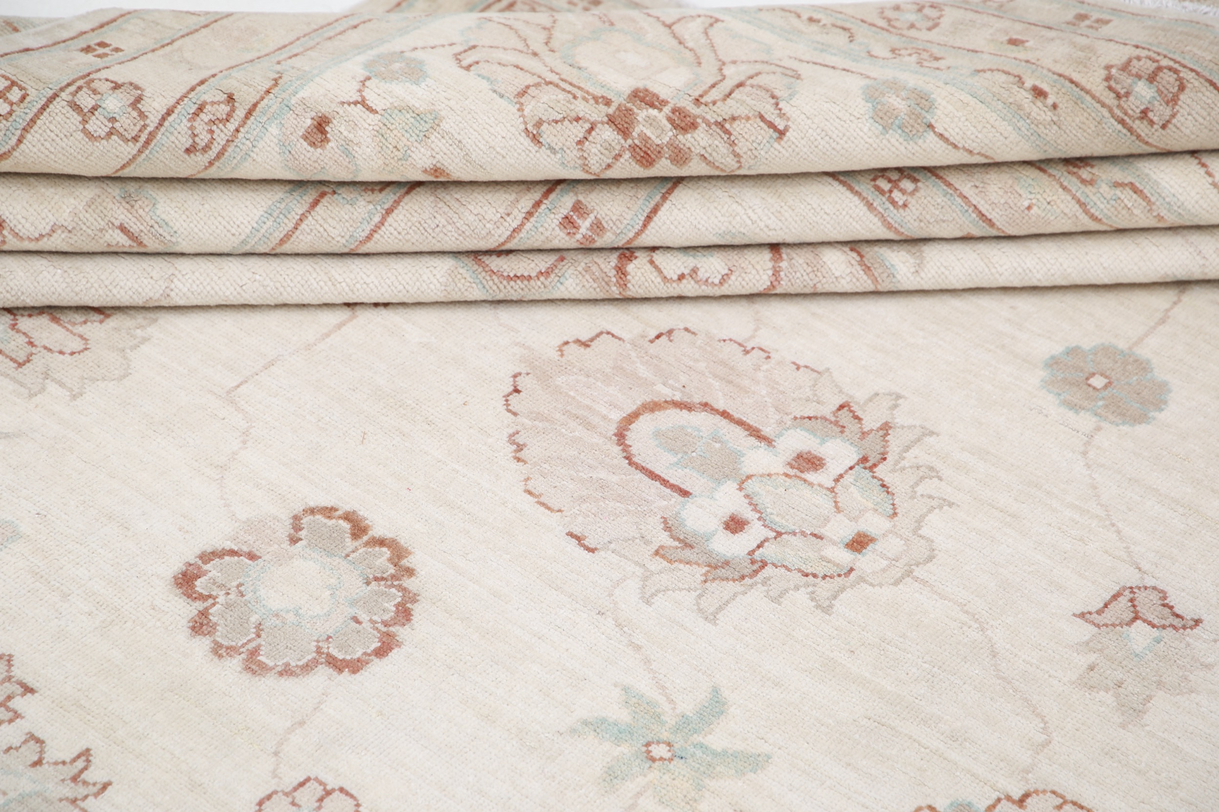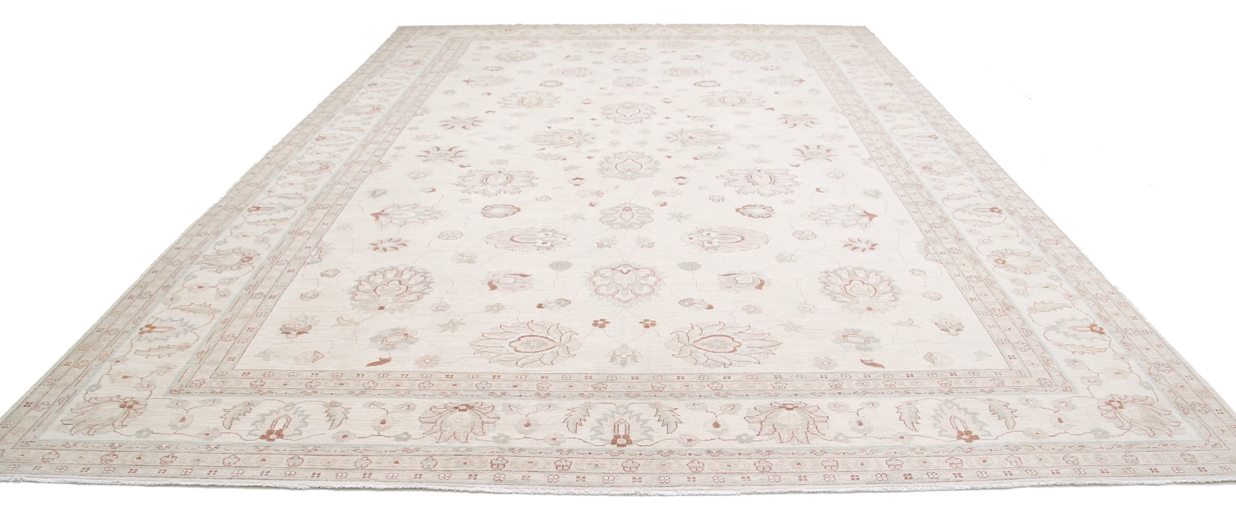This 11’9″ x 16’10” Oushak rug, hand-knotted in Afghan / Pakistan, features a allover design. It is woven with Approx. 156KPSI, showcasing a field in Beige and a Beige border. The rug has a Medium Pile and a 100% Wool pile, and is in excellent condition.