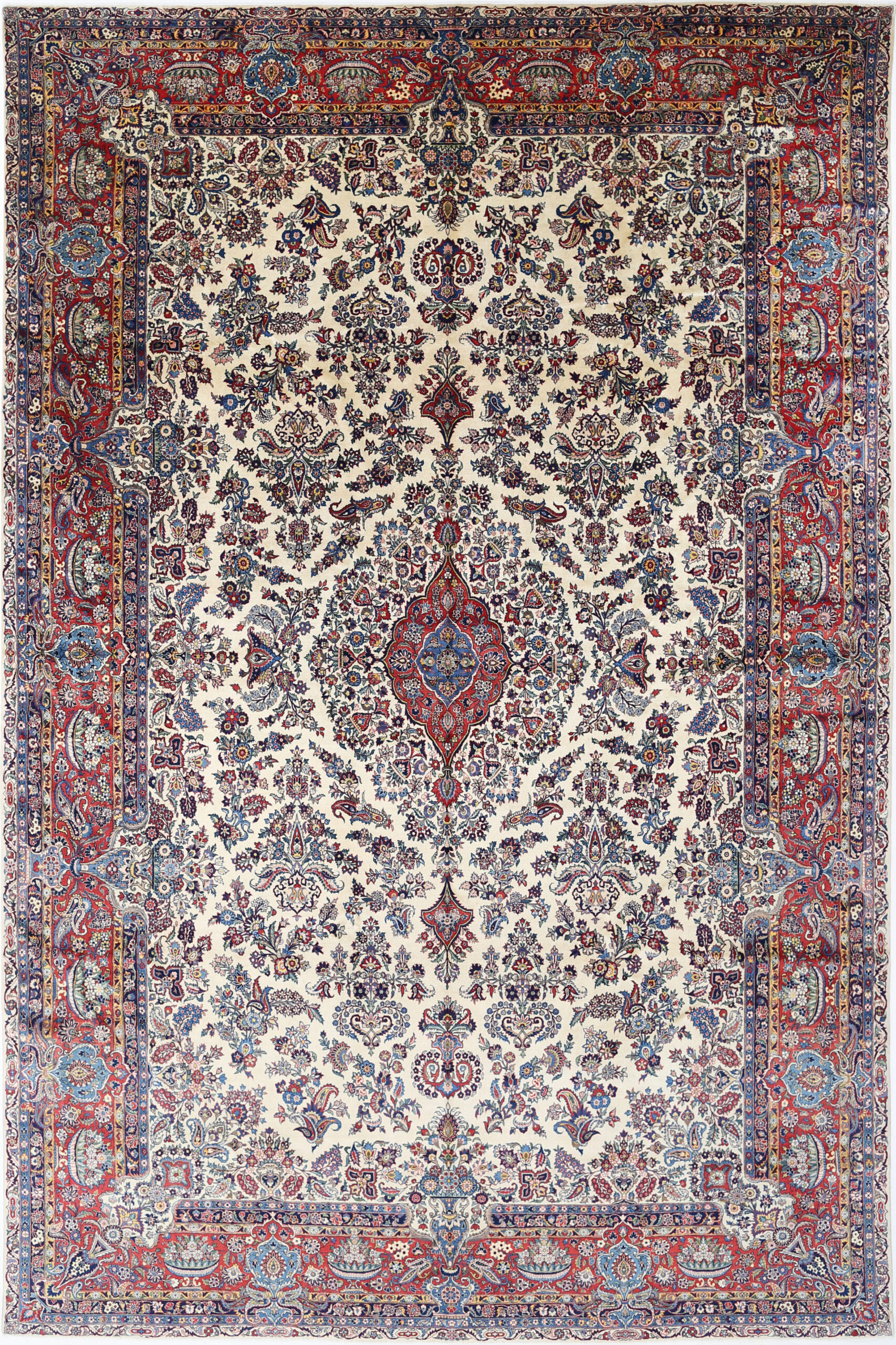 This Persian rug is a stunning piece with a rich history. Aged between 80-100 years, it features a beautiful red color with accents of yellow, green, and blue. The floral design adds a touch of elegance, while the beige cotton material and 100% wool construction ensure durability. With a knot density of approximately 361 KPSI and a medium pile height of 1/3″-3/8″, this rug is both luxurious and comfortable. Measuring 12’4″ x 19’2″, it is perfect for adding warmth and style to any space.