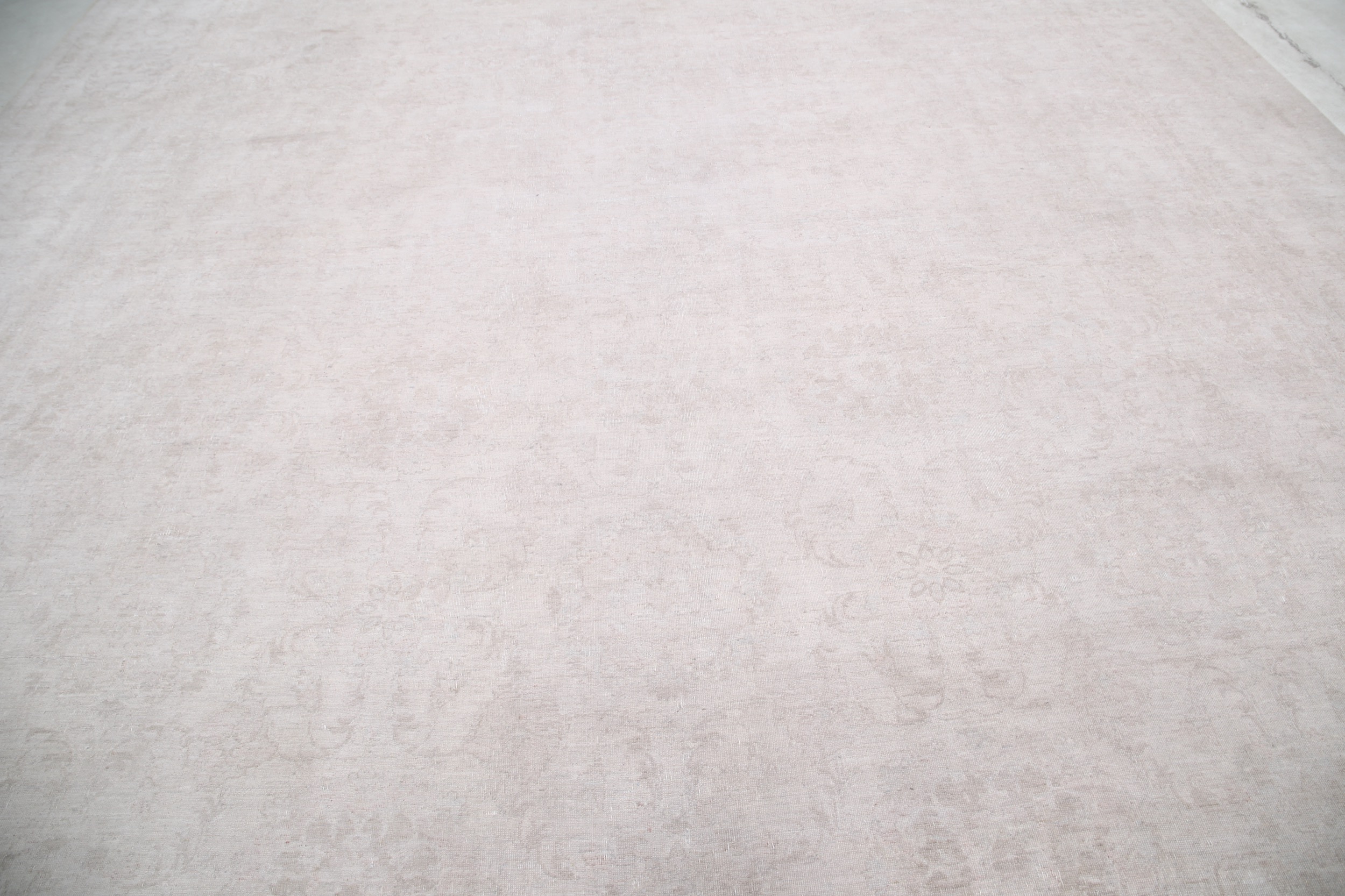 This 13’0″ x 16’10” Oushak rug, hand-knotted in Afghan / Pakistan, features a allover design. It is woven with Approx. 156KPSI, showcasing a field in Beige and a Taupe border. The rug has a Medium Pile and a 100% Wool pile, and is in excellent condition.