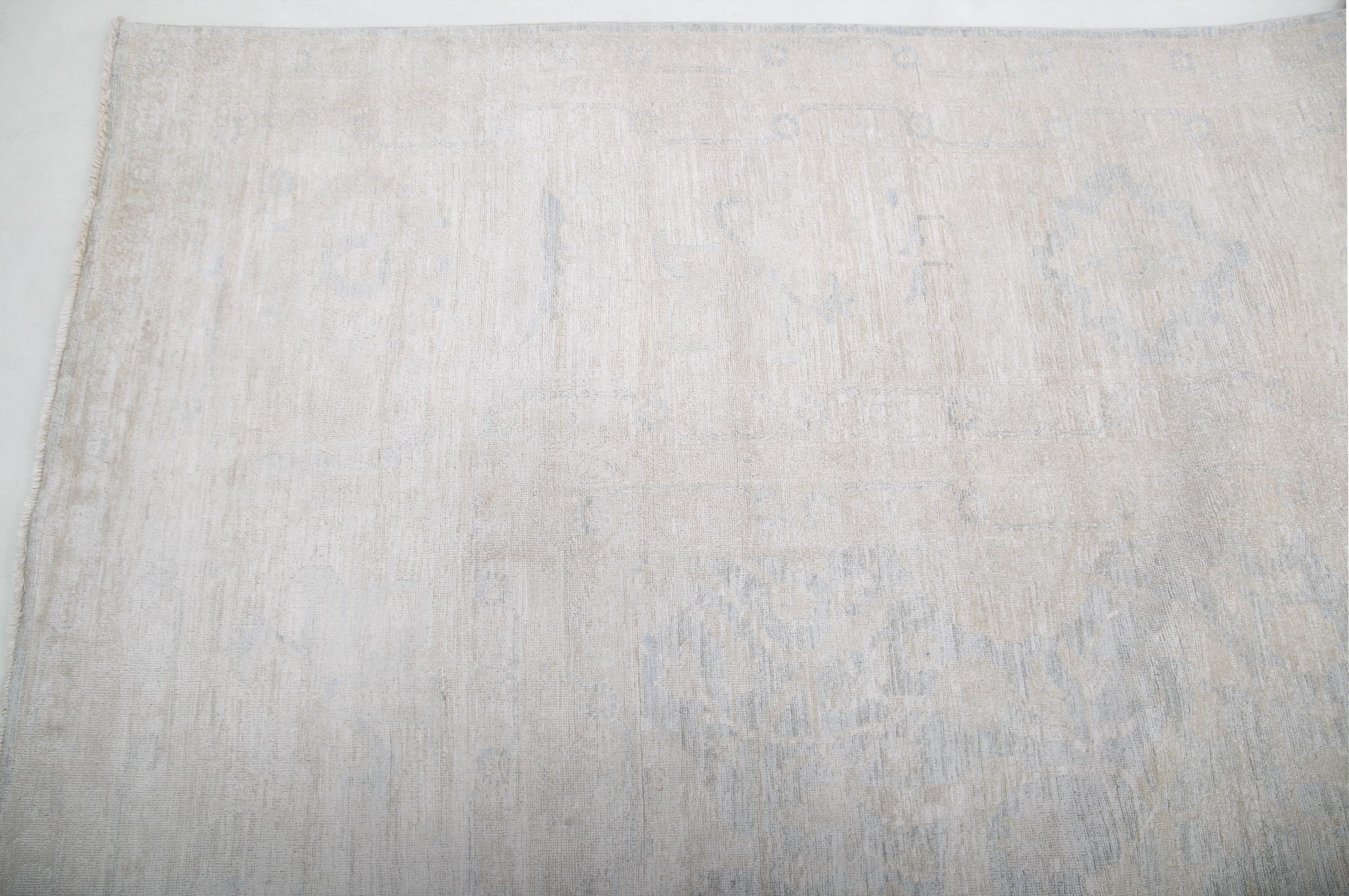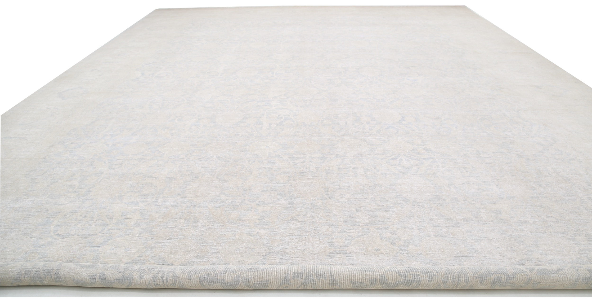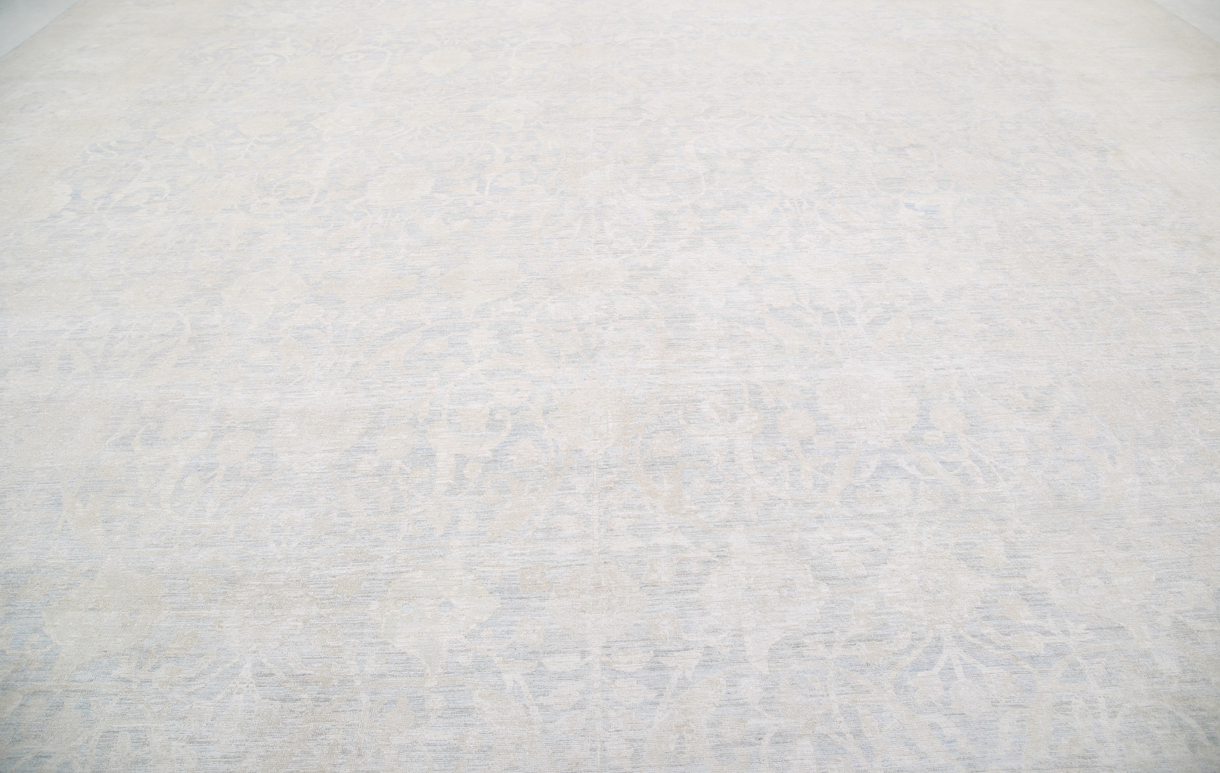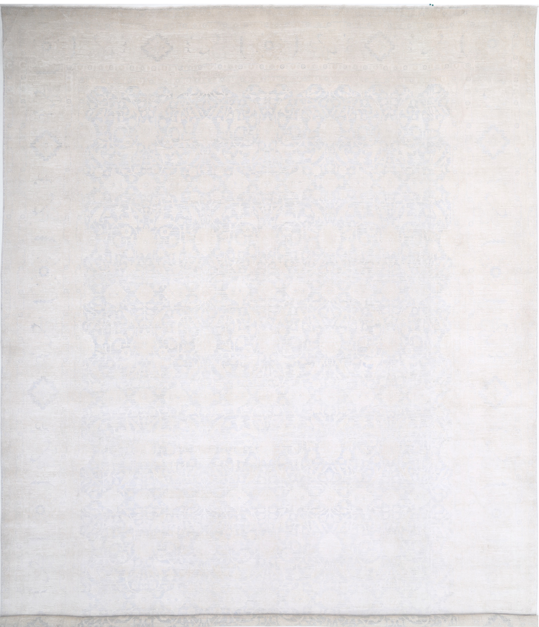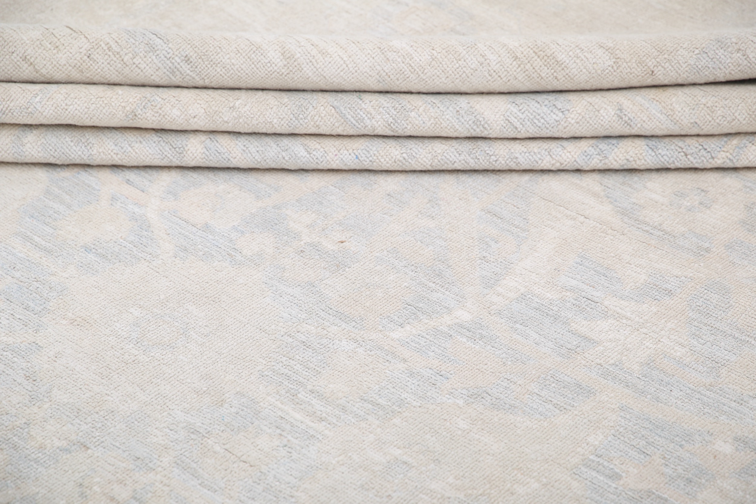This 17’10” x 25’1″ Oushak rug, hand-knotted in Afghan / Pakistan, features a allover design. It is woven with Approx. 169KPSI, showcasing a field in Blue and a Beige border. The rug has a Medium Pile and a 100% Wool pile, and is in excellent condition.