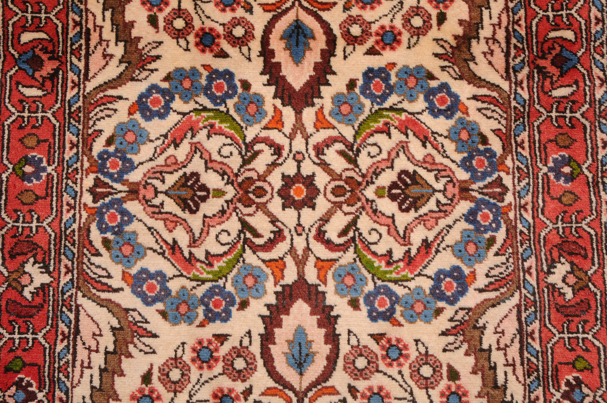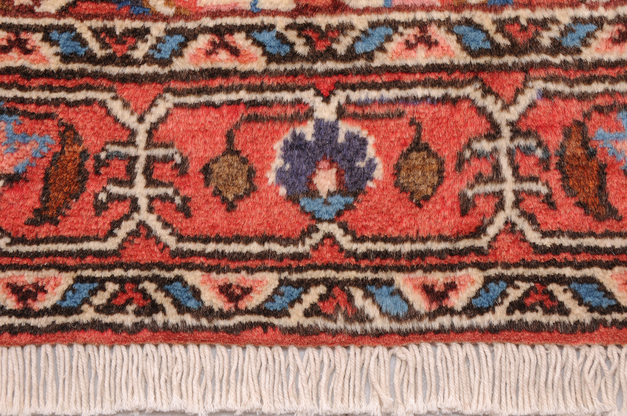 This Mehraban Persian rug, measuring 2’7″ x 13’9″, features a beautiful floral design in red, blue, brown, and green. Made from 100% wool with a medium pile height of 1/3″-3/8″, it has an approximate knot density of 196 KPSI. Perfect for adding a touch of elegance to any space.