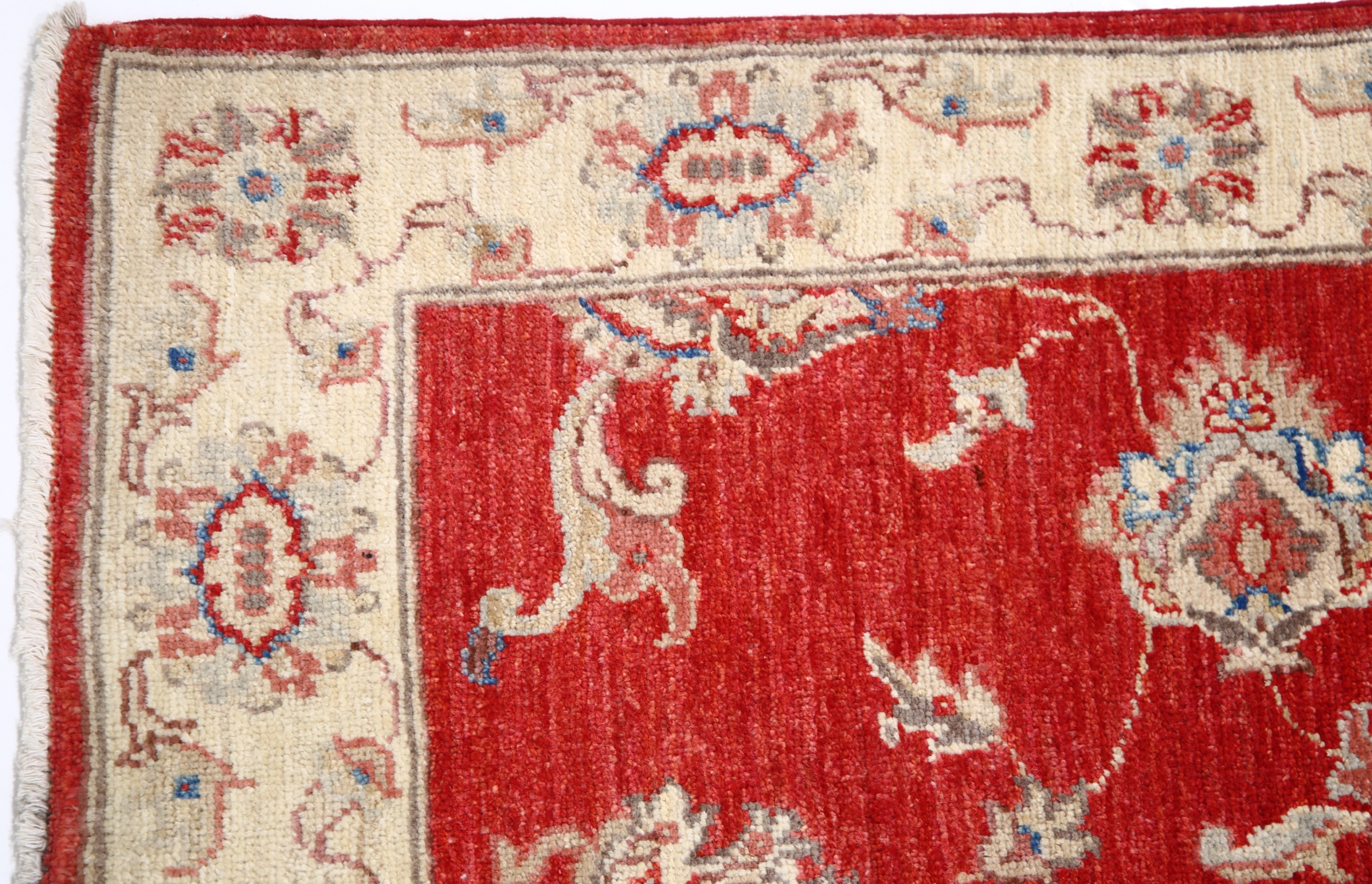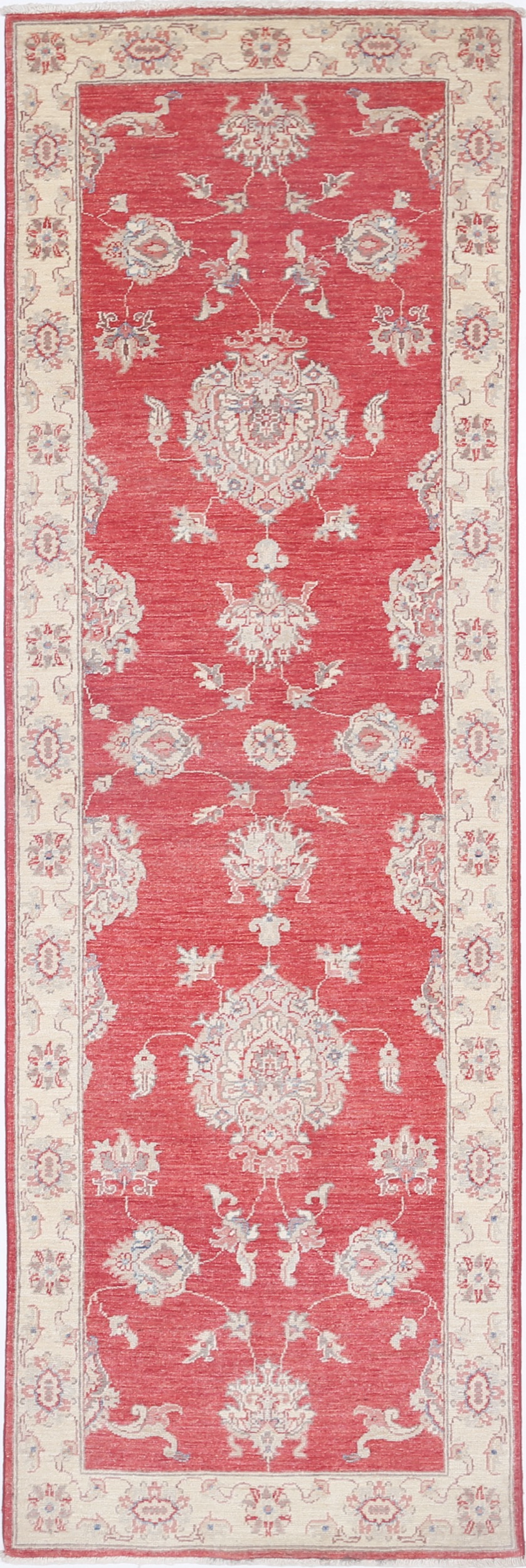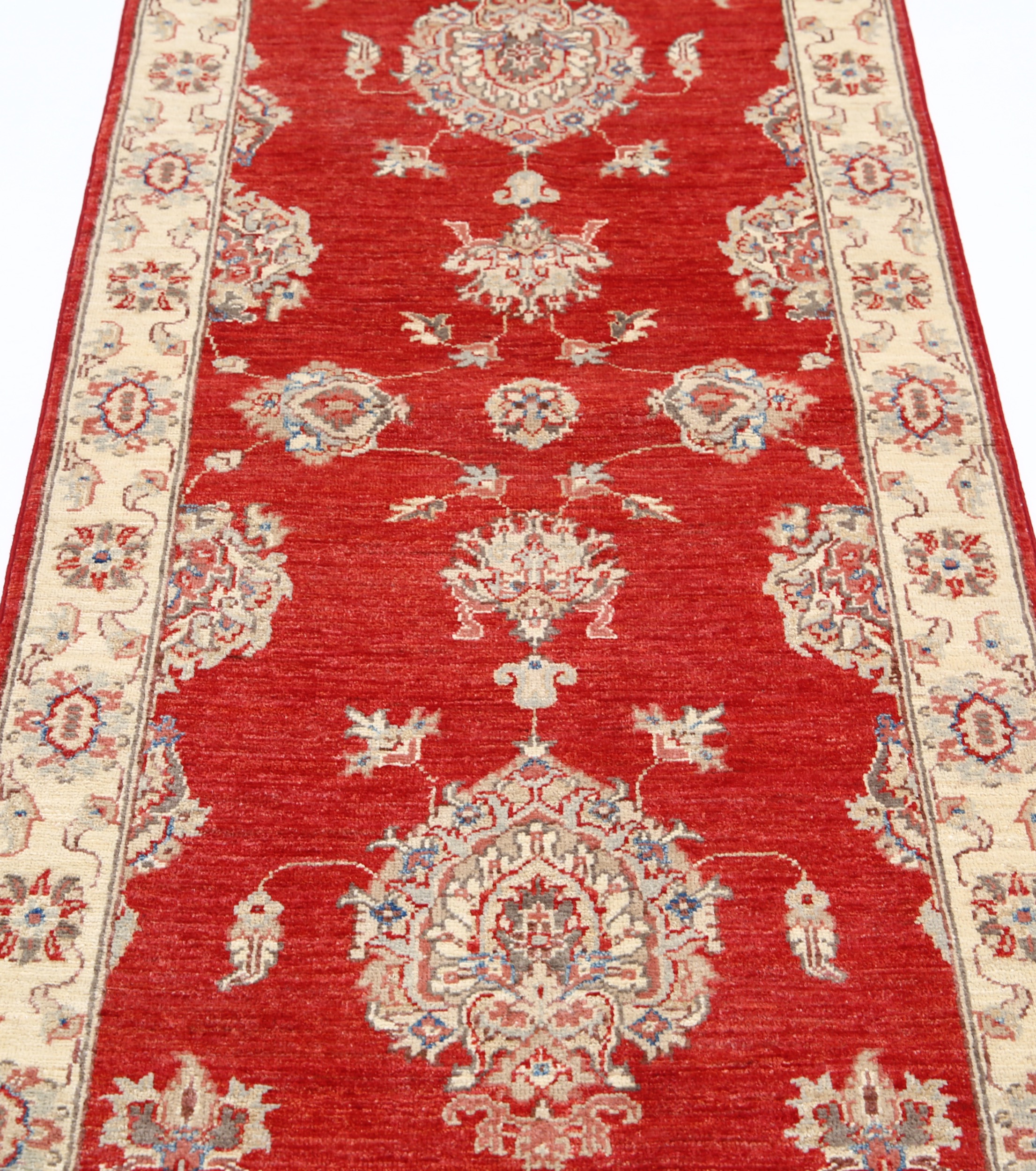 Authentic Oushak hand-knotted rug (2’8″ x 8’7″), crafted in Afghanistan/Pakistan. This 3×9 rug features a stunning floral design in red, beige, peach, blue, and brown, with a low-medium pile (1/4″-1/3″). Approx. 156 KPSI. 100% wool. New condition.