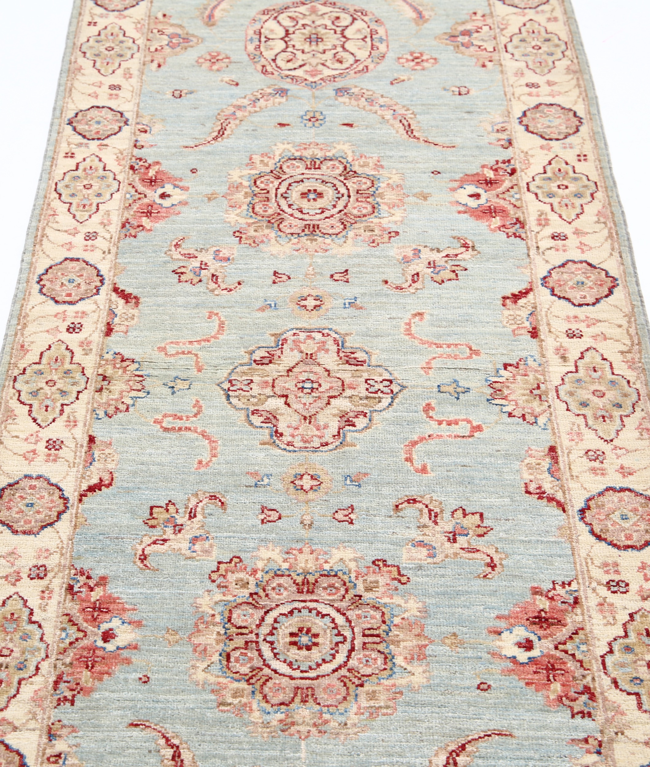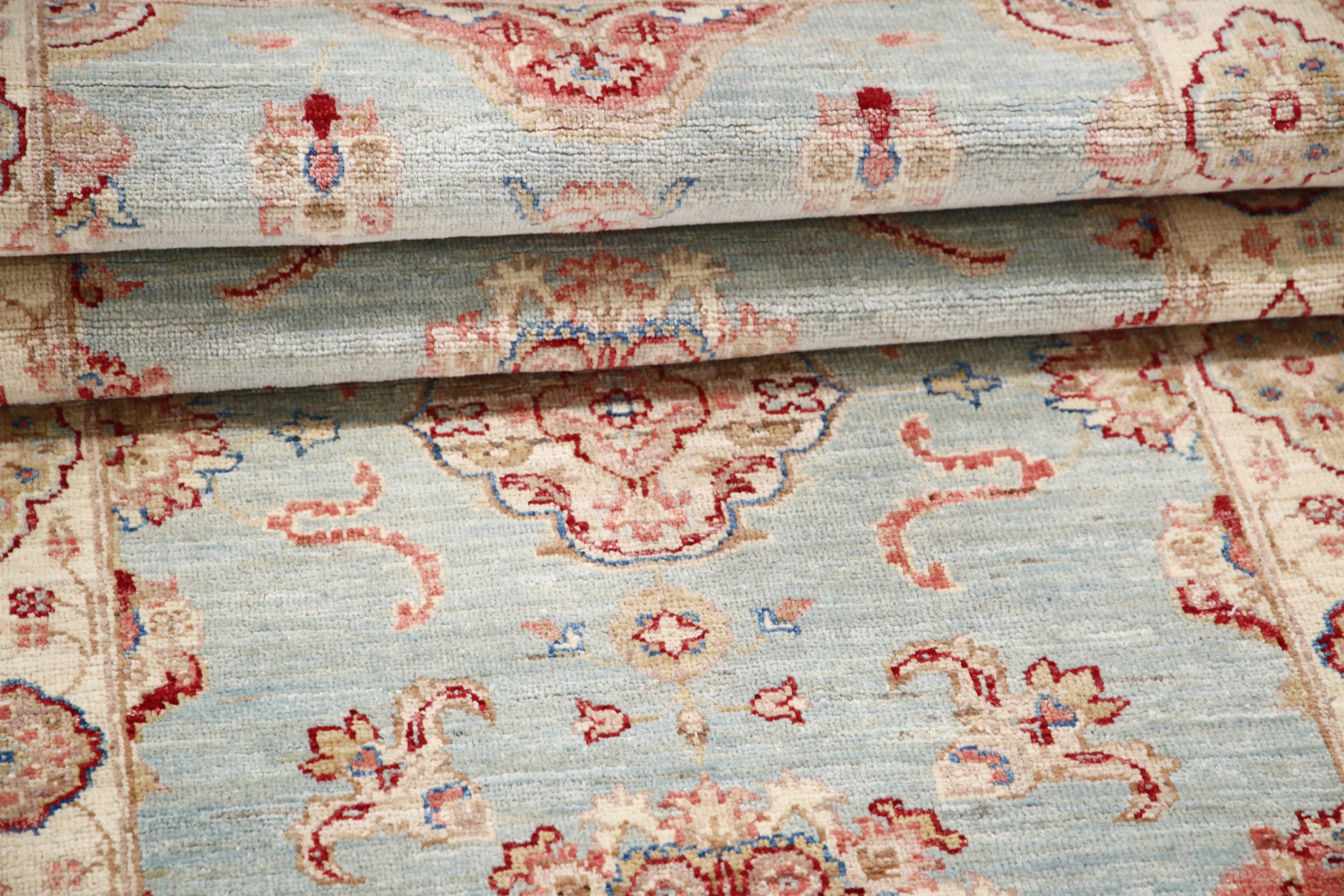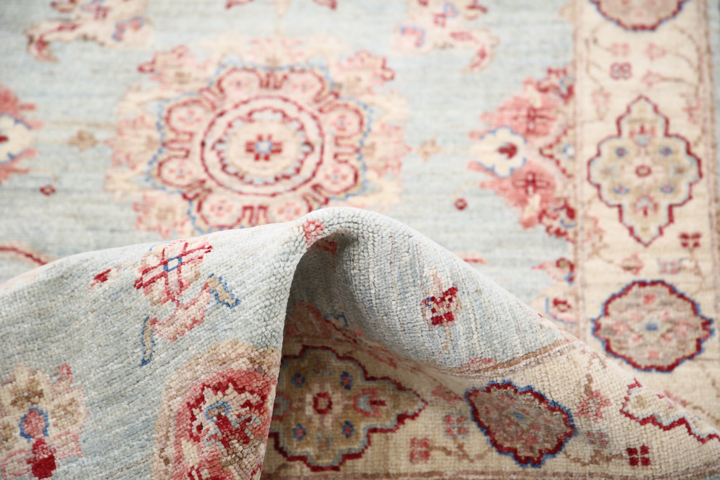 This authentic Oushak rug (2’9″ x 8’5″, approximately 3′ x 9′) is hand-knotted in Afghanistan/Pakistan. Featuring a stunning floral design in shades of blue, beige, peach, and rust, this low-medium pile (1/4″-1/3″) rug boasts approximately 156 KPSI and is crafted from 100% wool with a cotton foundation. A beautiful addition to any room!