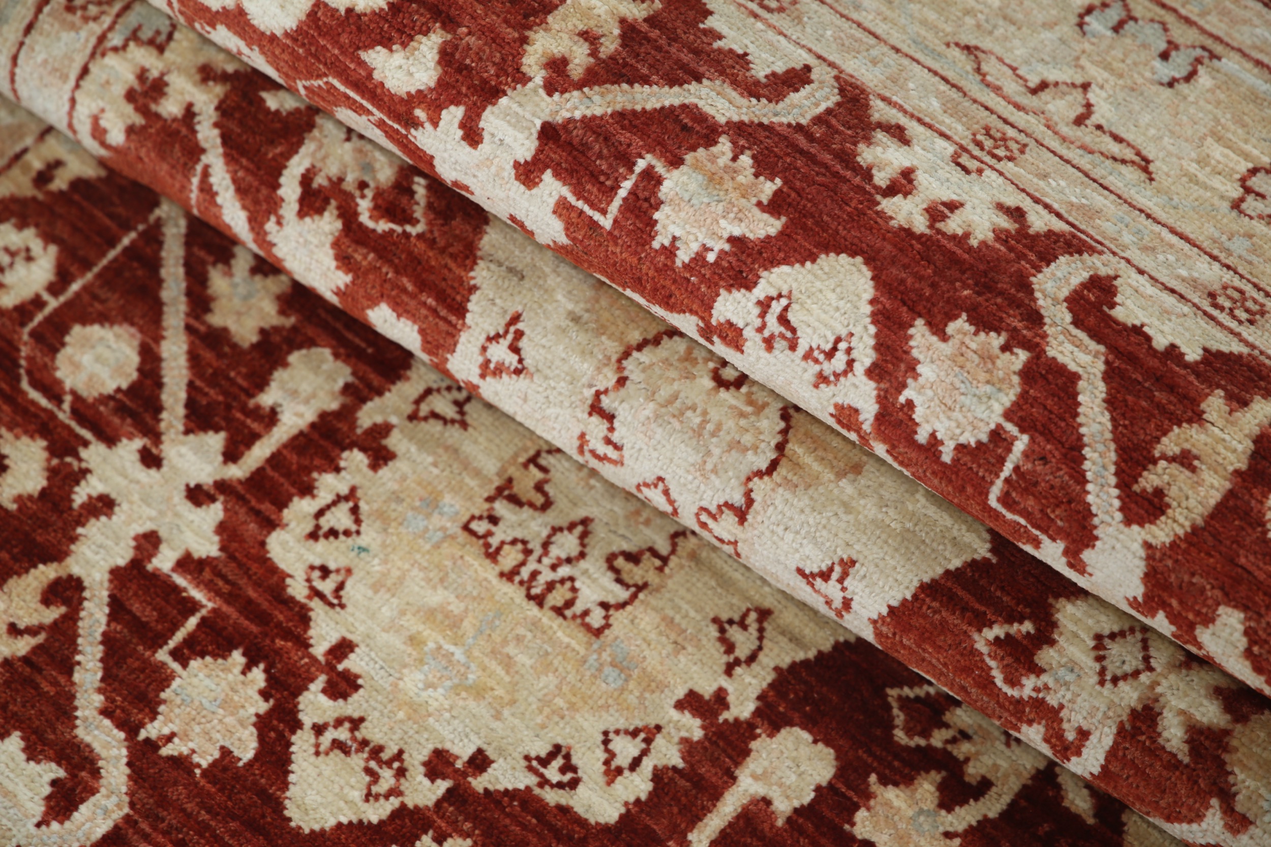 Introducing the exquisite Oushak Oriental rug, a hand-knotted masterpiece. Measuring 3’1” x 9’9”, this rug features a captivating red and beige floral design. With an impressive 225 KPSI (knots per square inch), it showcases superior craftsmanship. Made from 100% wool and cotton, this rug boasts a low to medium pile height of 1/4″-1/3″. Its excellent condition is enhanced by a thorough washing, ensuring utmost cleanliness. Elevate your space with this stunning Oushak rug, a timeless addition to any home decor.