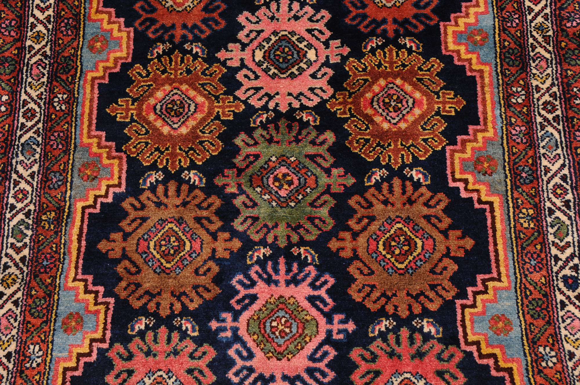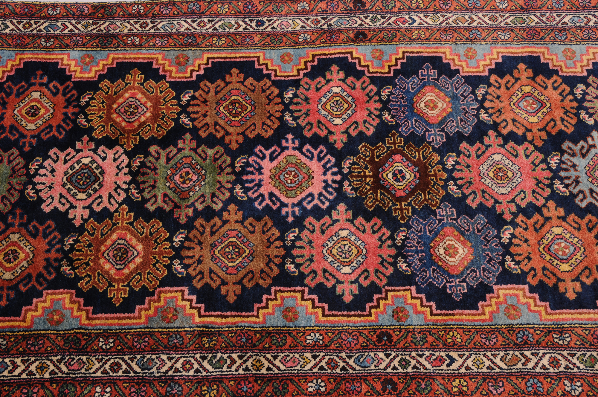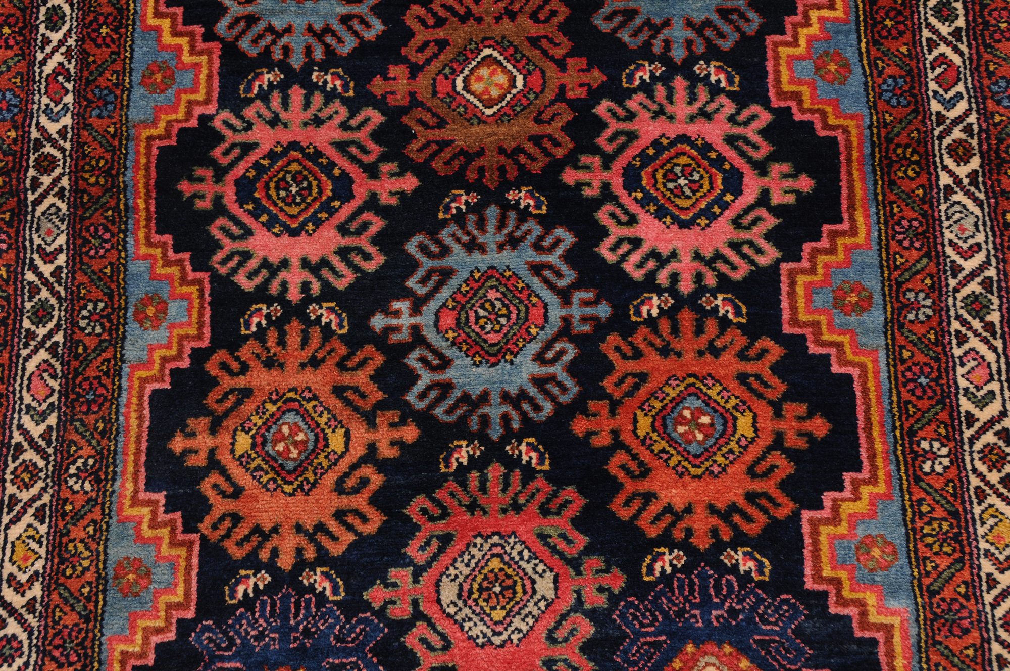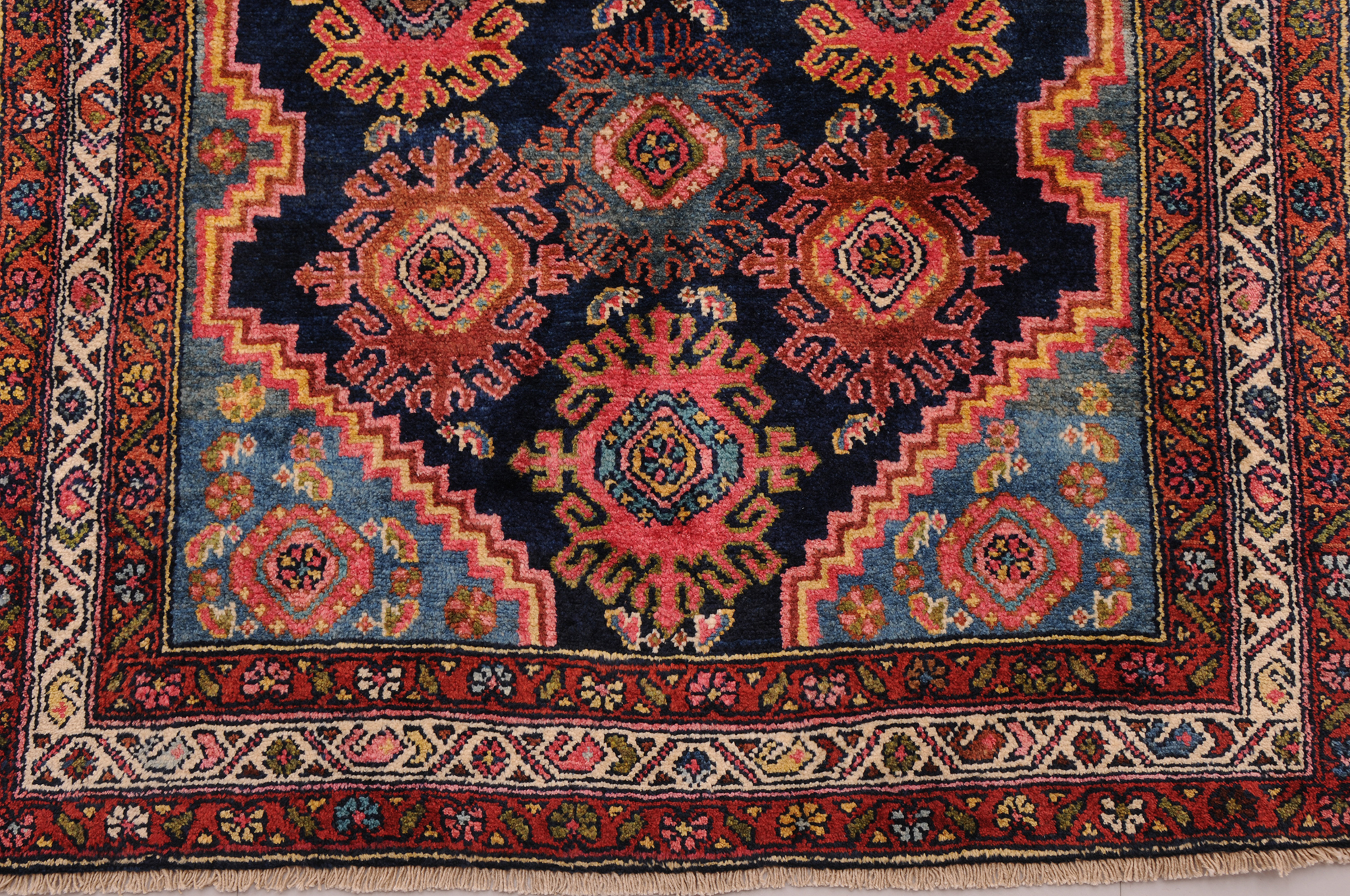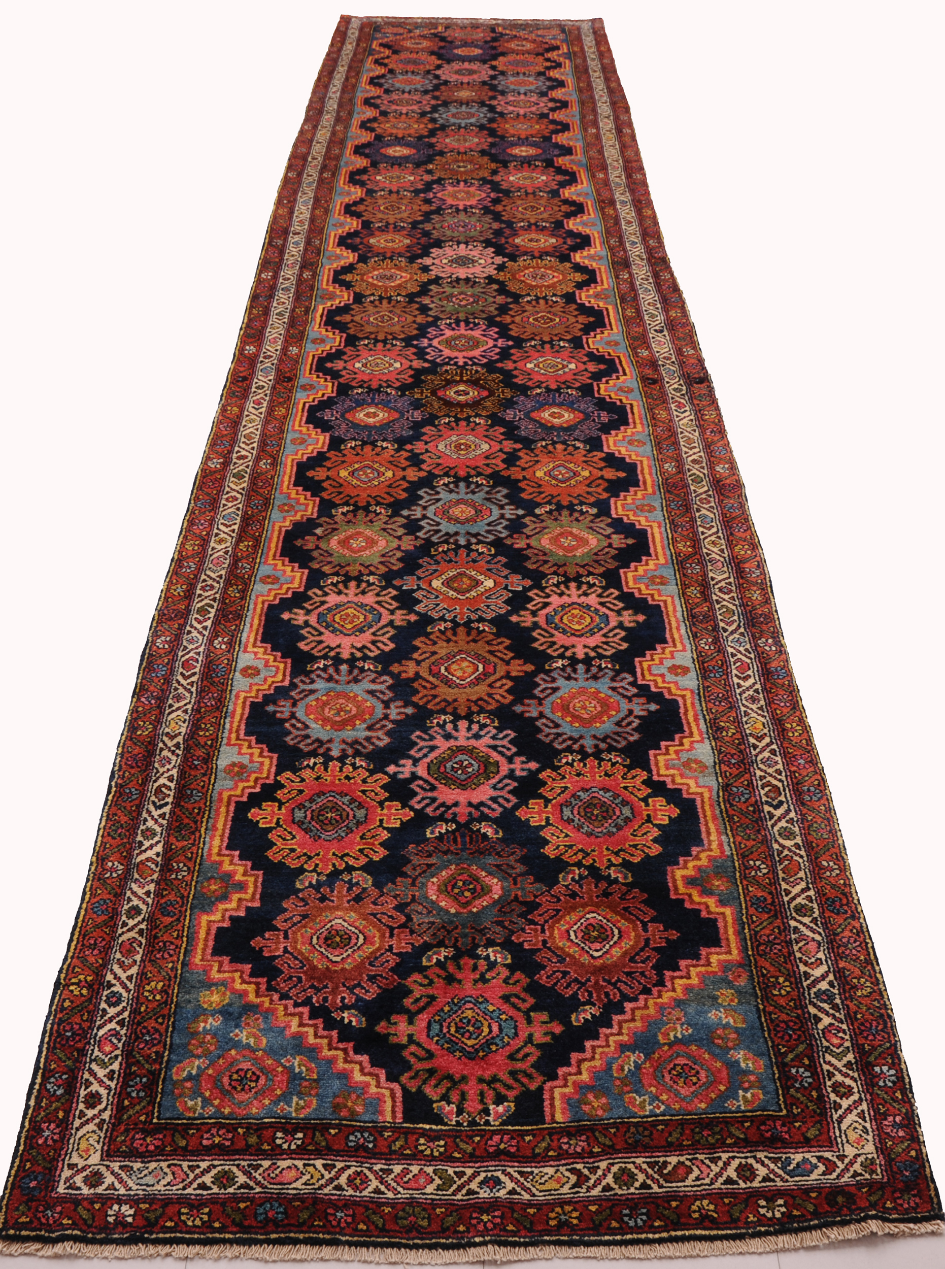 Hand Knotted Mehraban Persian Rug: This exquisite piece measures 3’3″ x 16’7″ and boasts an impressive age of 100-120 years. The captivating blue and beige allover design showcases the remarkable craftsmanship. With approximately 225 knots per square inch, this rug is a testament to the artisan’s meticulous work. Made from 100% wool and cotton, it features a medium pile height of 1/3″-3/8″, adding to its luxurious feel and durability. A true masterpiece that will add elegance and charm to any space.