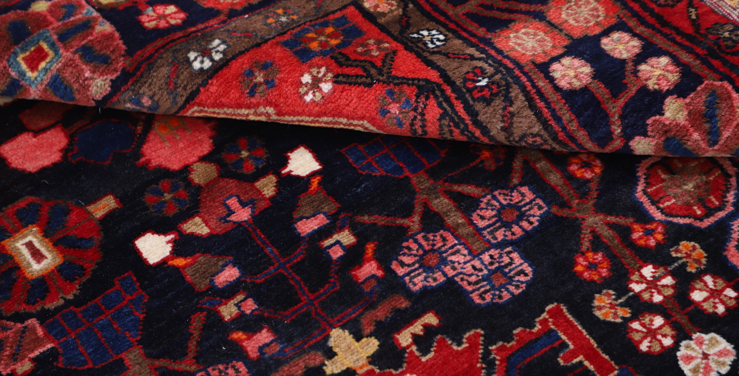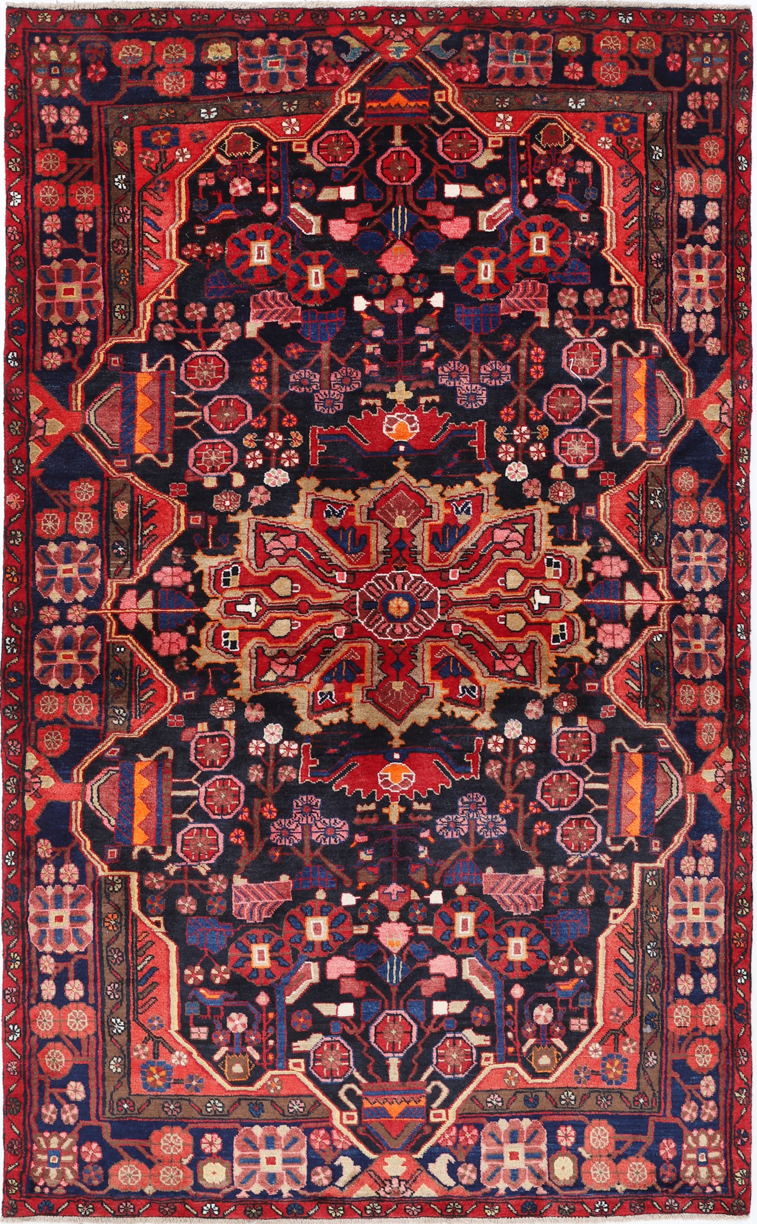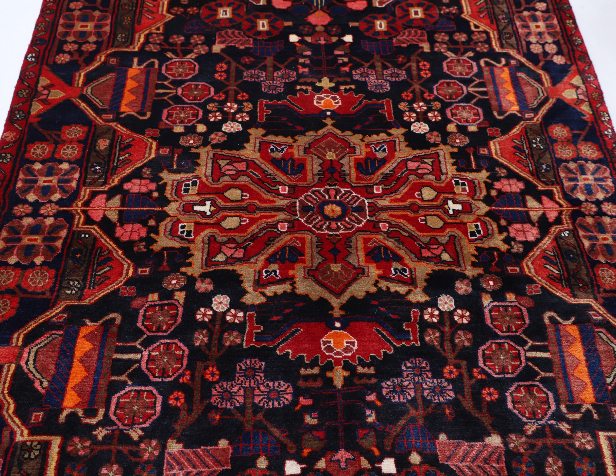 This Hand Knotted Malayer Persian rug measures 4’11” x 8’2″ and has an aged appearance, ranging from 0-20 years. The rug features a striking combination of black and blue colors in a geometrical pattern. With an approximate knot count of 169 KPSI, this rug is meticulously crafted using 100% wool and cotton materials. It has a medium pile height, measuring between 1/3″-3/8″.