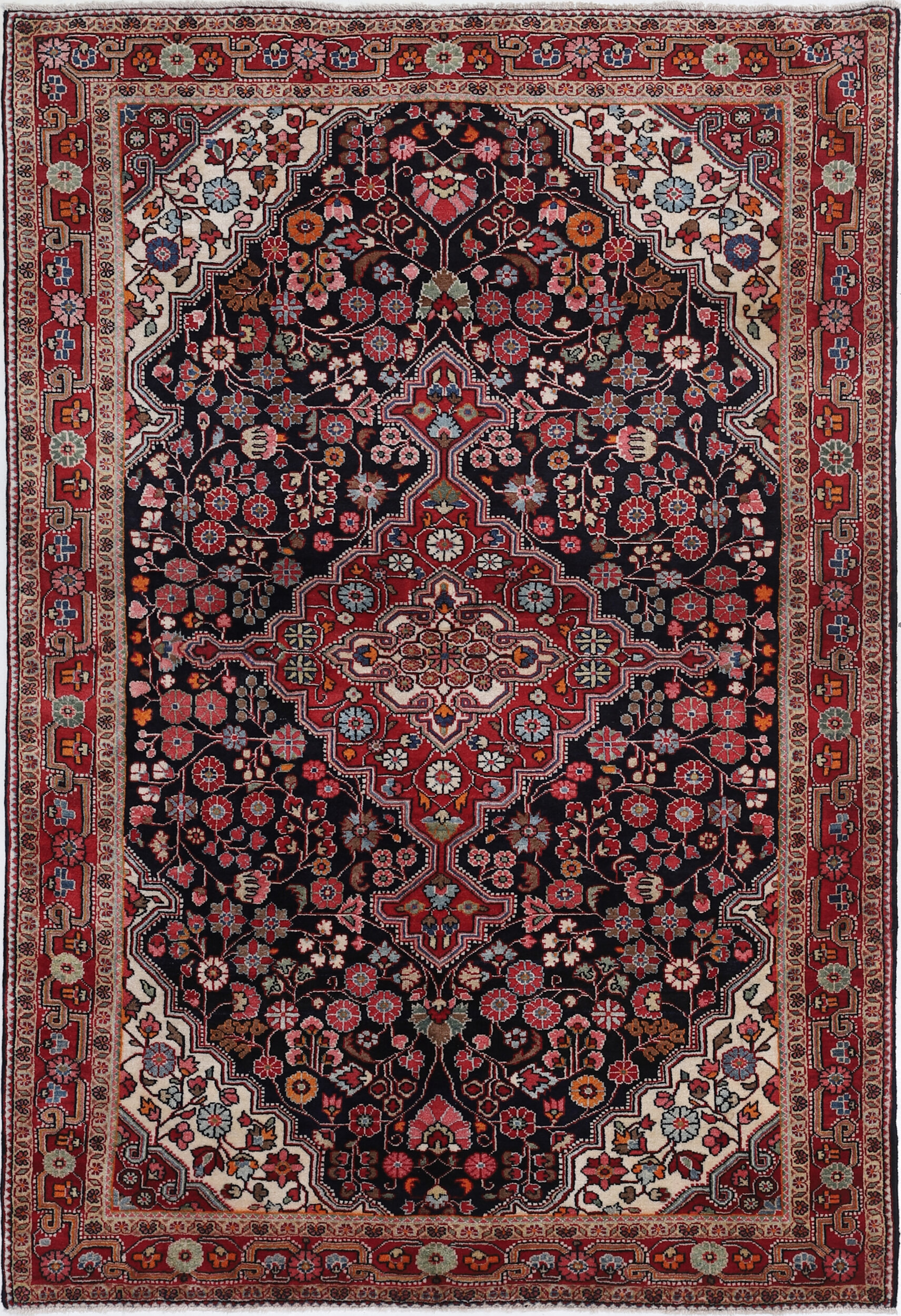 This Hand Knotted Malayer rug measures 4’6″ x 6’11″and features an aged blue green Floral design. With approximately 225 knots per square inch, this rug is made from 100% wool and cotton and has a medium pile height of 1/3″-3/8″. Perfect for adding texture and warmth to any space, this rug is a beautiful and durable choice for any home.