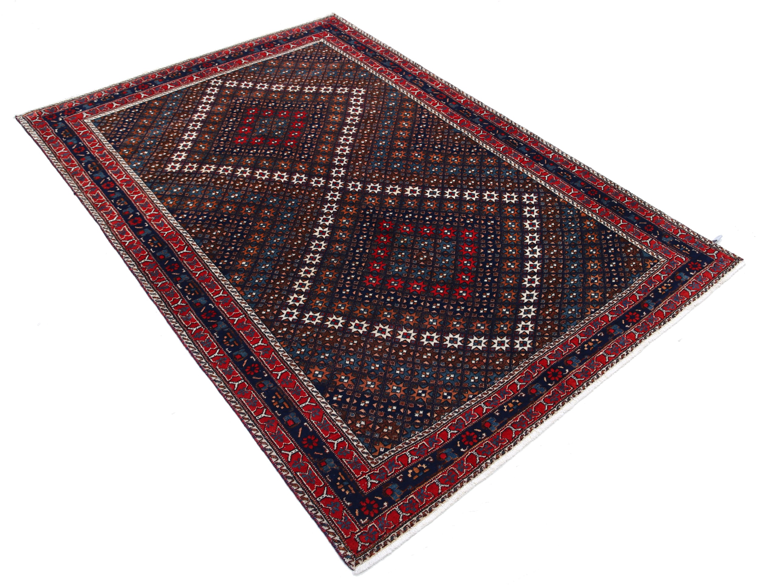 This Persian Rug is hand-knotted with wool Pile and cotton Foundation. This Rug has a Geometrical rug