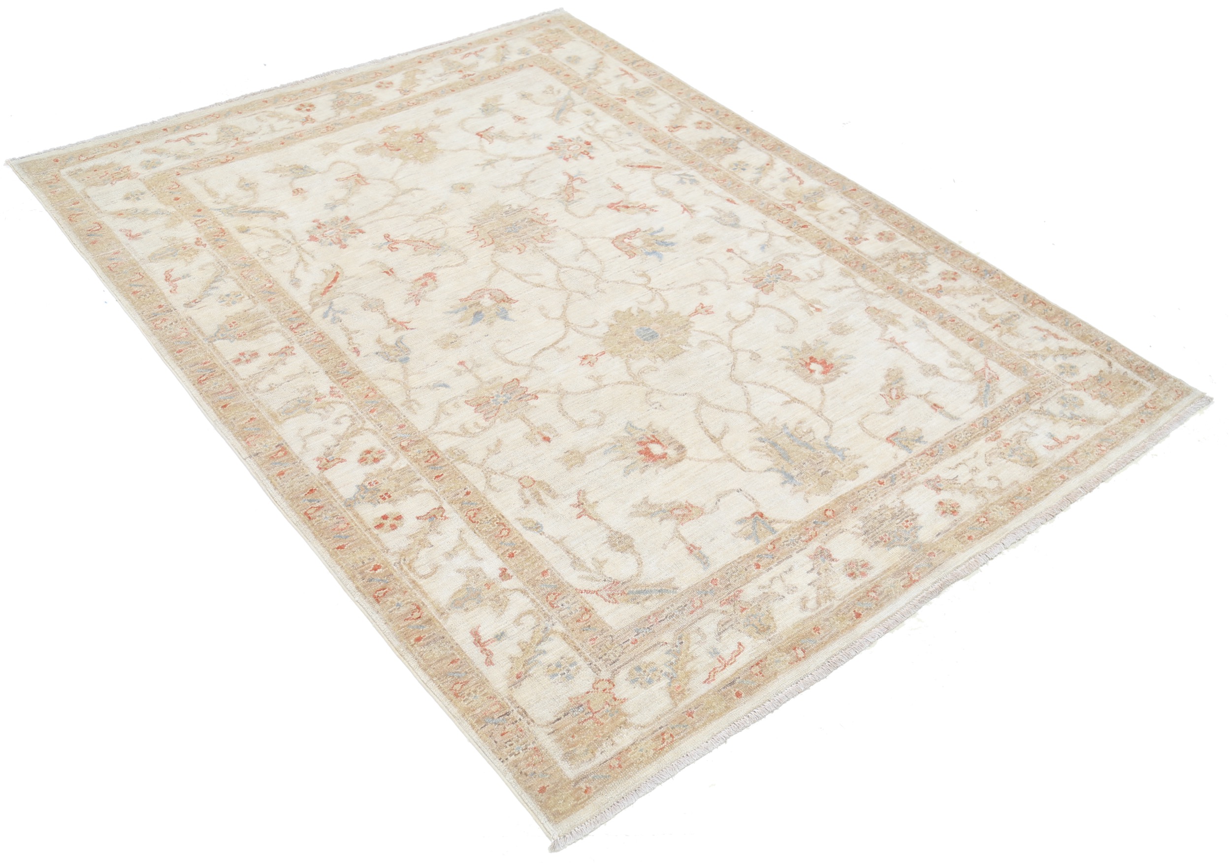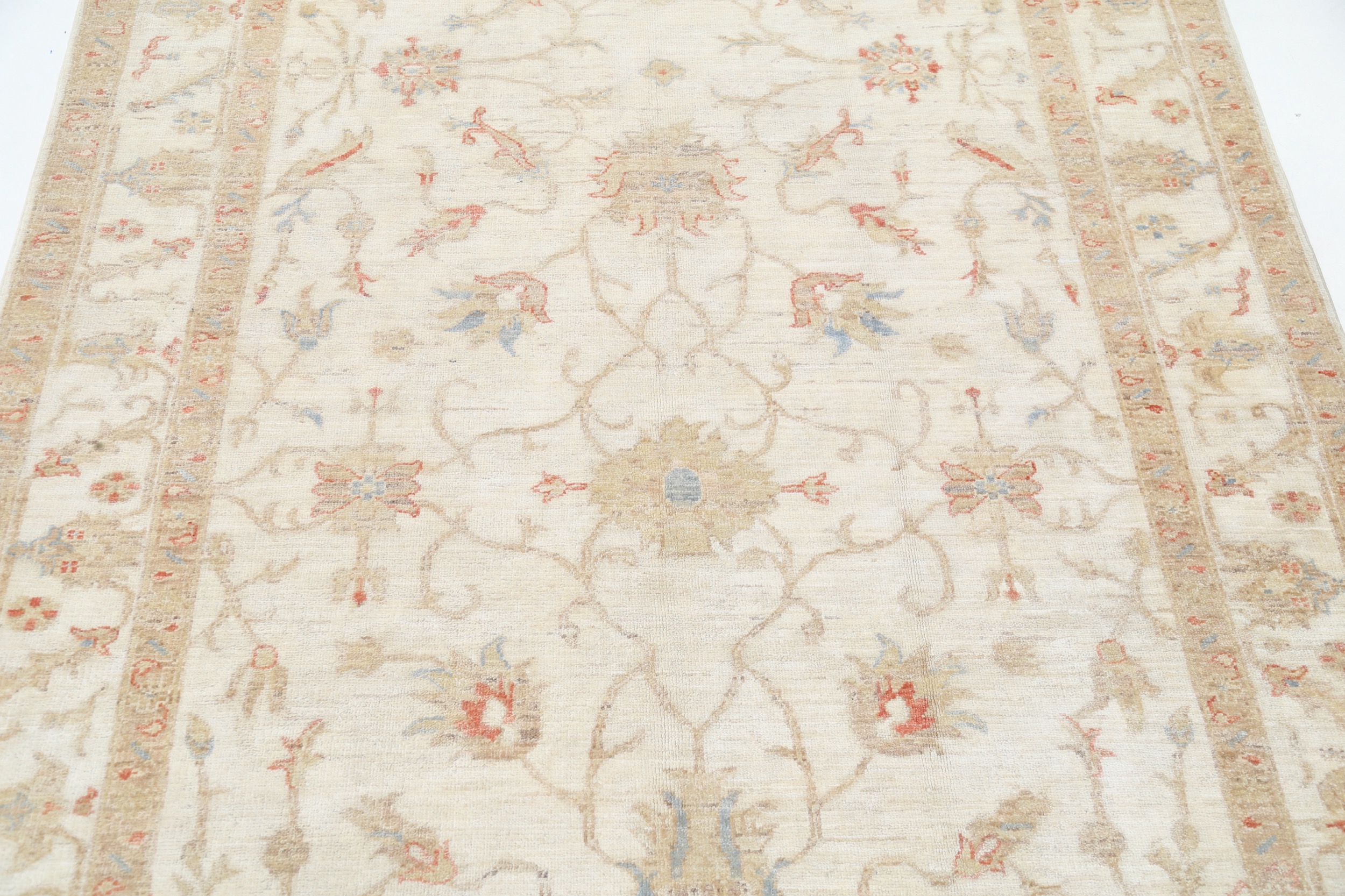 This exquisite 4’9″ x 6’3 Oushak rug from Afghan / Pakistan showcases a timeless floral pattern. Hand-knotted with 100% wool on a cotton foundation, it features a beige field and beige border. The floral design adds an elegant character to any space.