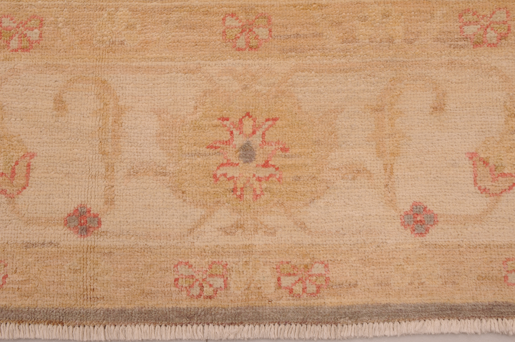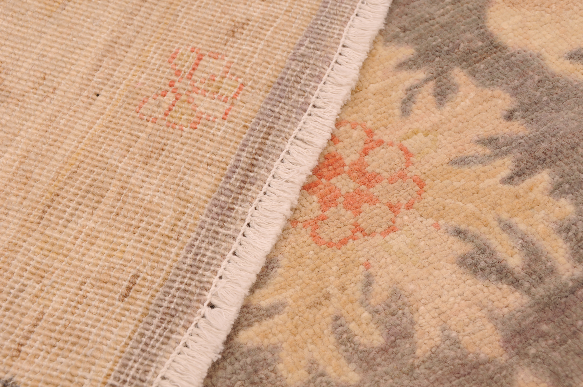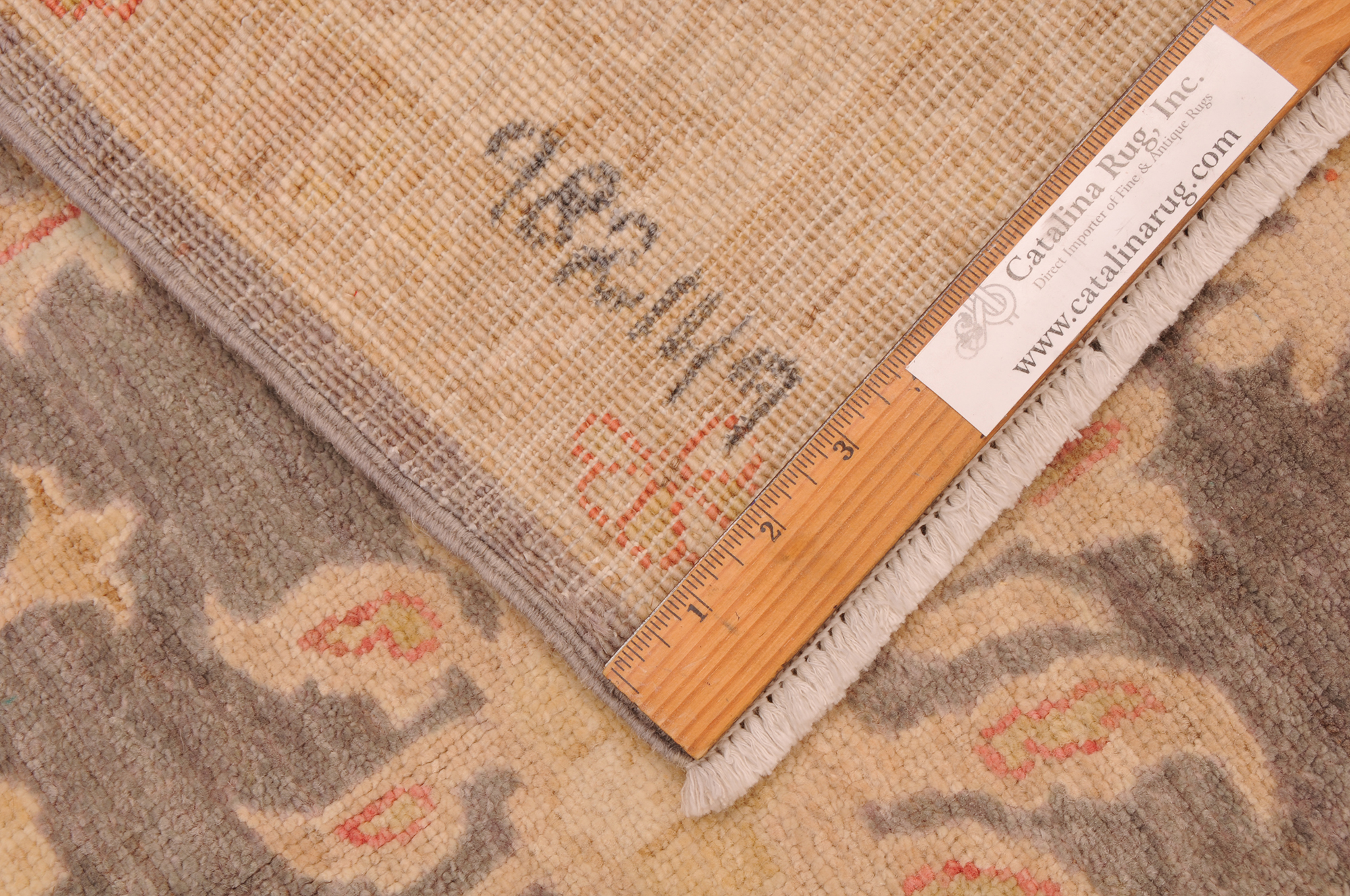 This 5’7″ x 8’8″ Oushak rug, hand-knotted in Afghan / Pakistan, features a floral design. Crafted with approx. 156 kpsi, its field color is Grey with a Beige border. The rug has a low medium pile 1/4″-1/3″ and a 100% wool pile, in excellent & washed condition.