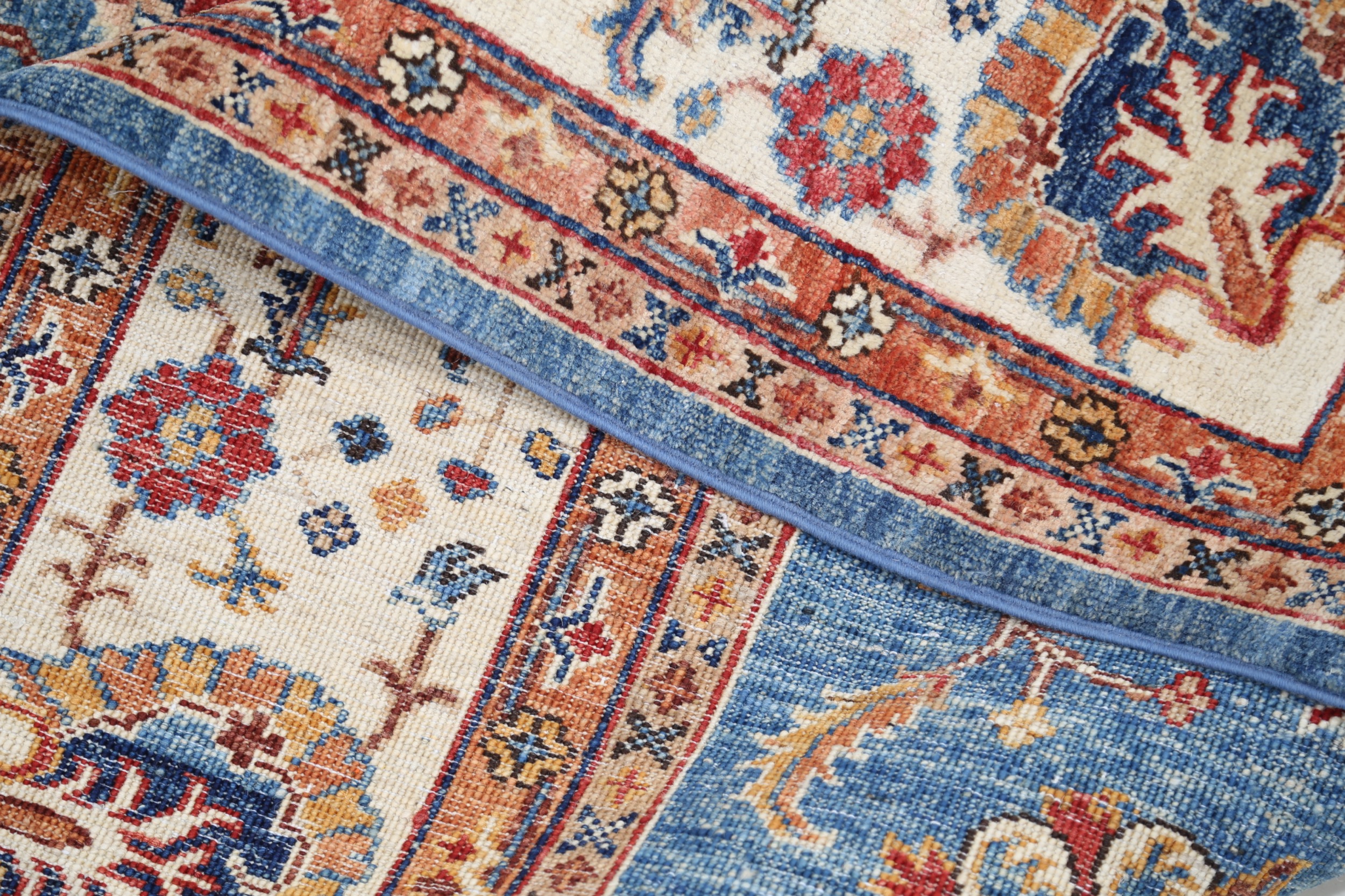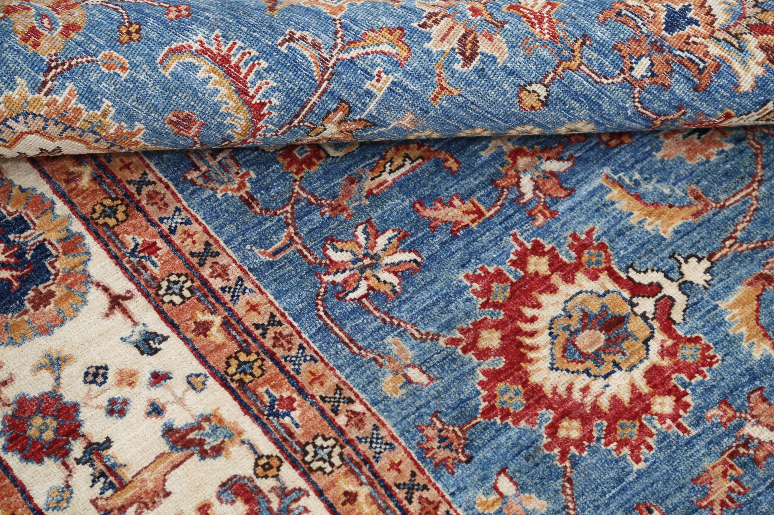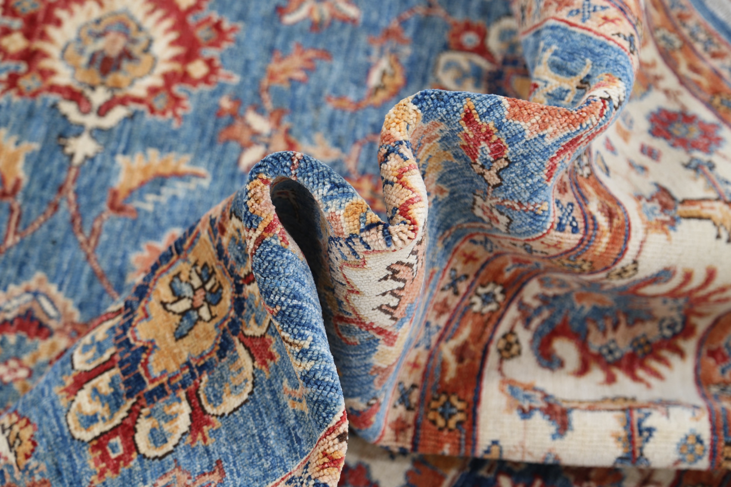Introducing the Oushak Oriental Rug, a stunning addition to any space. Hand-knotted with care, this rug features a beautiful blue and beige floral design. With a size of 5’9” x 8’0” and a low to medium pile height of 1/4”-1/3”, it offers a comfortable feel underfoot. Made from 100% wool cotton, it showcases excellent quality and durability. With approximately 156 knots per square inch (KPSI), this rug is a true masterpiece. It has been meticulously washed, ensuring its pristine condition. Transform your home with this exquisite Oriental rug today.