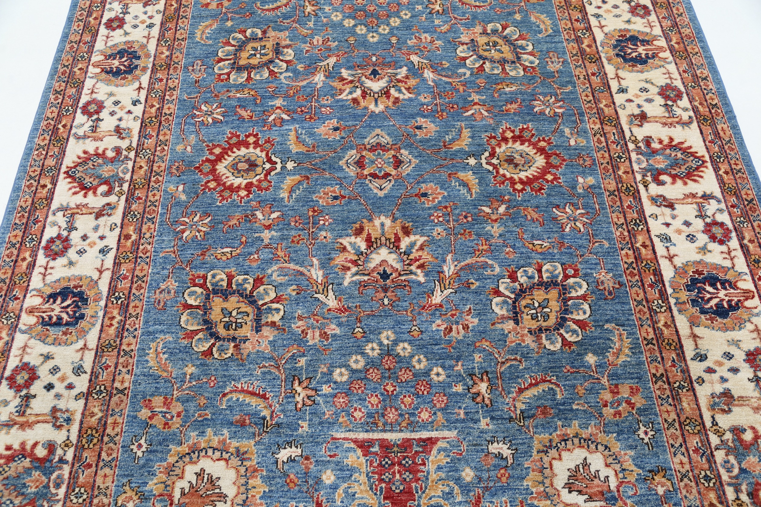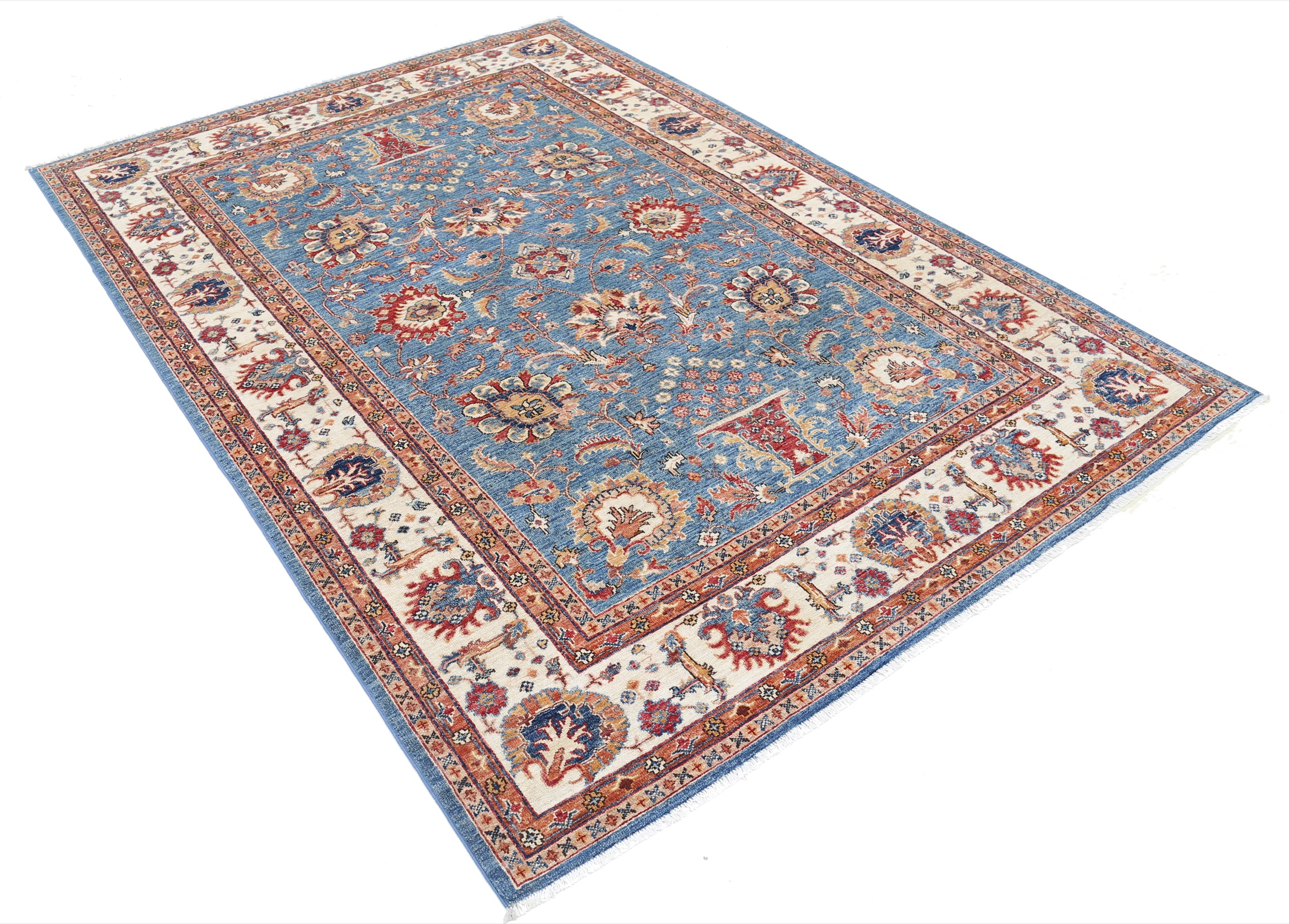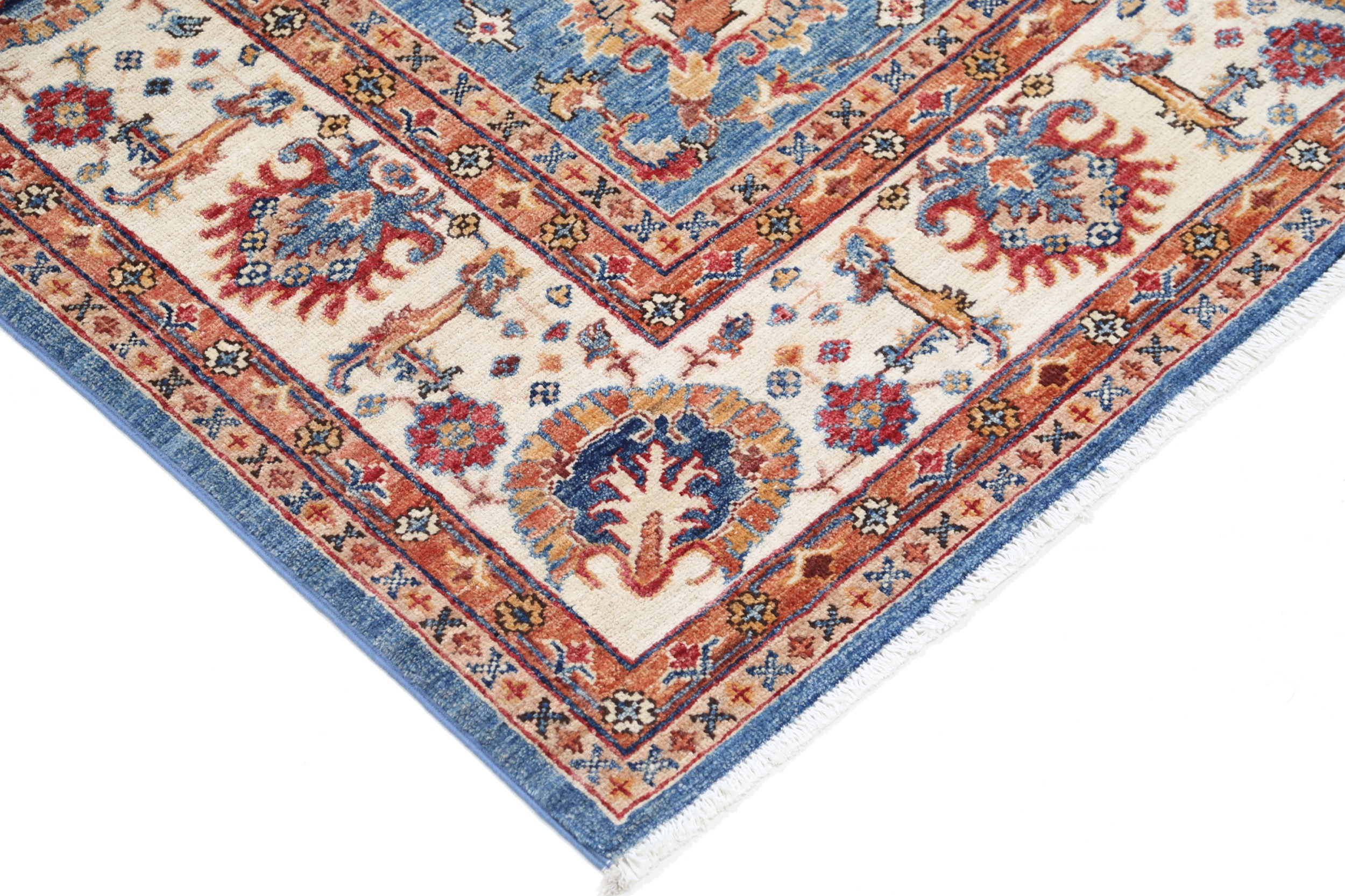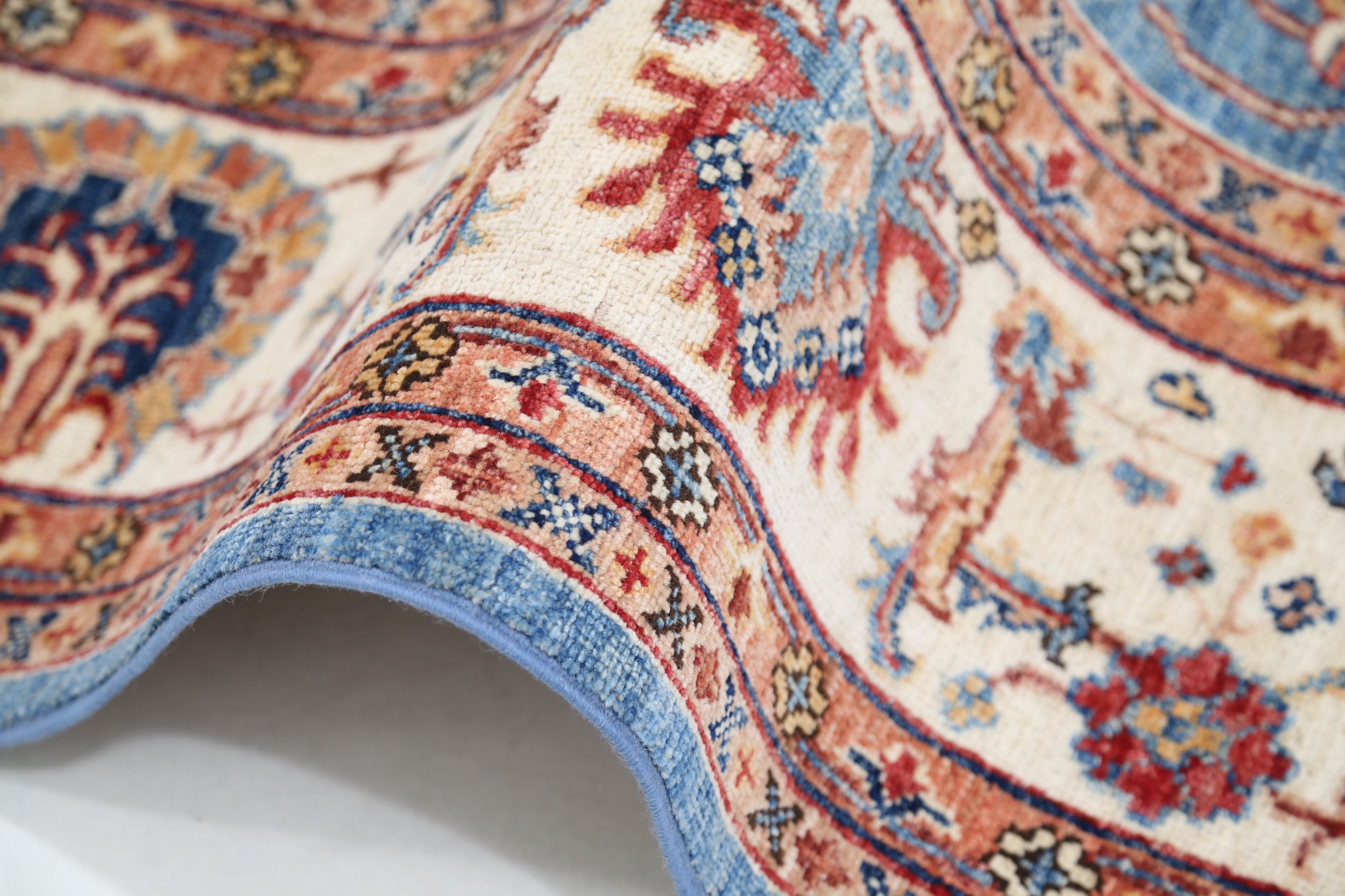 Introducing the Oushak Oriental Rug, a stunning addition to any space. Hand-knotted with care, this rug features a beautiful blue and beige floral design. With a size of 5’9” x 8’0” and a low to medium pile height of 1/4”-1/3”, it offers a comfortable feel underfoot. Made from 100% wool cotton, it showcases excellent quality and durability. With approximately 156 knots per square inch (KPSI), this rug is a true masterpiece. It has been meticulously washed, ensuring its pristine condition. Transform your home with this exquisite Oriental rug today.