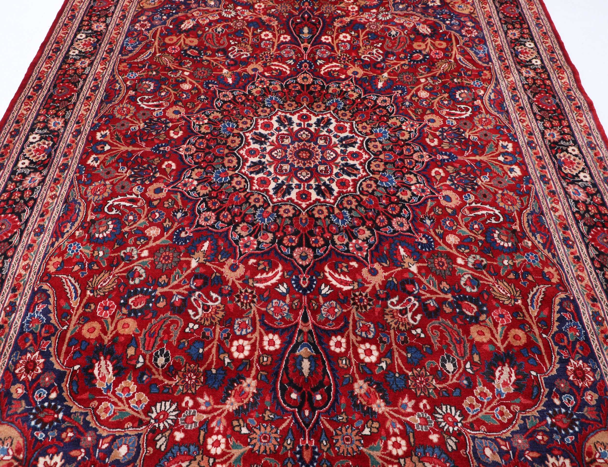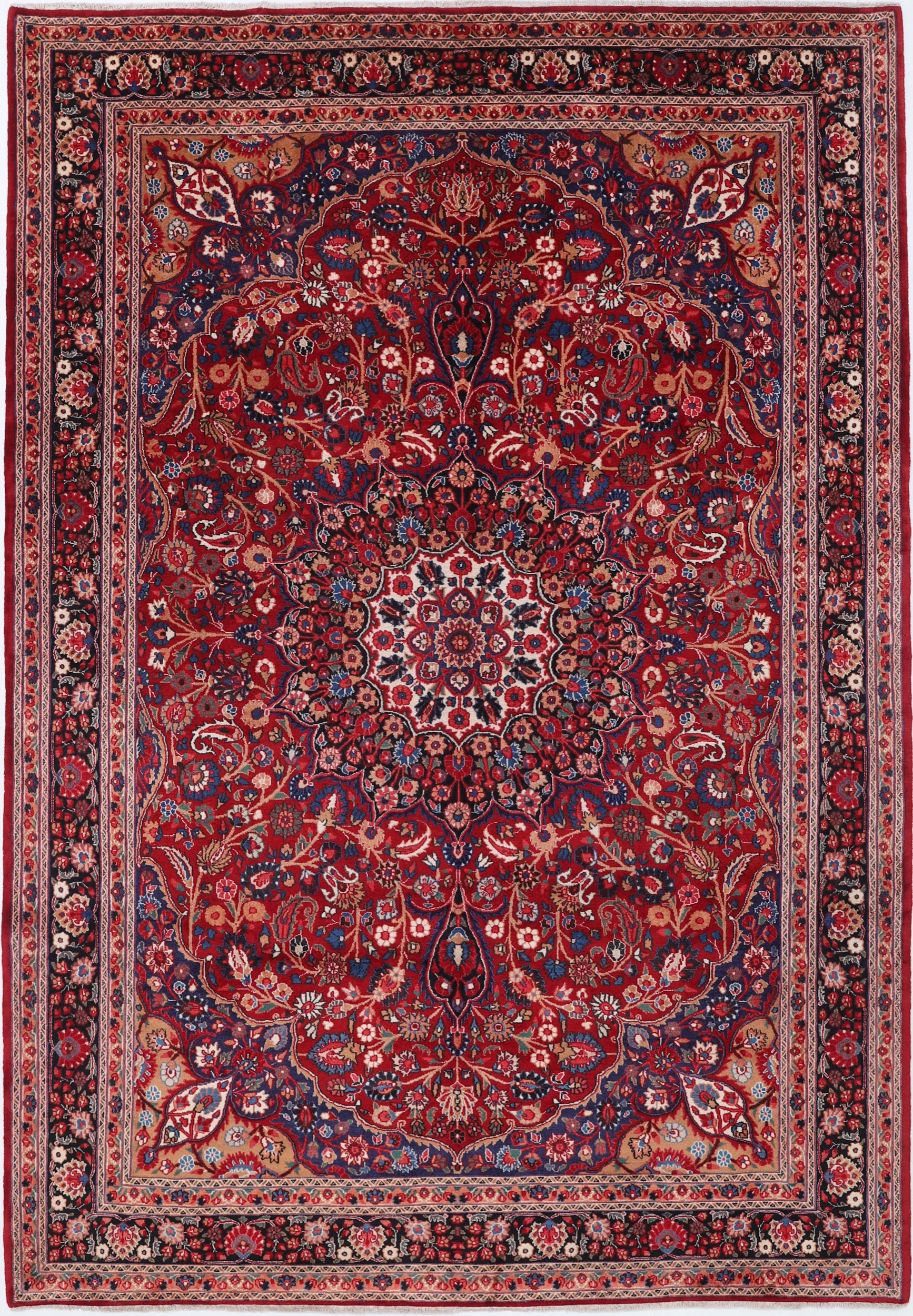 This Hand Knotted Moud Persian rug is a stunning piece measuring 6’10” x 10’4″. With an elegant design featuring red and black floral patterns, it adds a touch of sophistication to any room. Made from 100% wool with a high pile of 1/2″-5’8″, this rug offers both comfort and durability. Aged between 20-30 years, it exudes a sense of history and character. With a knot density of approximately 256 knots per square inch (KPSI), this rug showcases intricate craftsmanship. The combination of natural materials and exquisite design makes it a timeless and luxurious addition to your home.