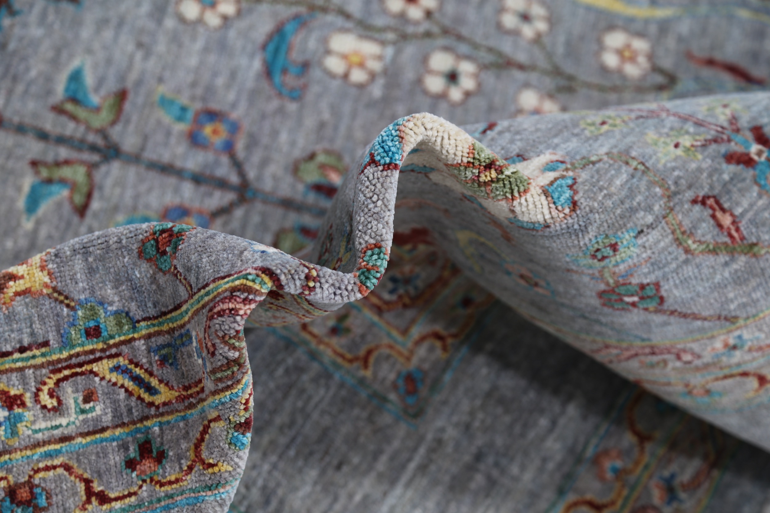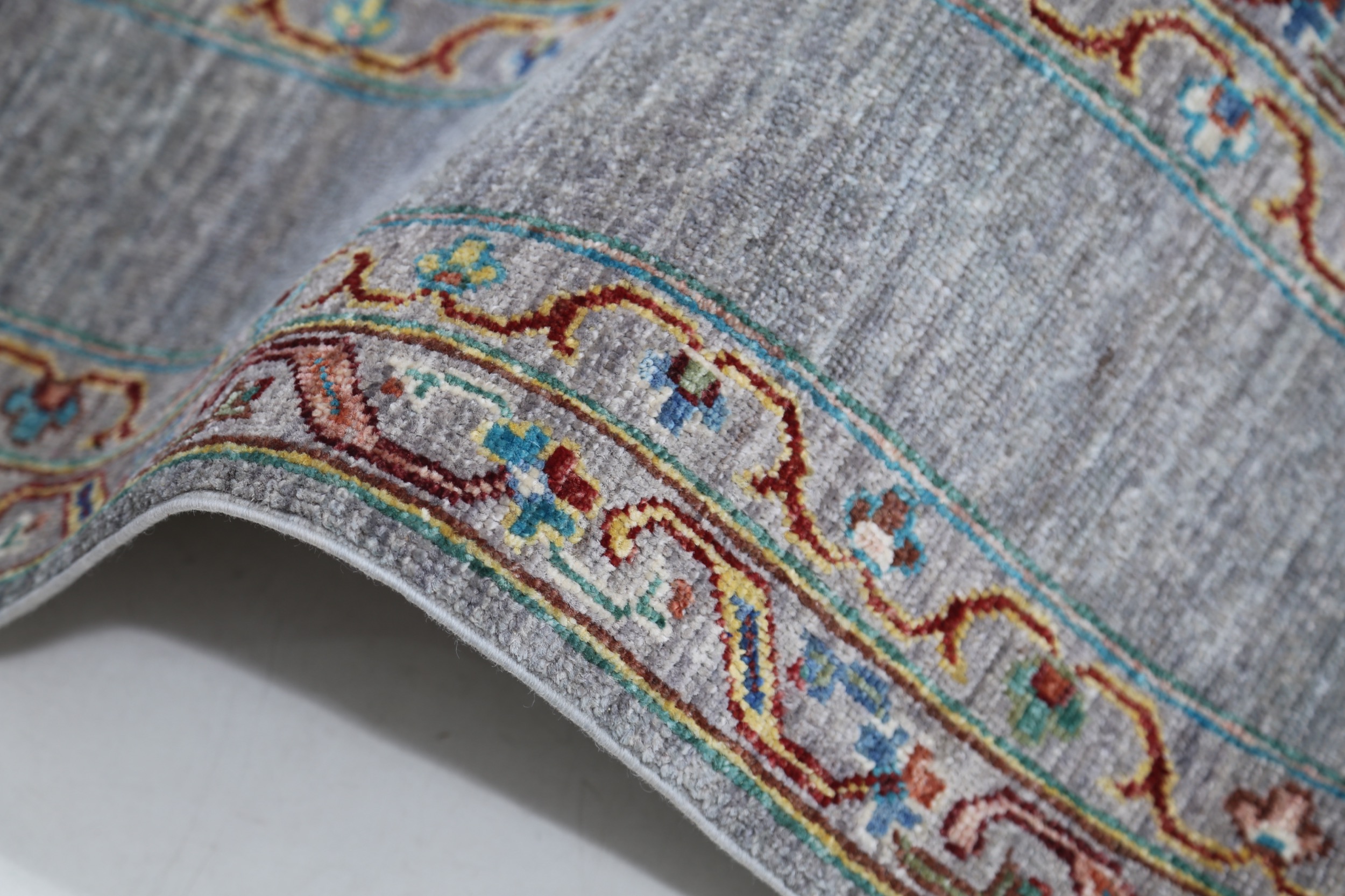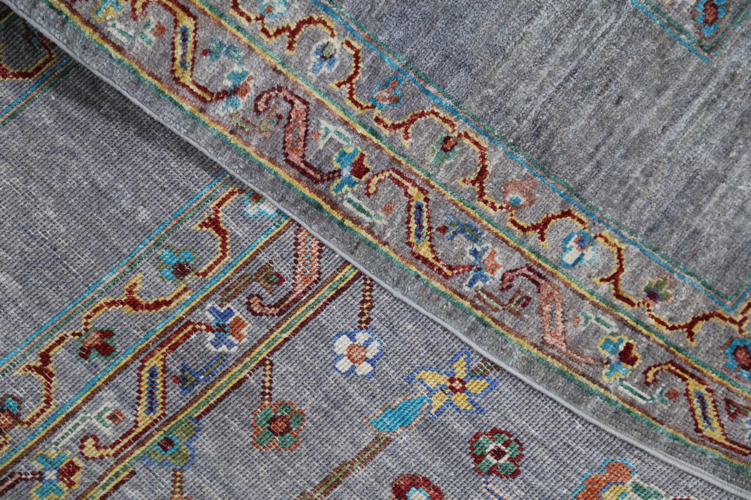 A stunning example of Oriental craftsmanship, this 6’9″ x 10’2″ Oushak rug is hand-knotted in Afghan / Pakistan. Its gray field and gray border frame a detailed floral design, known for its refined, traditional aesthetics. Durable and beautifully textured with a low medium pile 1/4″-1/3″ pile.