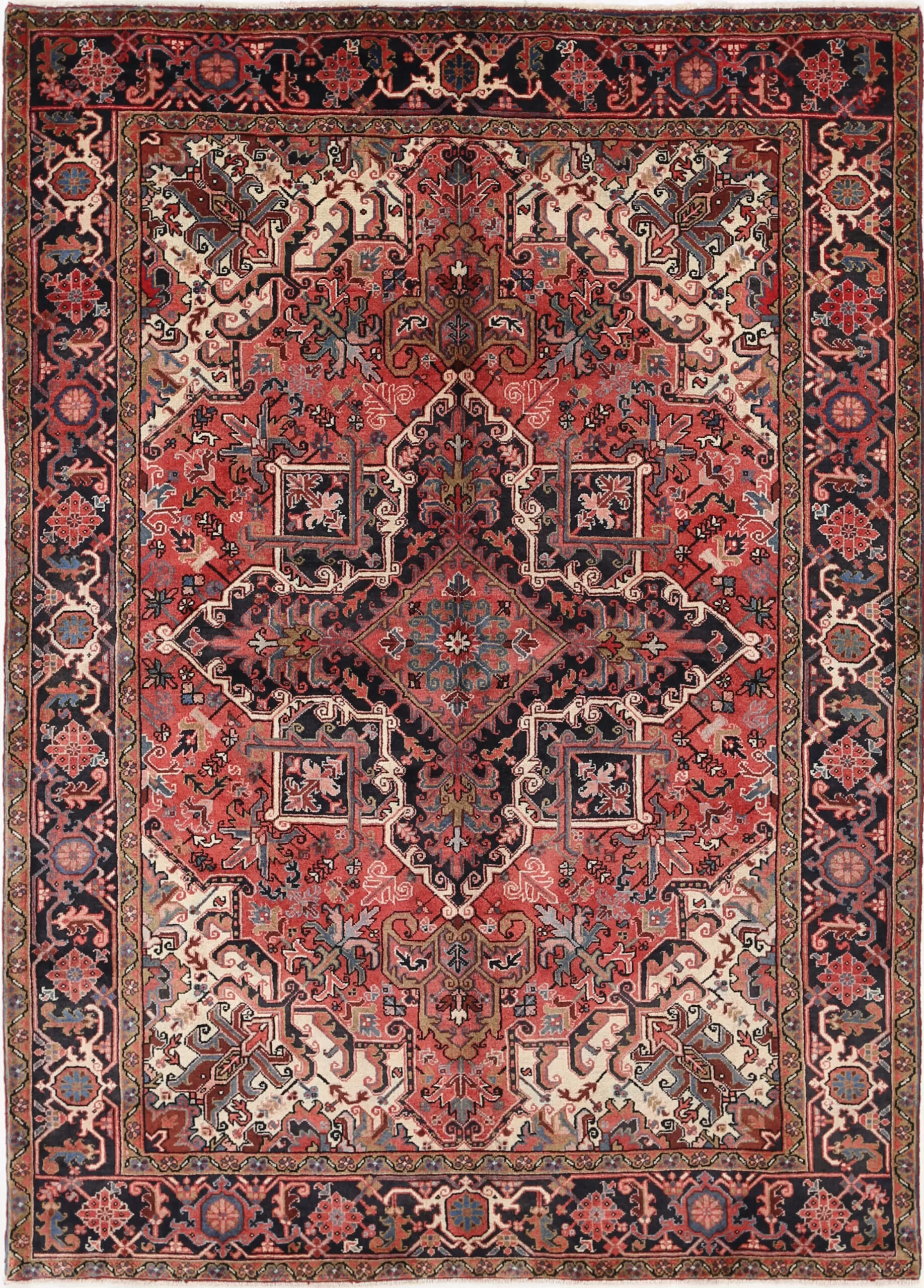This Persian rug is a stunning piece with a medallion design in black, beige, peach, and blue. Made from 100% wool with a high pile of 1/2″-5/8″, it has a knot density of approximately 120 KPSI. Aged 0-10 years, it measures 6’9″ x 9’4″ and is perfect for adding elegance to any space.