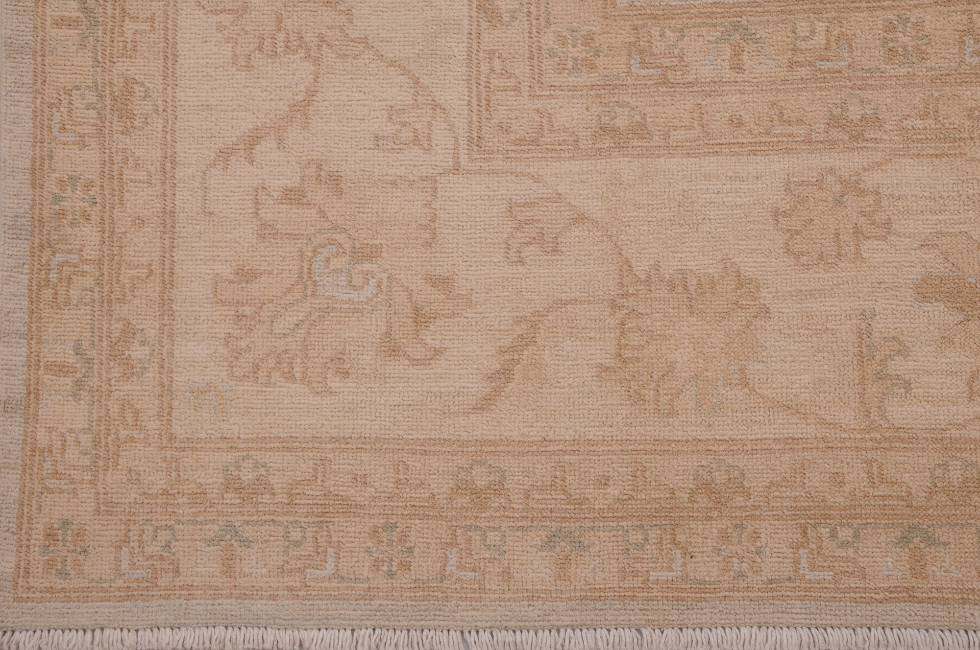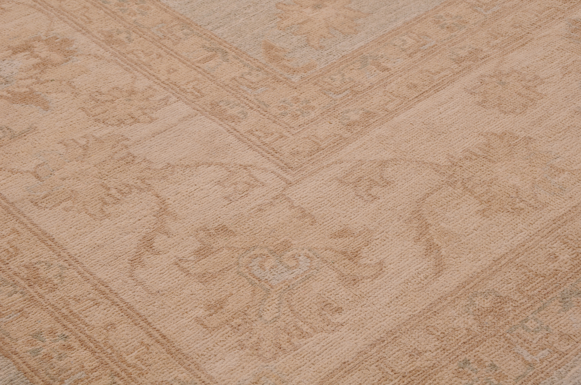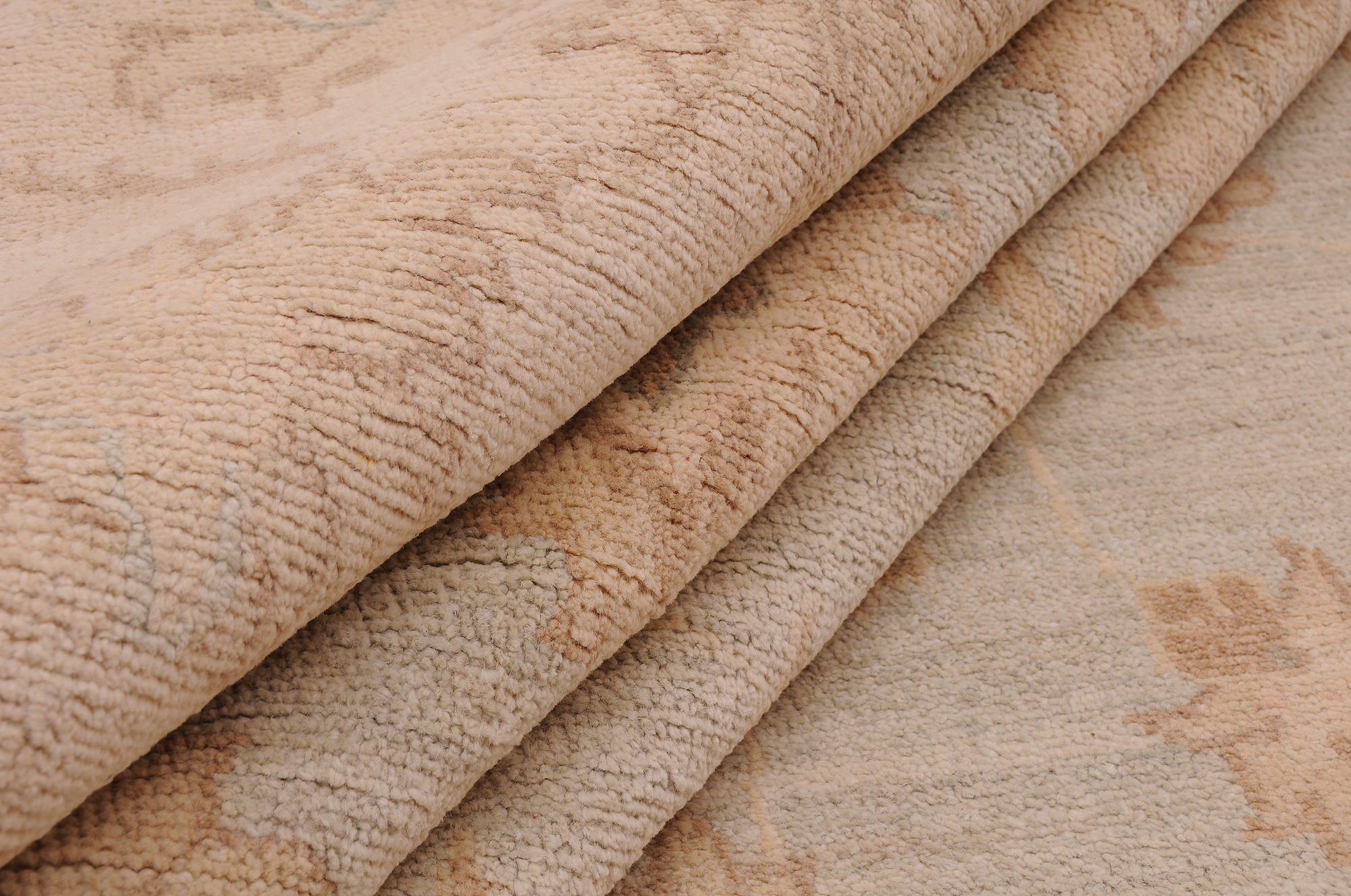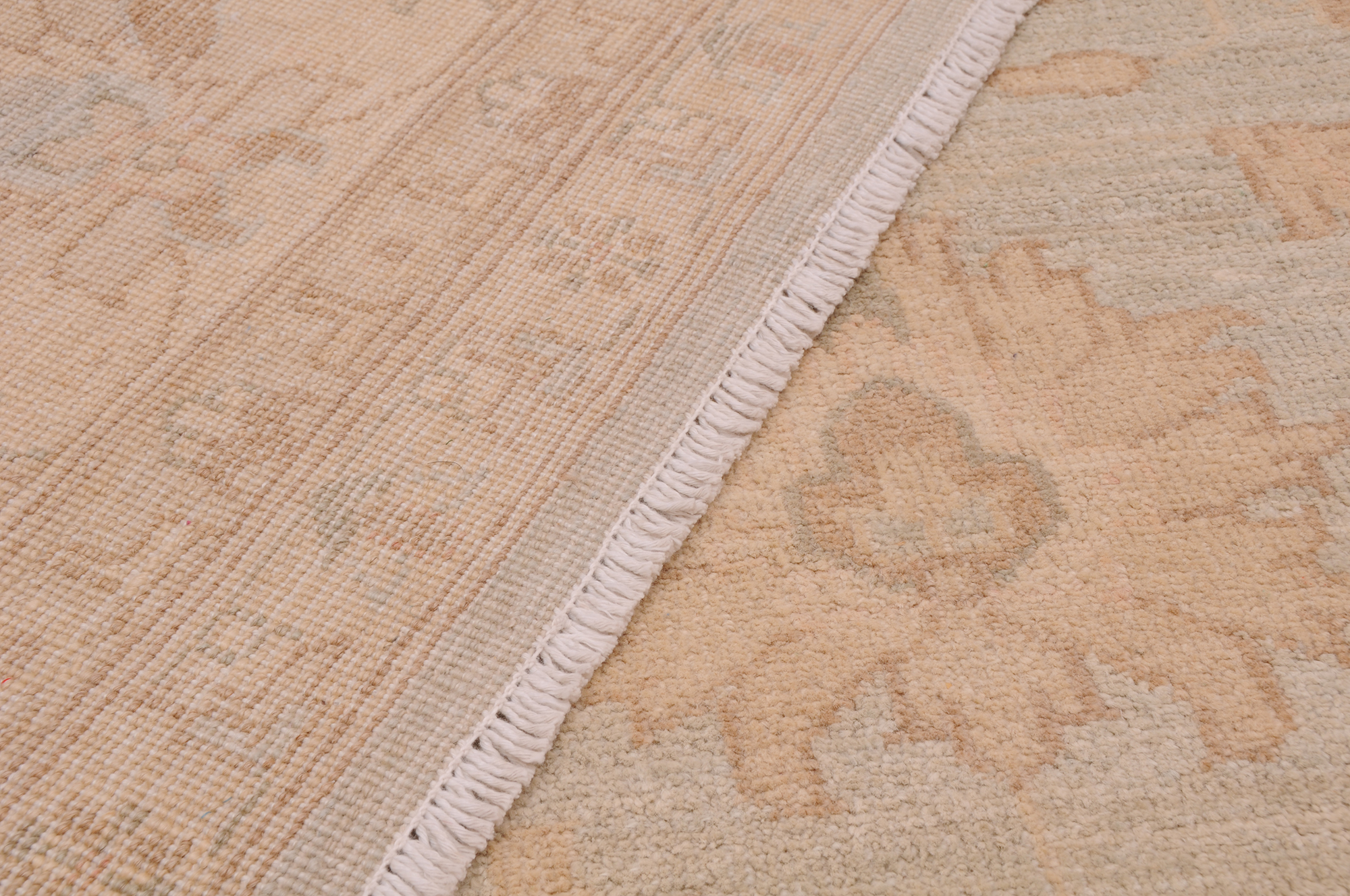 Authentic Oushak hand-knotted rug (7’10” x 9’6″), crafted in Afghanistan/Pakistan. This beautiful blue, beige, and brown floral rug features a low-medium pile (1/4″-1/3″) and boasts approximately 156 KPSI. 100% wool with a cotton foundation.