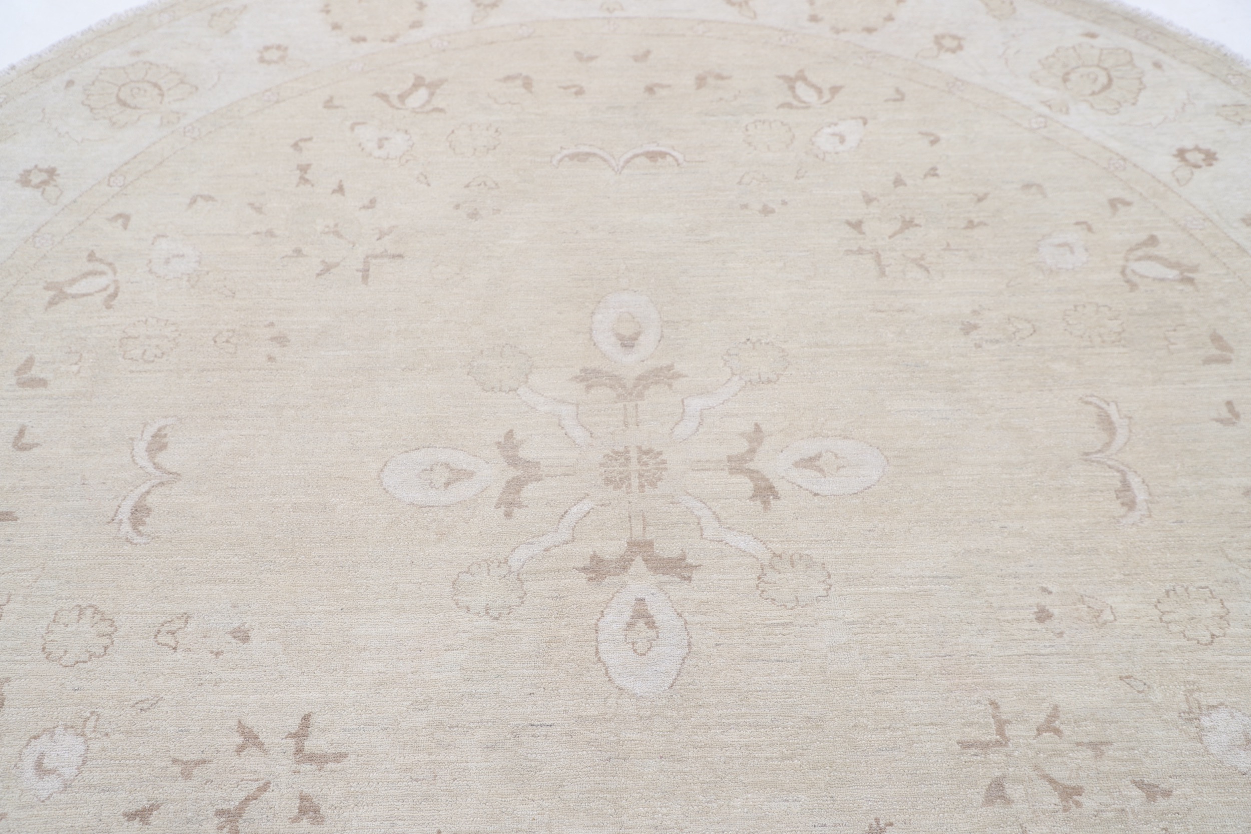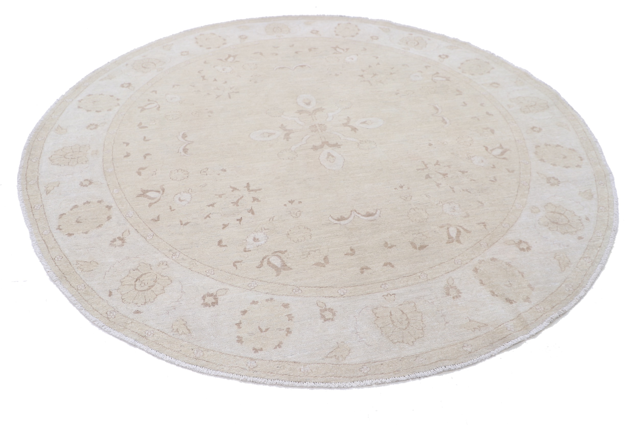 This 7’9″ x 7’9″ Oushak rug, hand-knotted in Afghan / Pakistan, features a floral design. Crafted with approx. 156 kpsi, its field color is Beige with a Green border. The rug has a low medium pile 1/4″-1/3″ and a 100% wool pile, in excellent & washed condition.