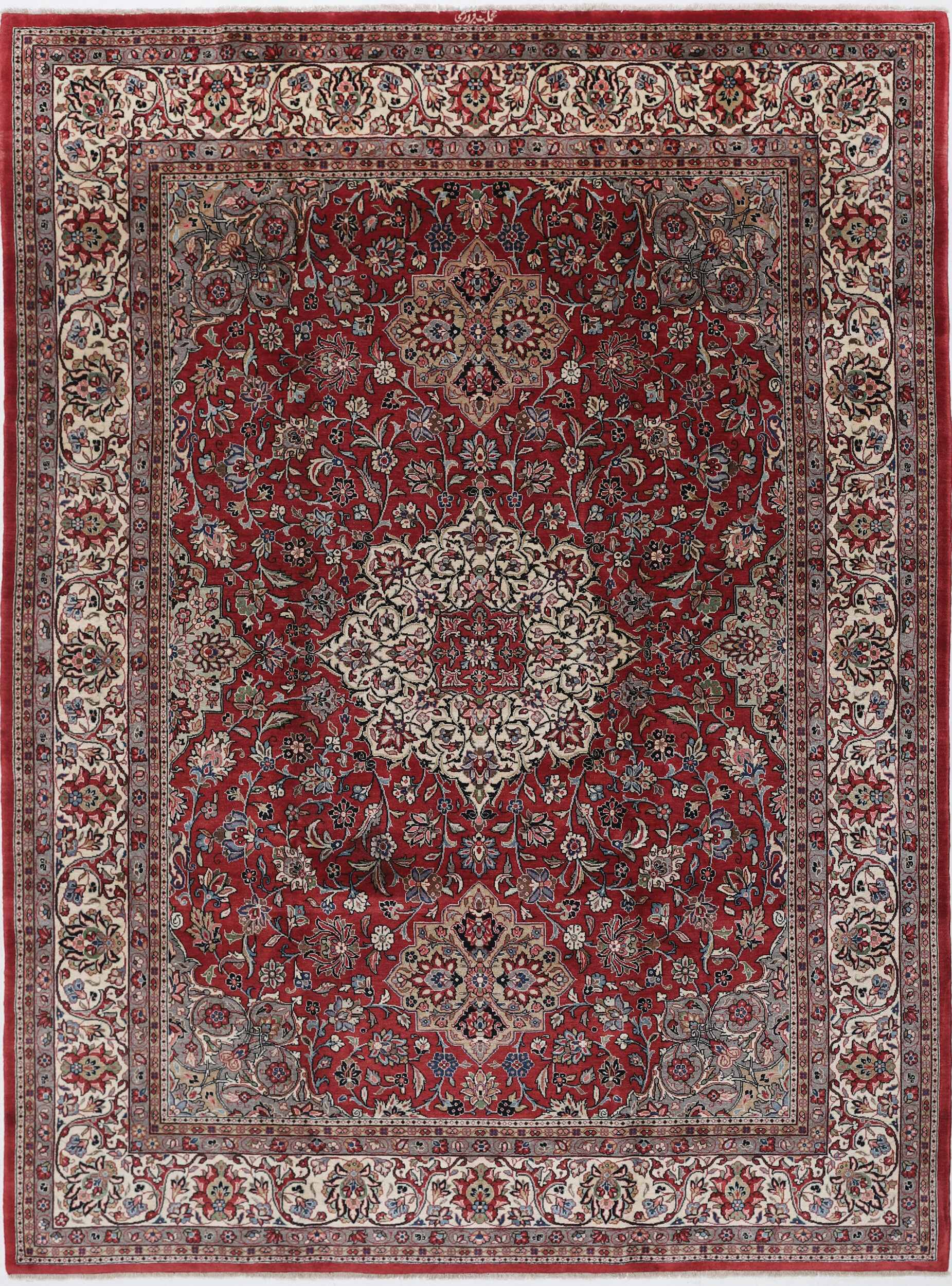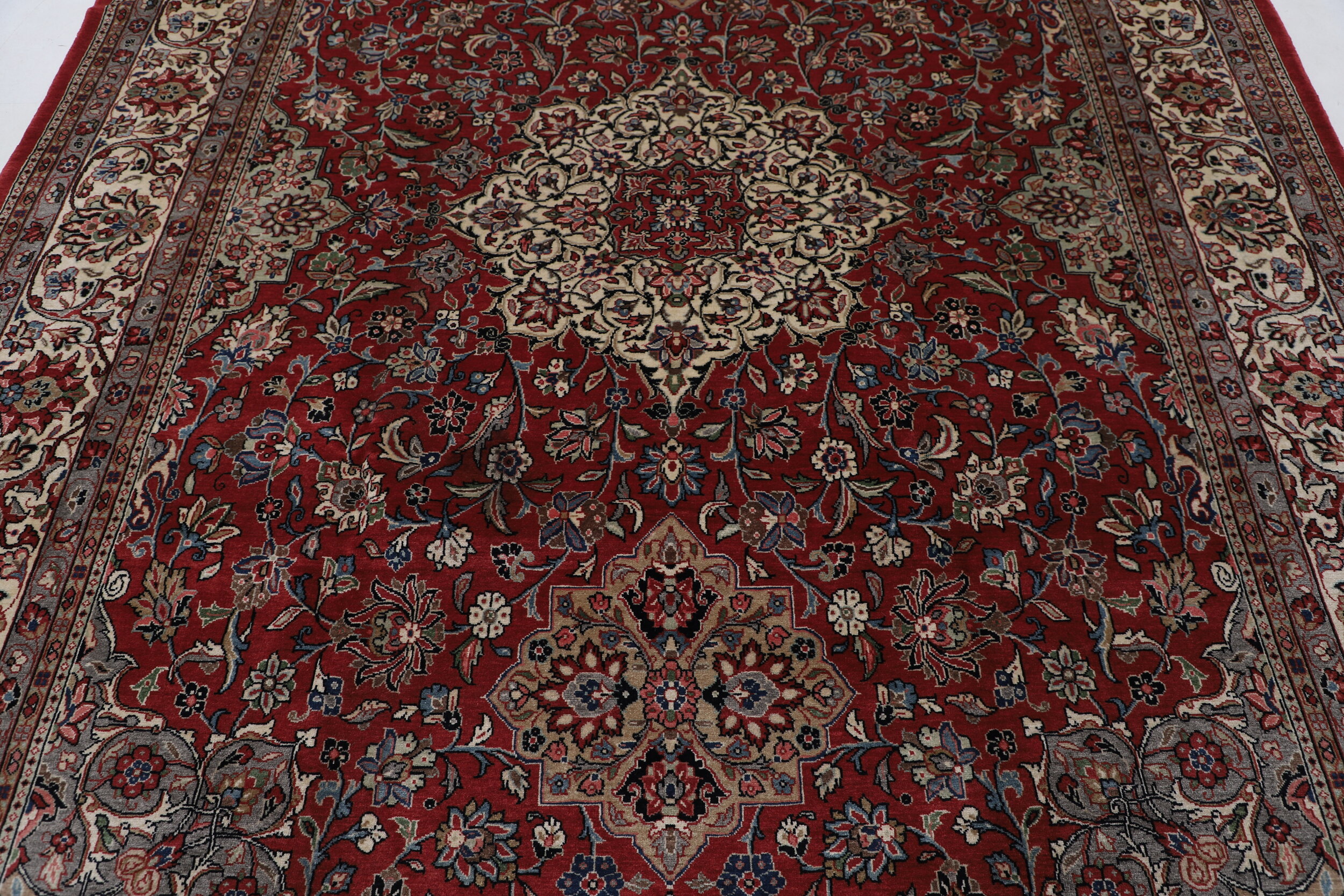 This Persian Rug is hand-knot with 100% Wool Pile and Cotton Foundation. This Rug has a Medallion design and its Main Colors are Blue, Beige, Red, and Brown.