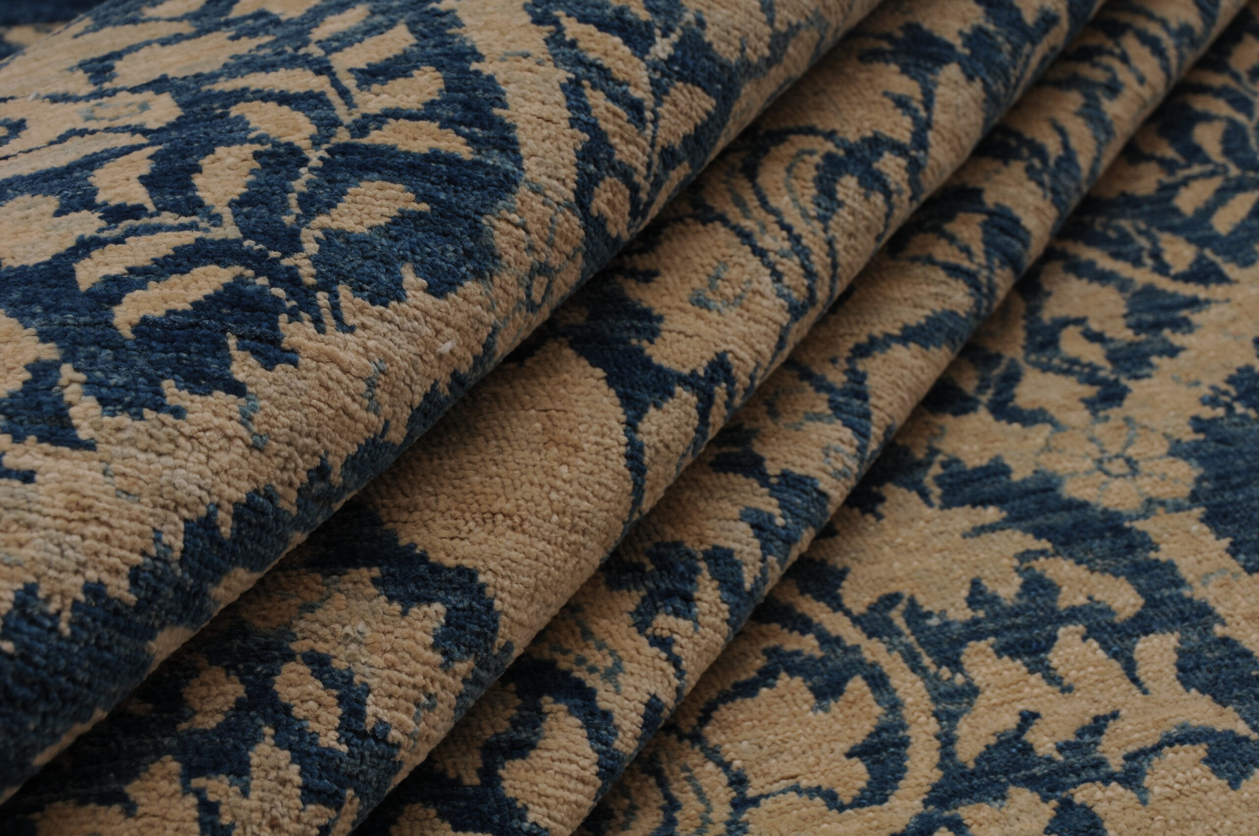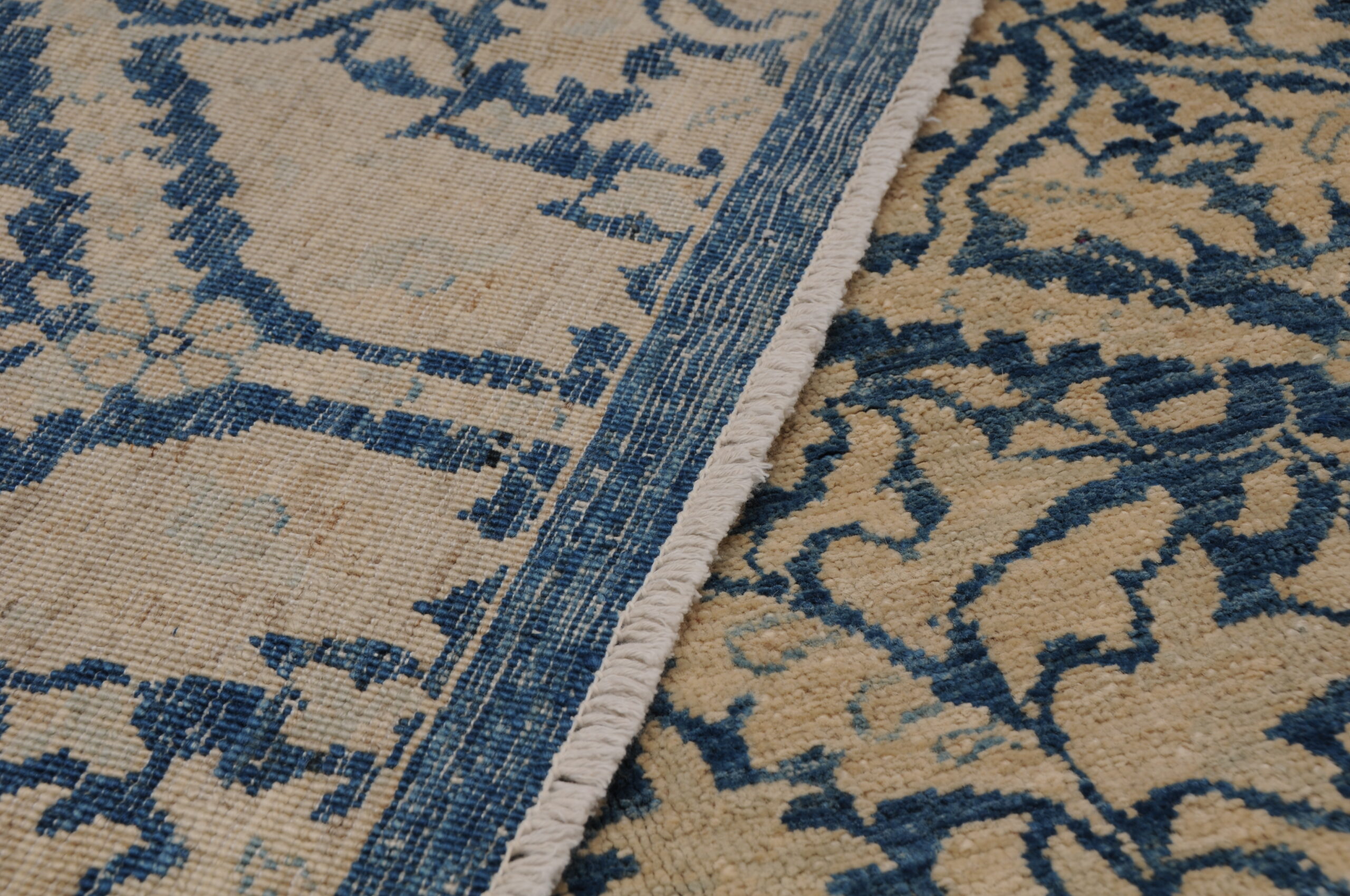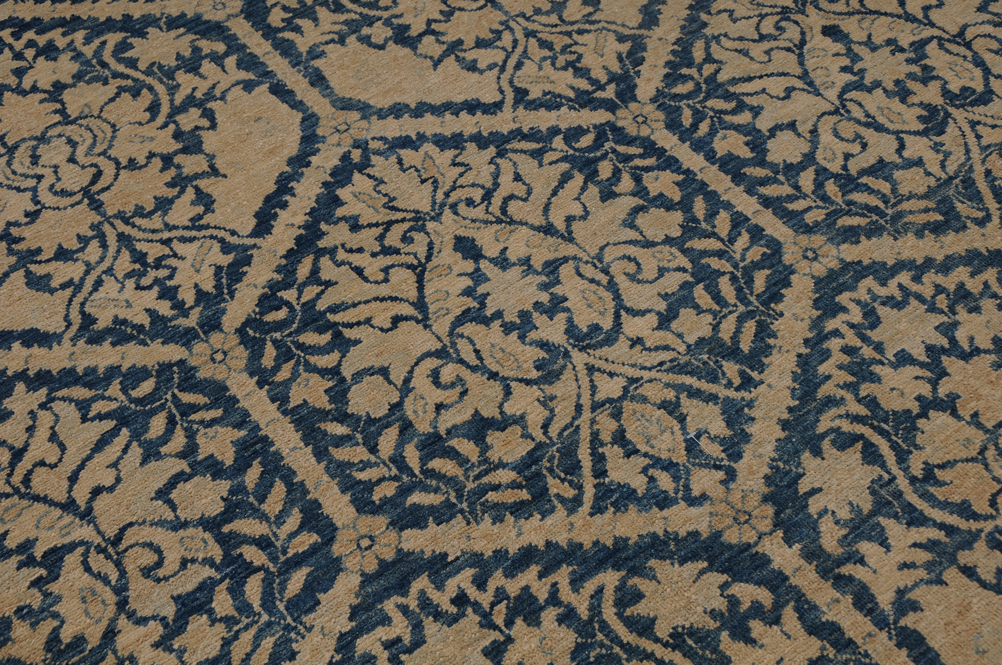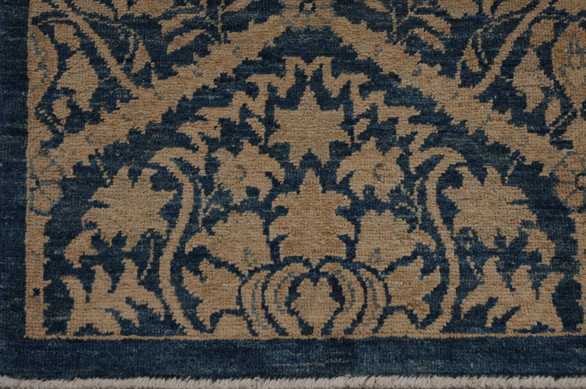 This 8’0″ x 9’9″ Oushak rug, hand-knotted in Afghan / Pakistan, features a panel design. It is woven with Approx. 196KPSI, showcasing a field in Blue and a Blue border. The rug has a Low Medium Pile and a 100% Wool pile, and is in excellent condition.