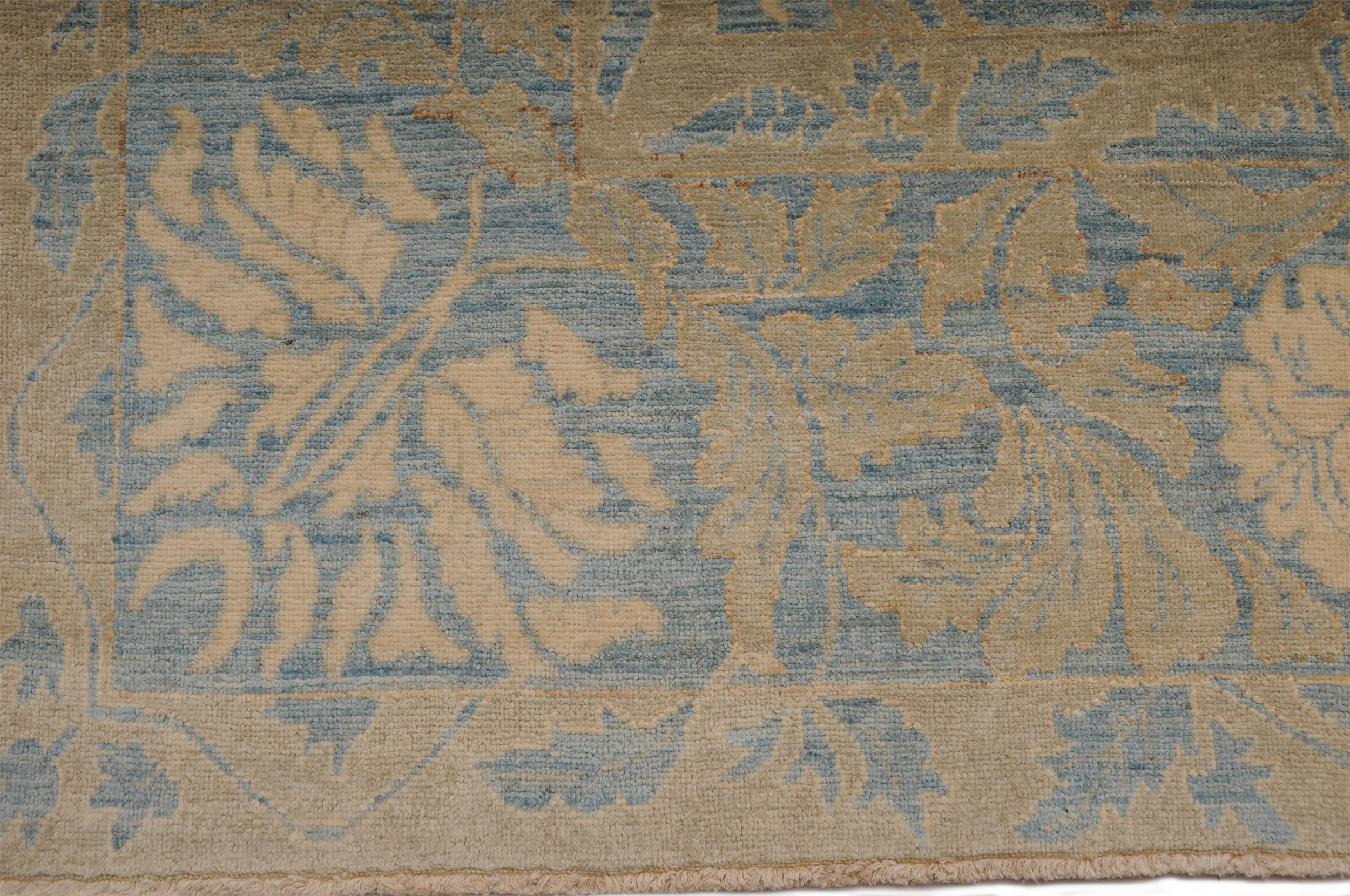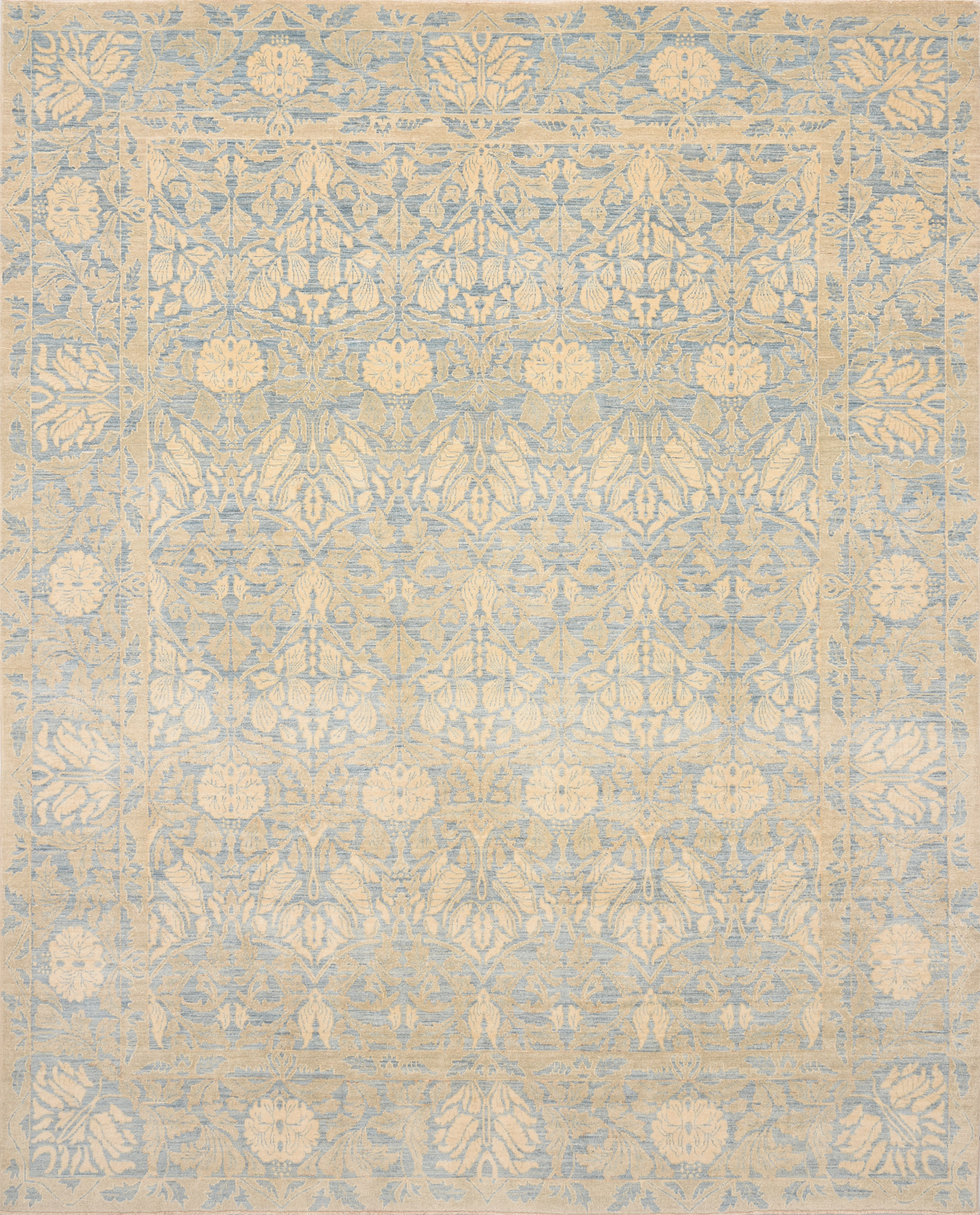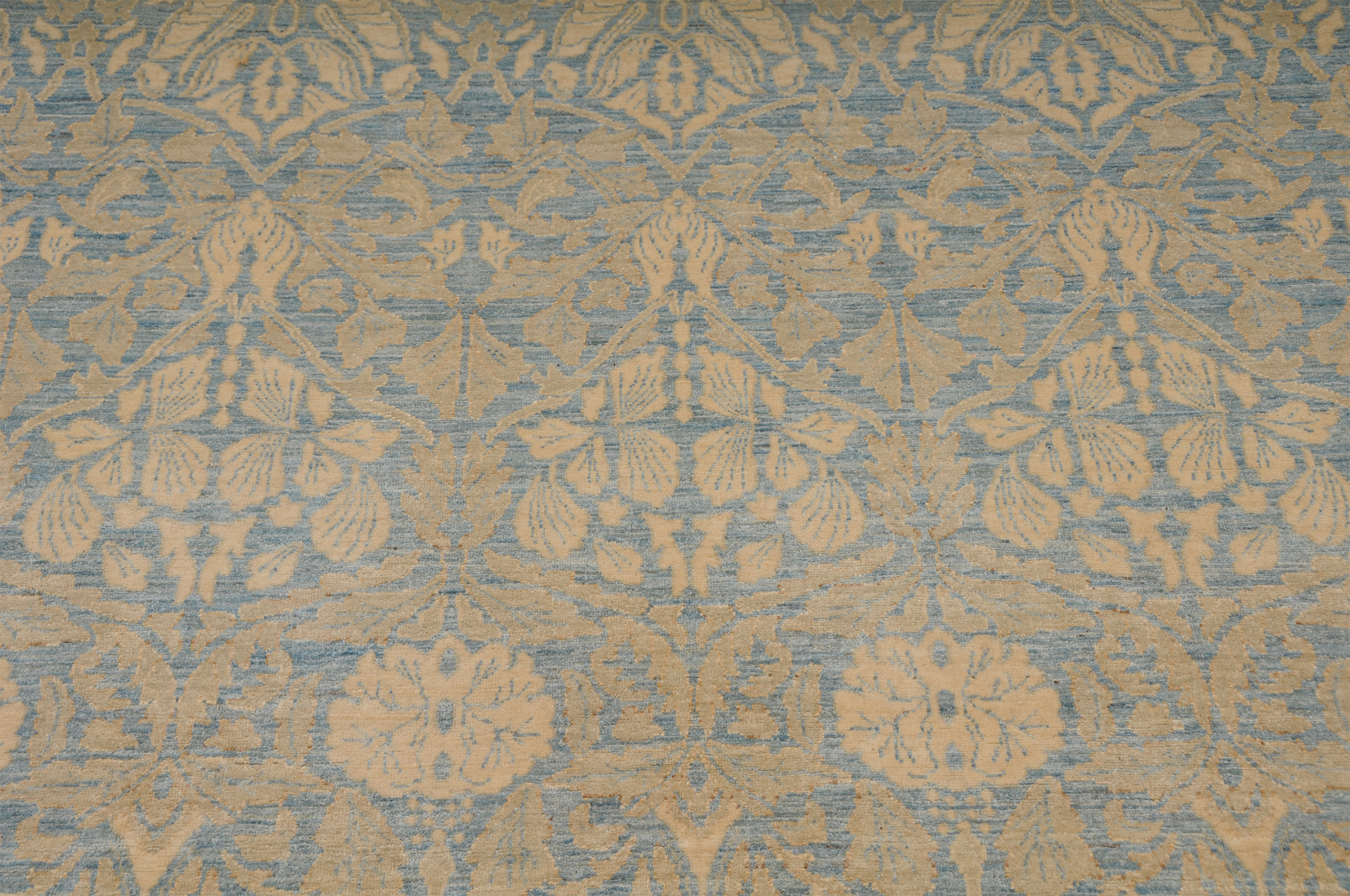 This 8’2″ x 10’3″ Oushak rug, hand-knotted in Afghan / Pakistan, features a allover design. It is woven with Approx. 196 KPSI, showcasing a field in Blue and a Beige border. The rug has a Low Medium Pile and a 100% Wool pile, and is in excellent condition.