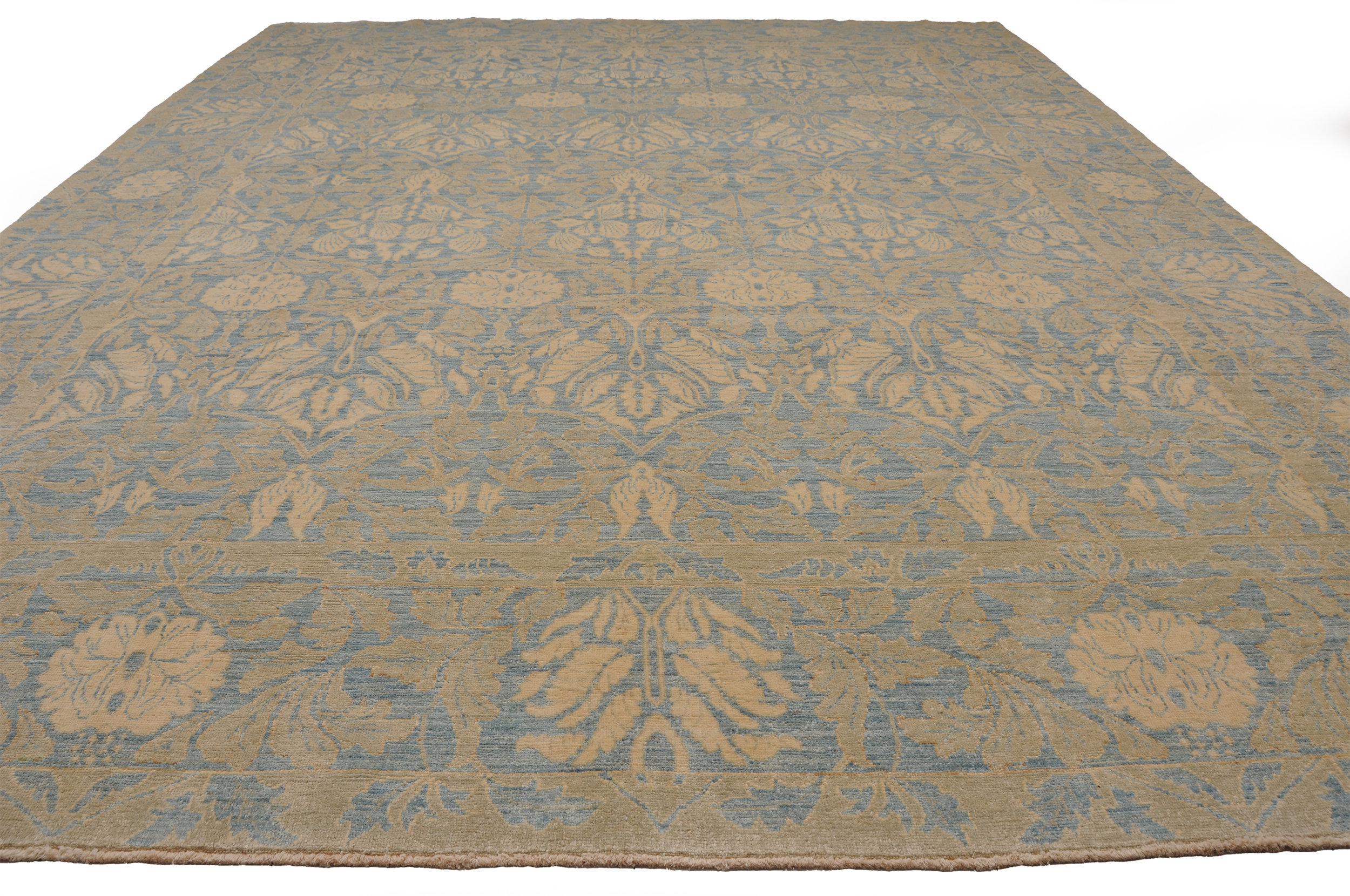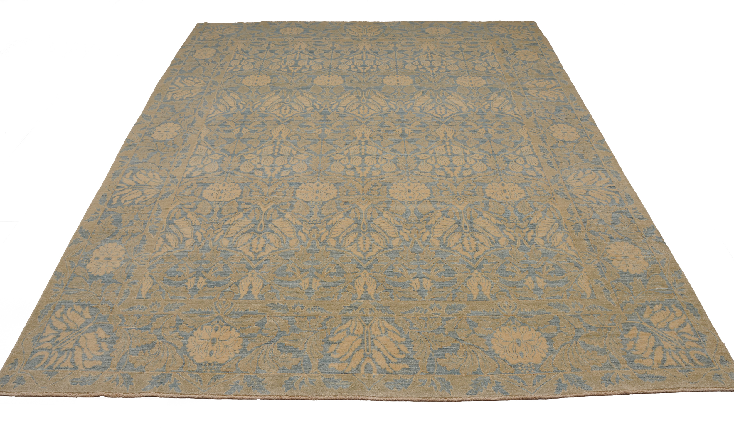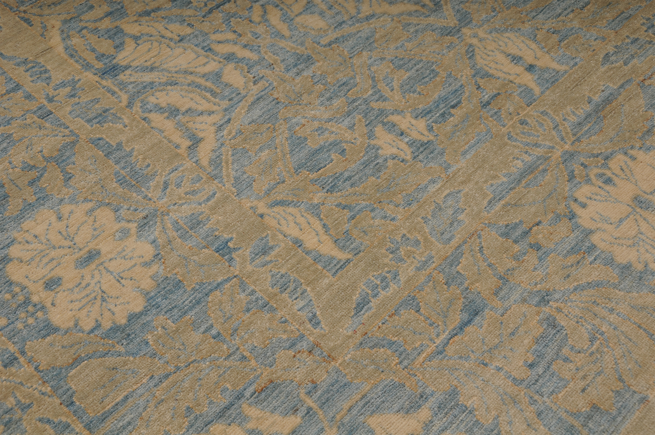This 8’2″ x 10’3″ Oushak rug, hand-knotted in Afghan / Pakistan, features a allover design. It is woven with Approx. 196 KPSI, showcasing a field in Blue and a Beige border. The rug has a Low Medium Pile and a 100% Wool pile, and is in excellent condition.