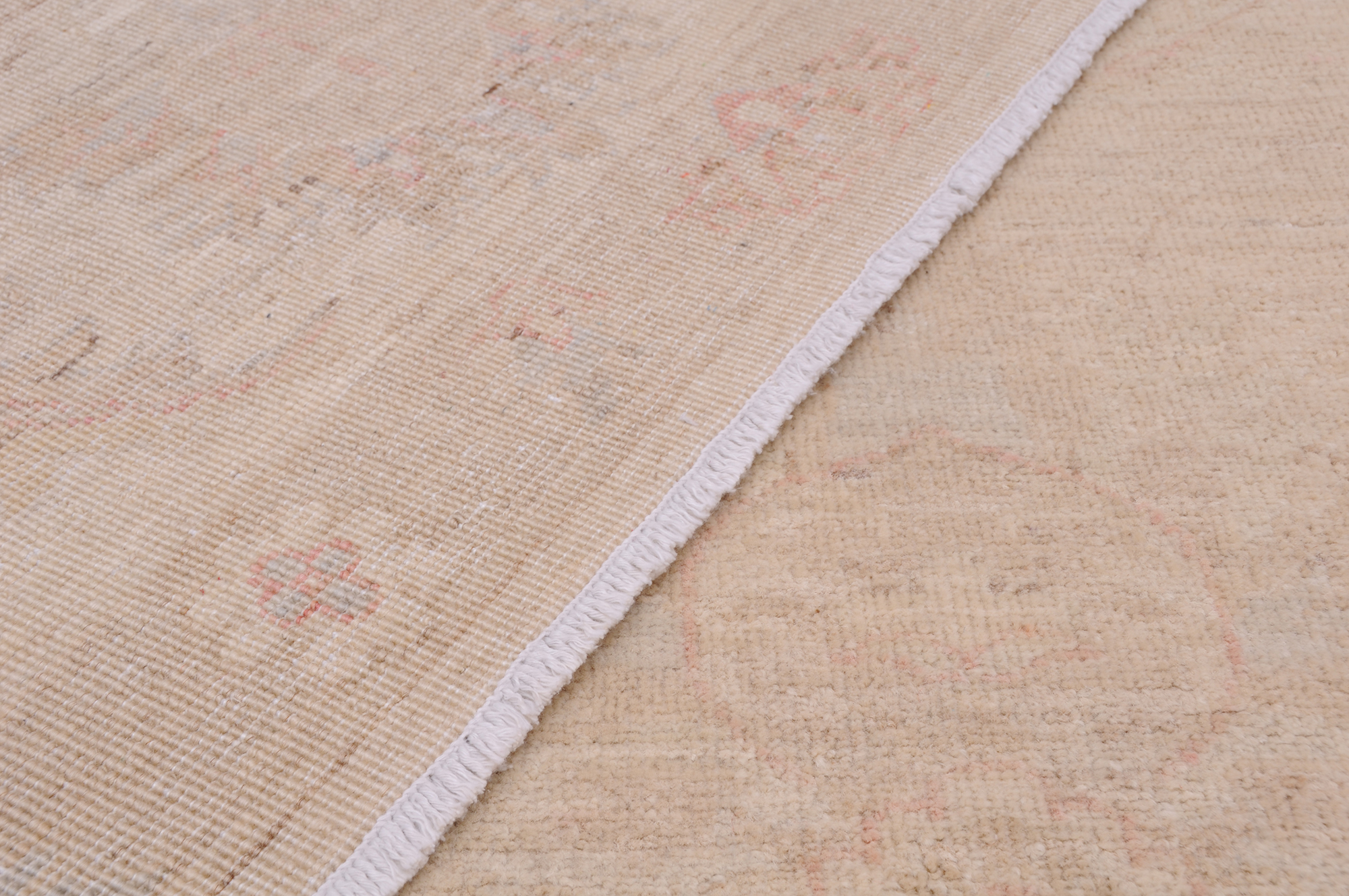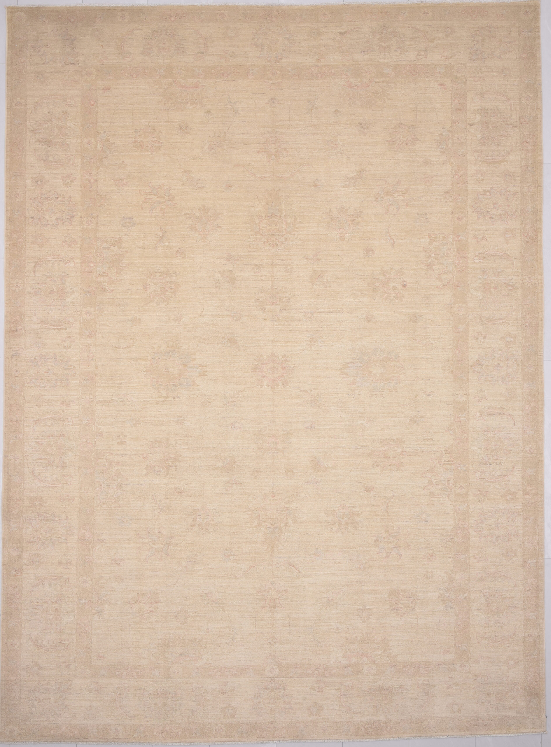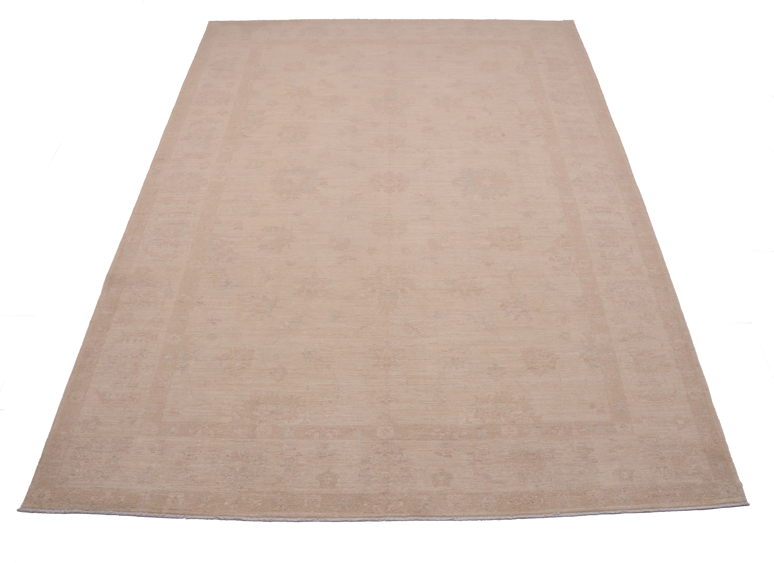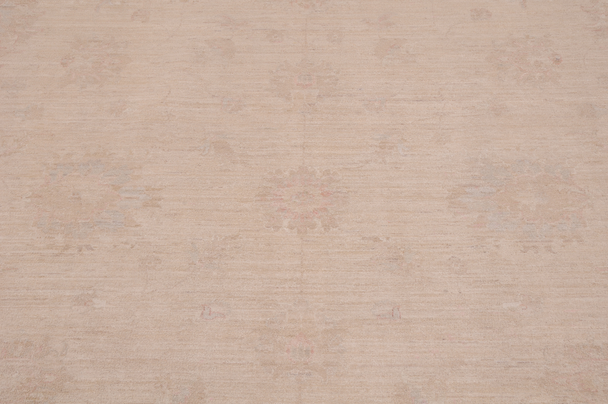 This 8’2″ x 11’2″ Oushak rug, hand-knotted in Afghan / Pakistan, features a allover design. It is woven with Approx. 169 KPSI, showcasing a field in Beige and a Beige border. The rug has a Low Medium Pile and a 100% Wool pile, and is in excellent condition.