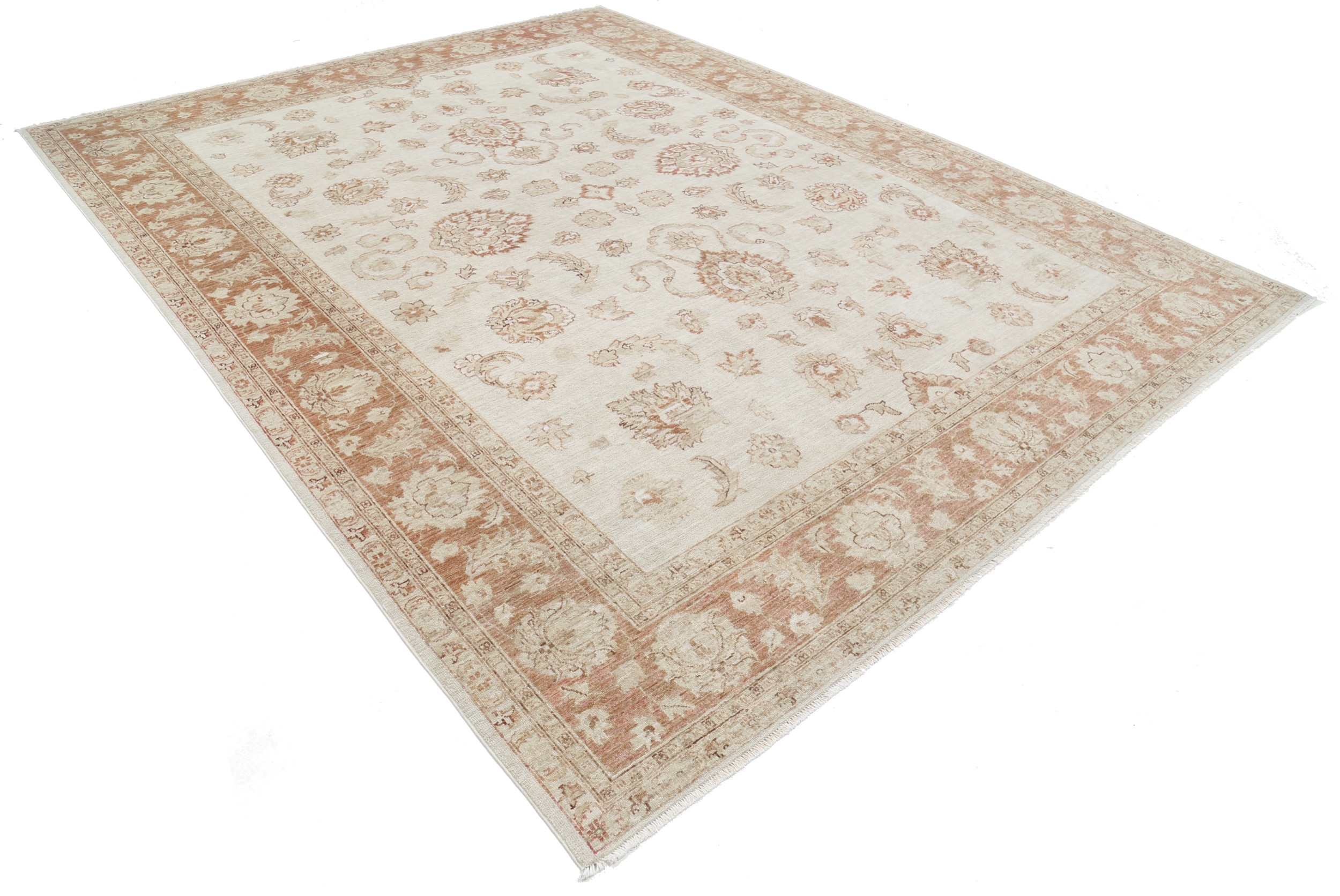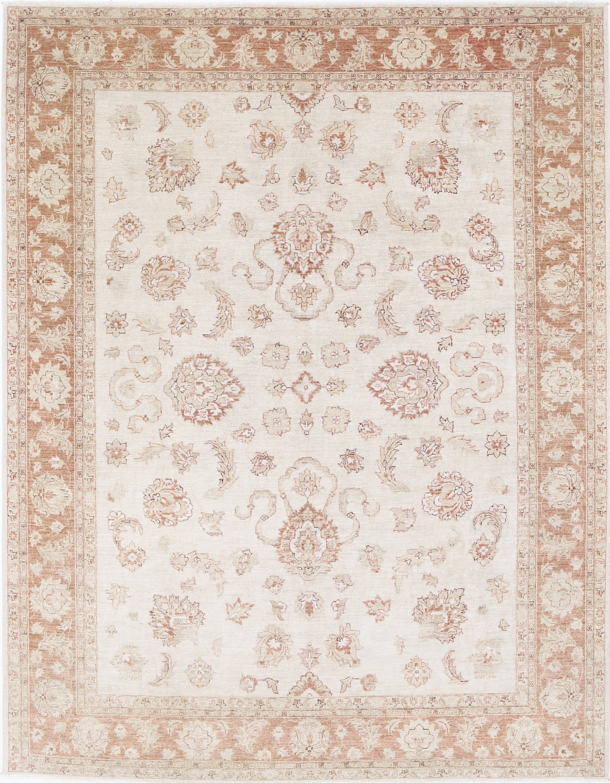 Introducing the exquisite Oushak Oriental rug, meticulously hand-knotted with utmost care. This stunning piece measures 8’9” x 11’4” and features a captivating beige and brown floral design. With an impressive density of approximately 156 knots per square inch, this rug is crafted from high-quality 100% wool and cotton. Its low to medium pile height of 1/4″-1/3″ provides a comfortable feel underfoot. The rug is in excellent condition and has been expertly washed, ensuring its beauty and durability. Enhance your space with the timeless elegance of this remarkable Oushak Oriental rug.