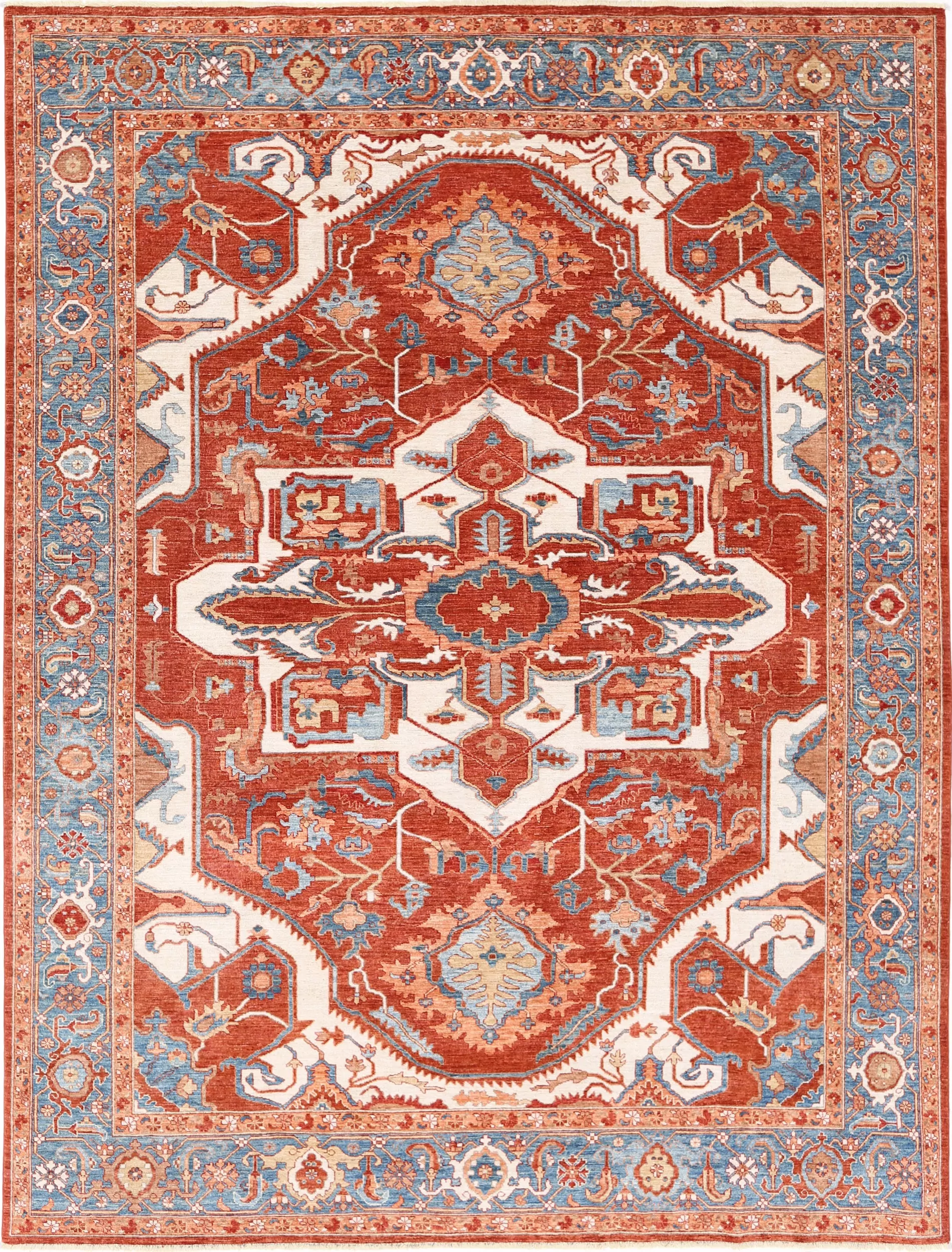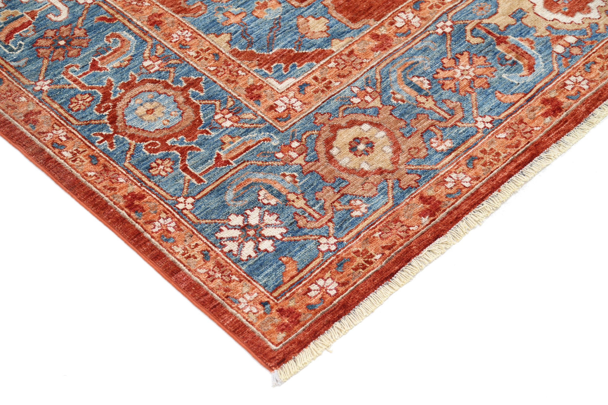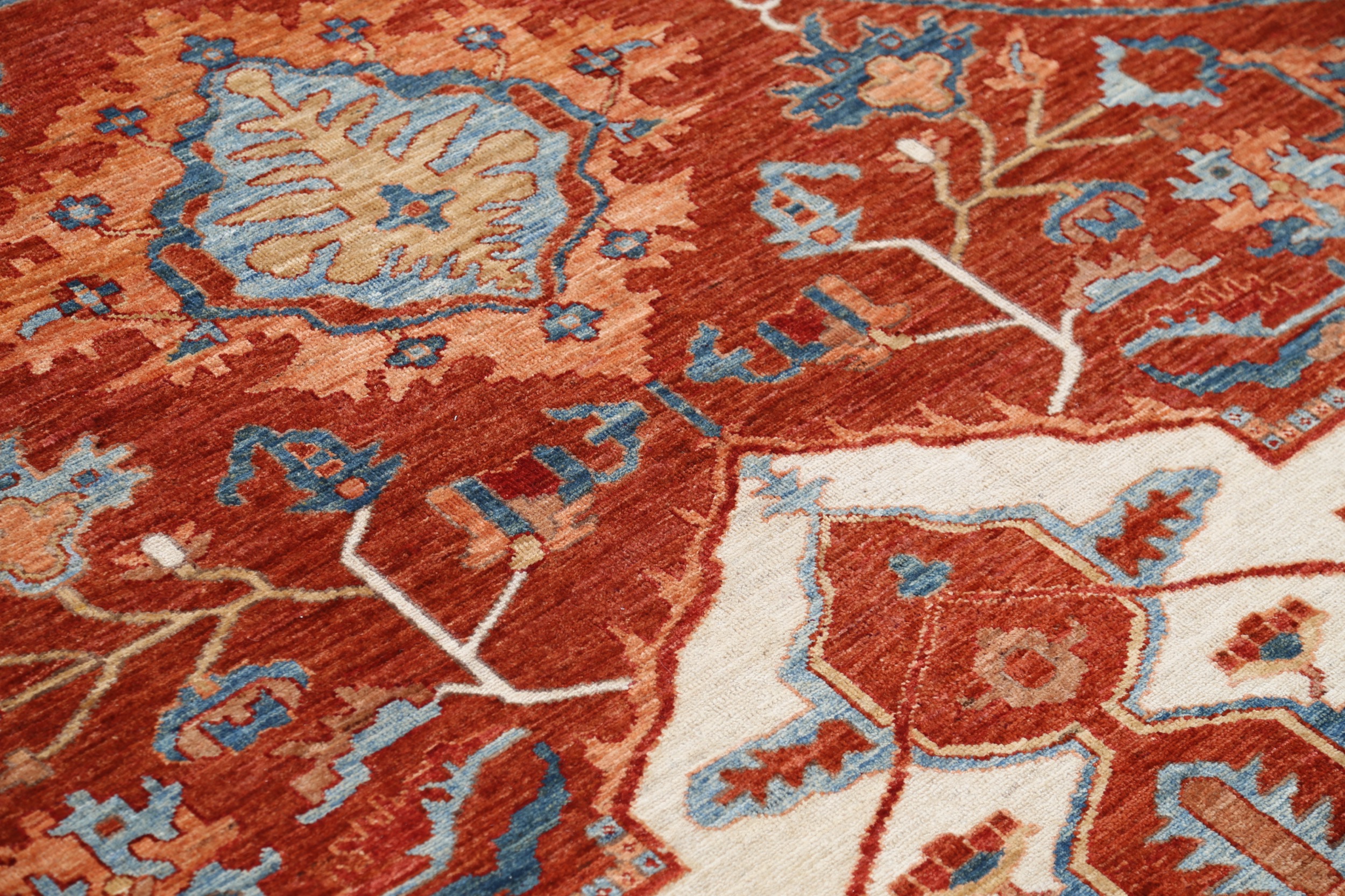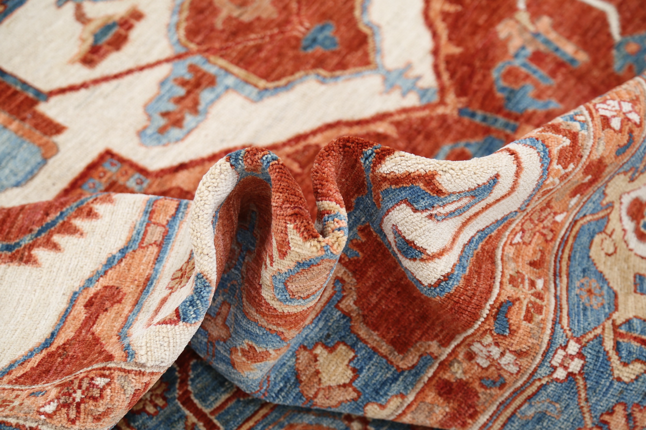 This Kazak Oriental rug boasts an intricate rust medallion design hand-knotted with 100% wool and cotton. With a low to medium pile height of 1/4″-1/3″ and approximately 156 KPSI, this rug is not only beautiful but durable as well. Excellent and washed, it is ready to add a touch of elegance to any space.