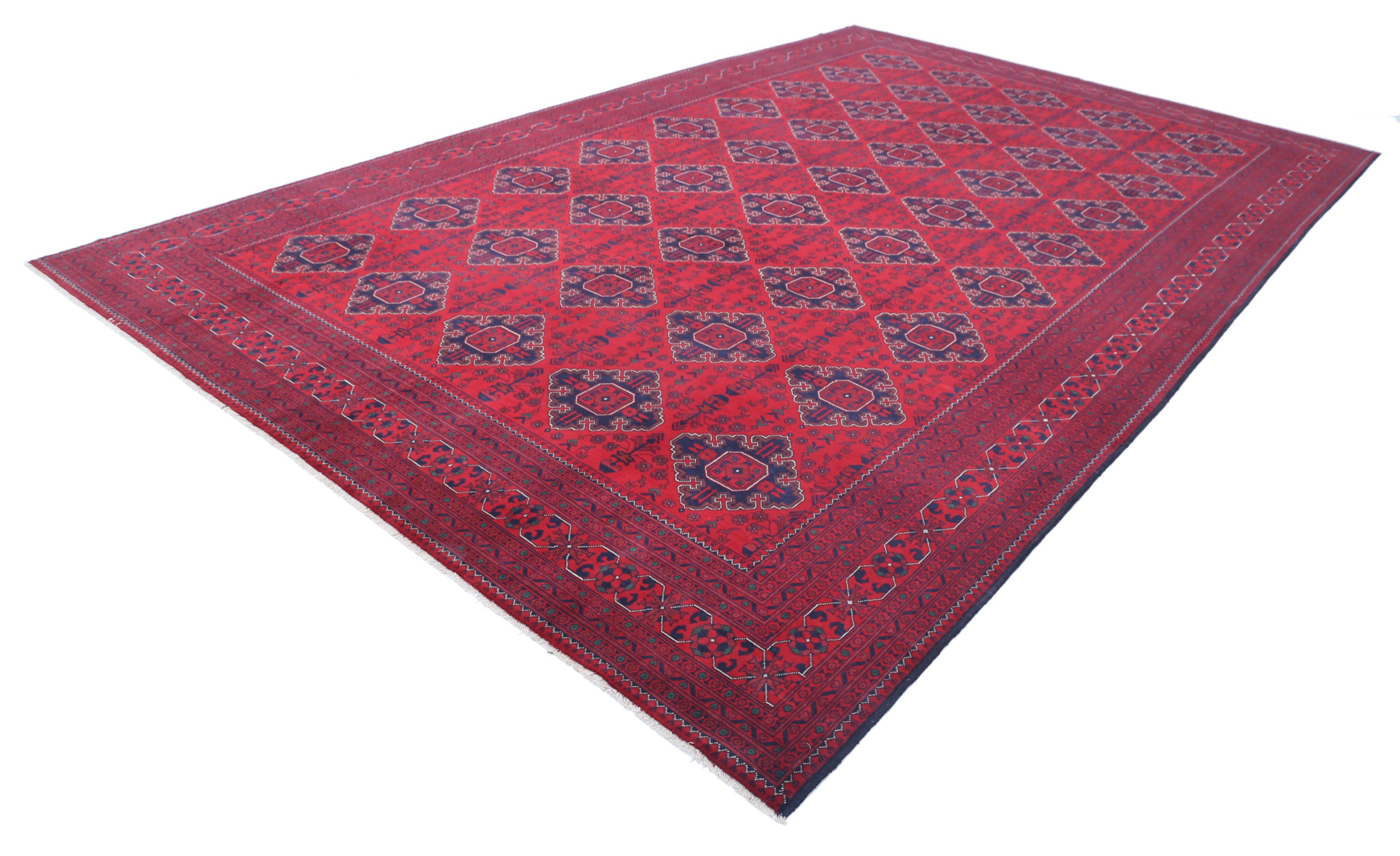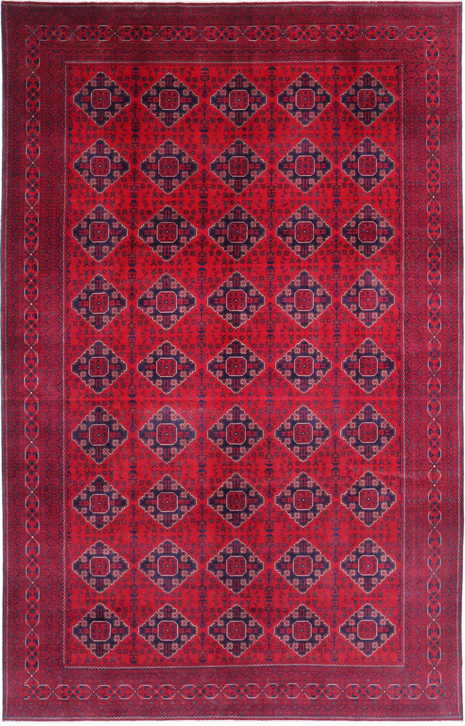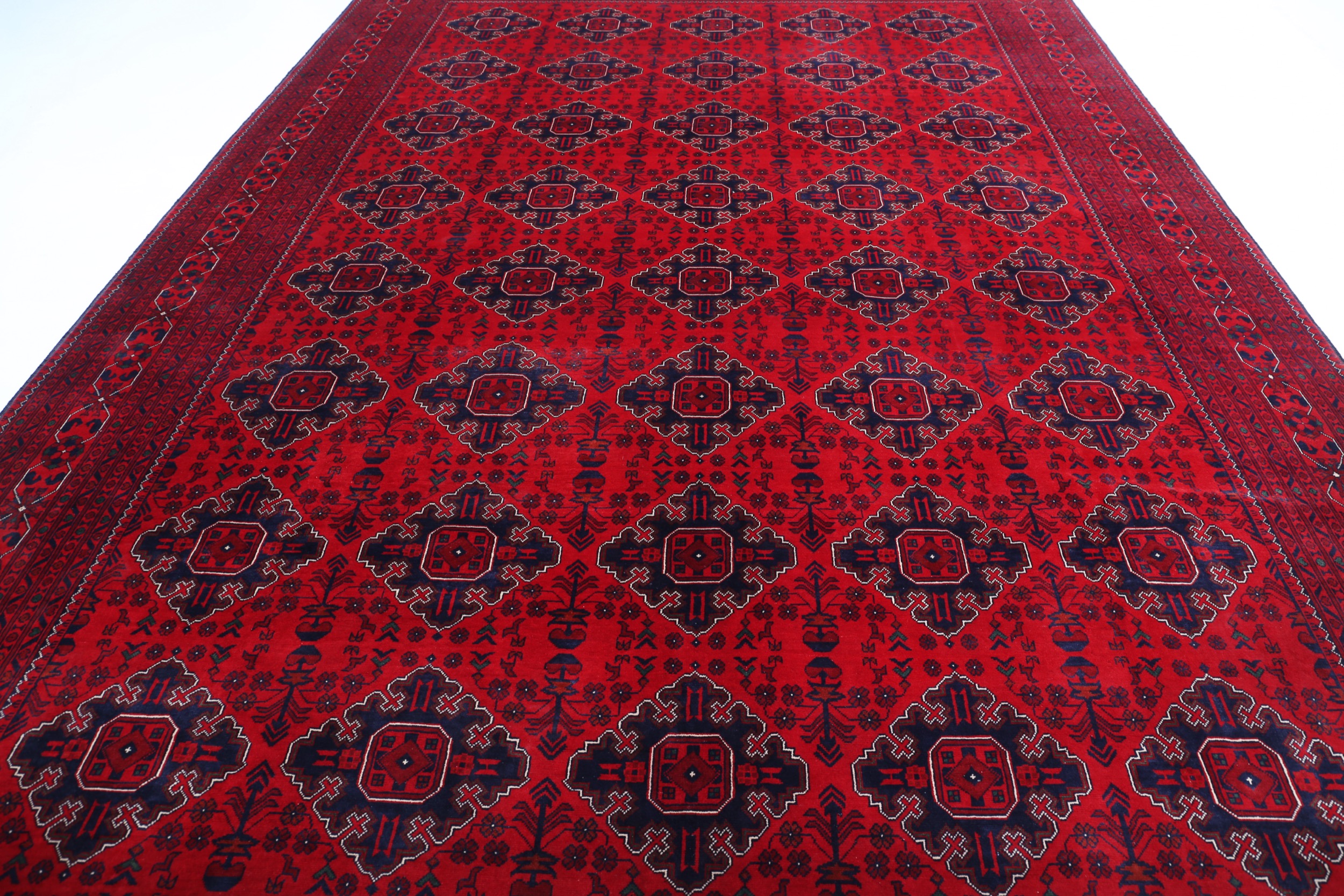 This Khal Mohamadi has a Red field with Red border. Made with 100% Wool pile. Allover design with Approx. 196 KPSI