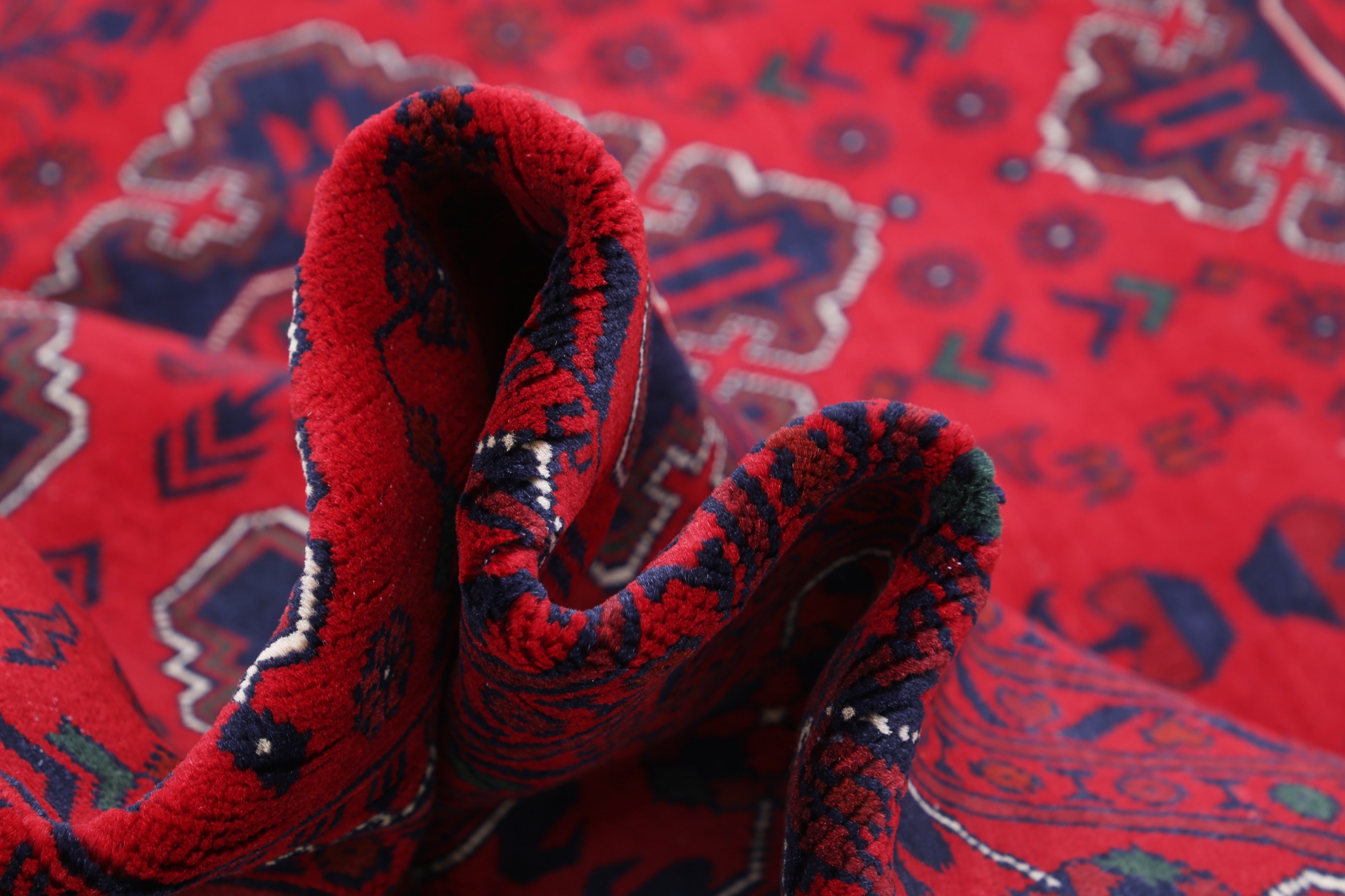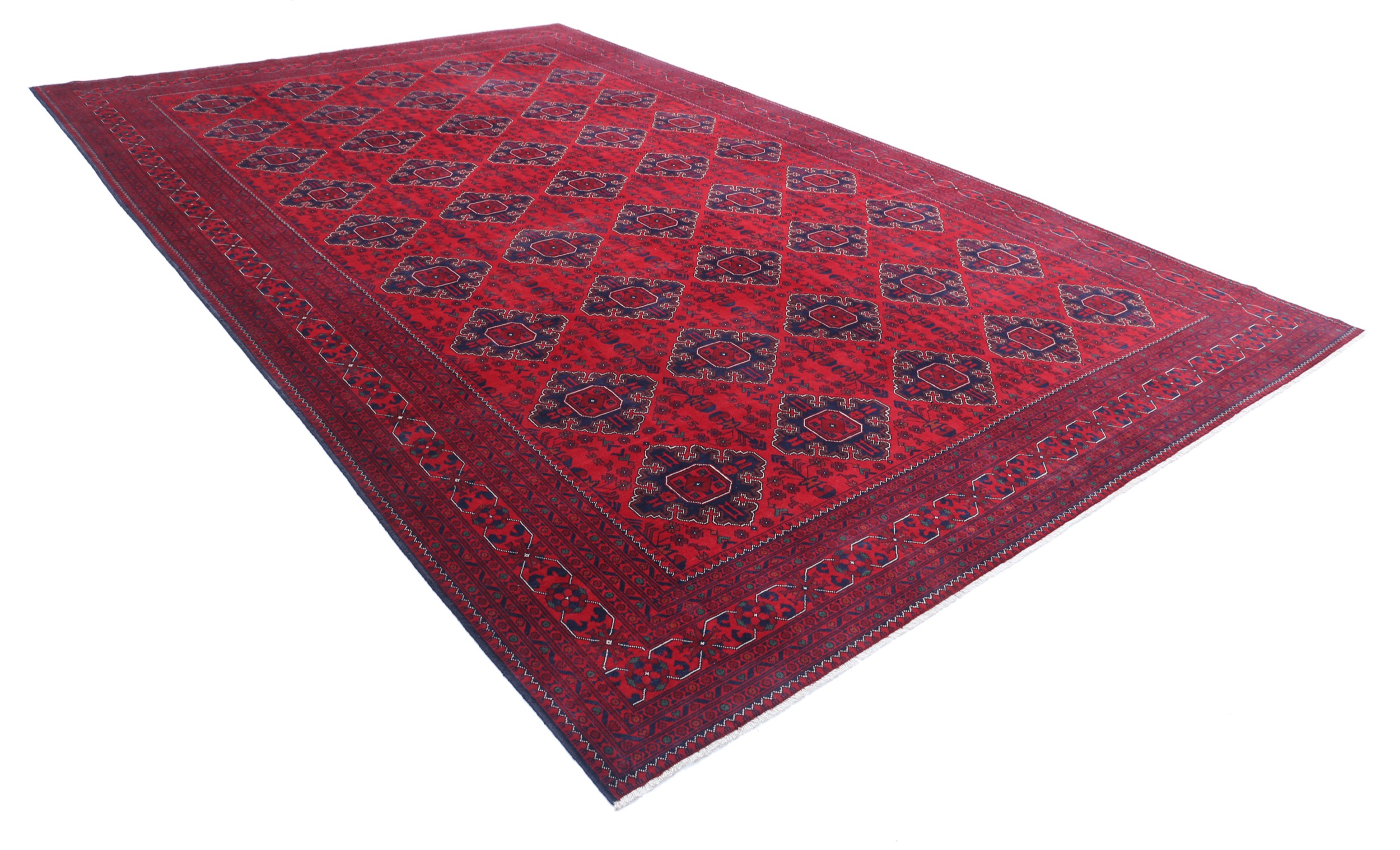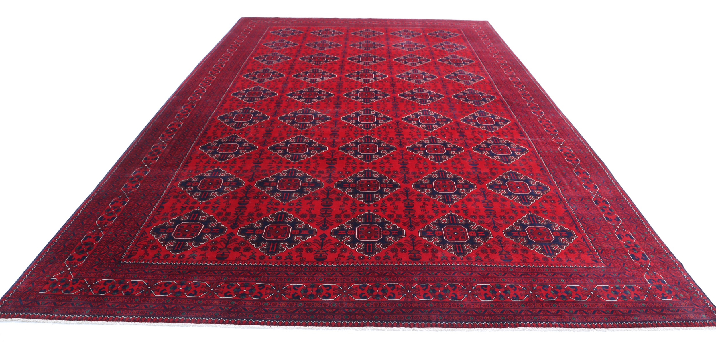 This Khal Mohamadi has a Red field with Red border. Made with 100% Wool pile. Allover design with Approx. 196 KPSI
