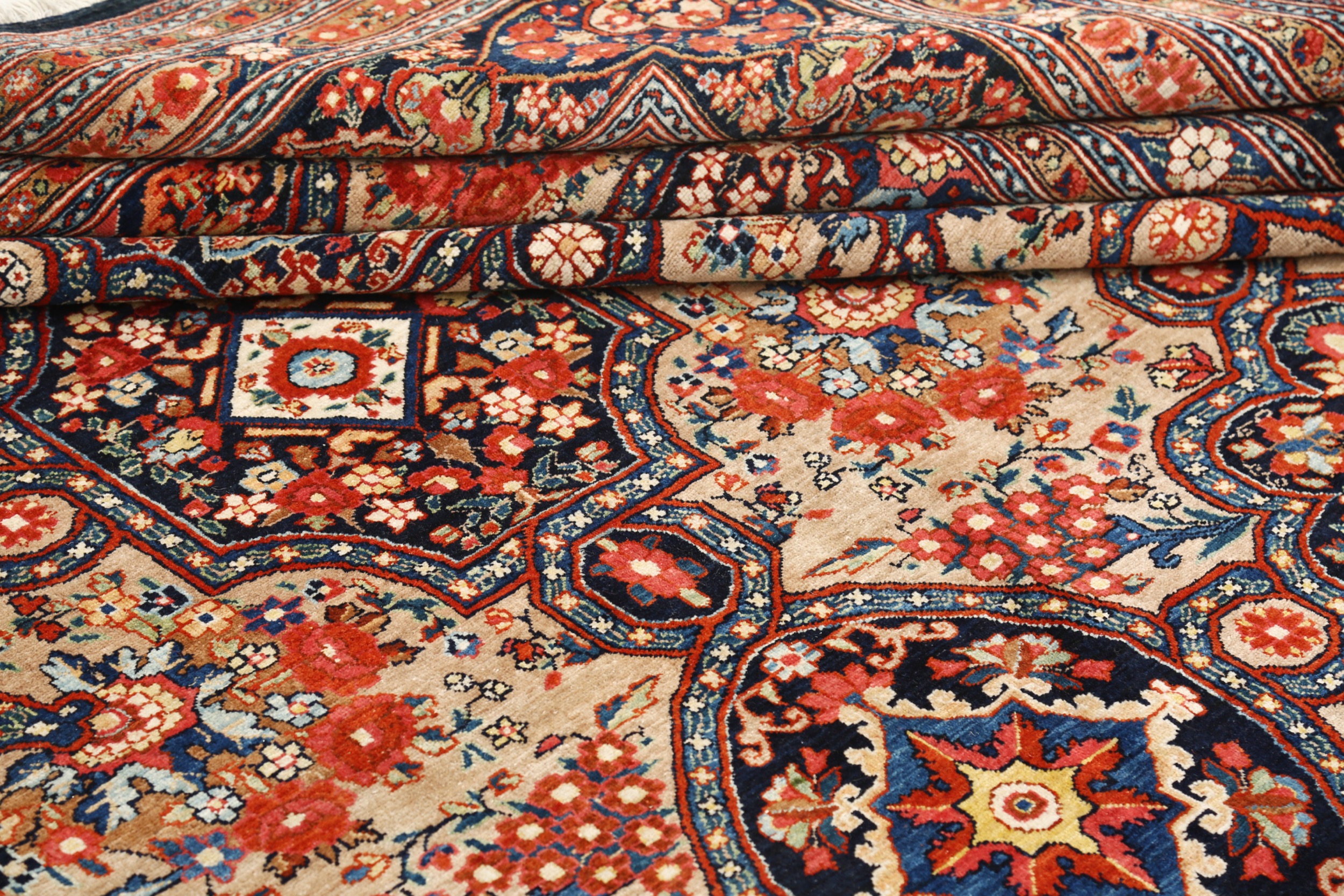This Persian Rug is Hand Knotted with 100% Wool Pile and Cotton Foundation. This Rug has a Floral design and its Main Colors are Blue, Beige, Red, Brown .