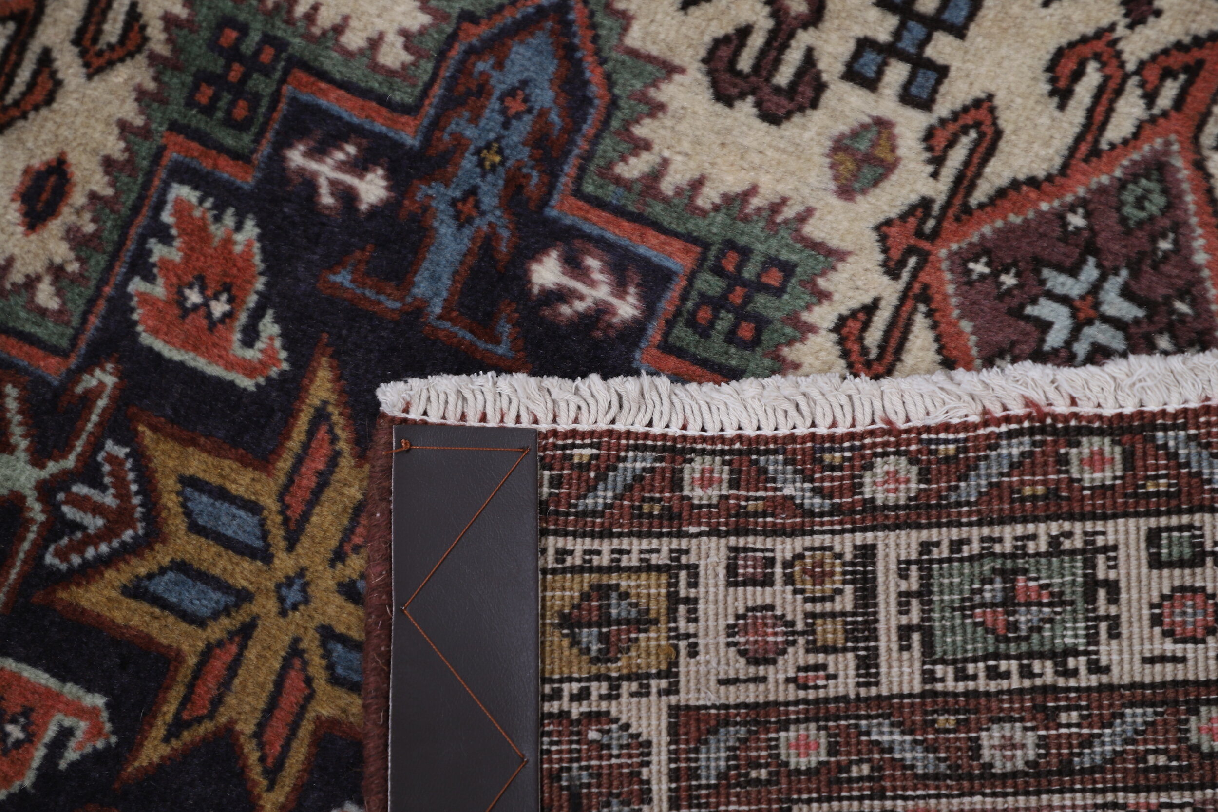 This hand-knotted Azarbaijan Persian rug is a stunning piece measuring 2’8″ x 9’4″. With an age of 10-20 years, it carries a unique charm. The rug features a vibrant color combination of yellow and blue, adorned with captivating geometrical patterns. Made with 100% wool and a high pile measuring 1/2″-5’8″, this rug offers both comfort and durability. With an approximate knot count of 169 KPSI and a cotton foundation, this Ajarbaijan rug is a masterpiece that will complement any space.