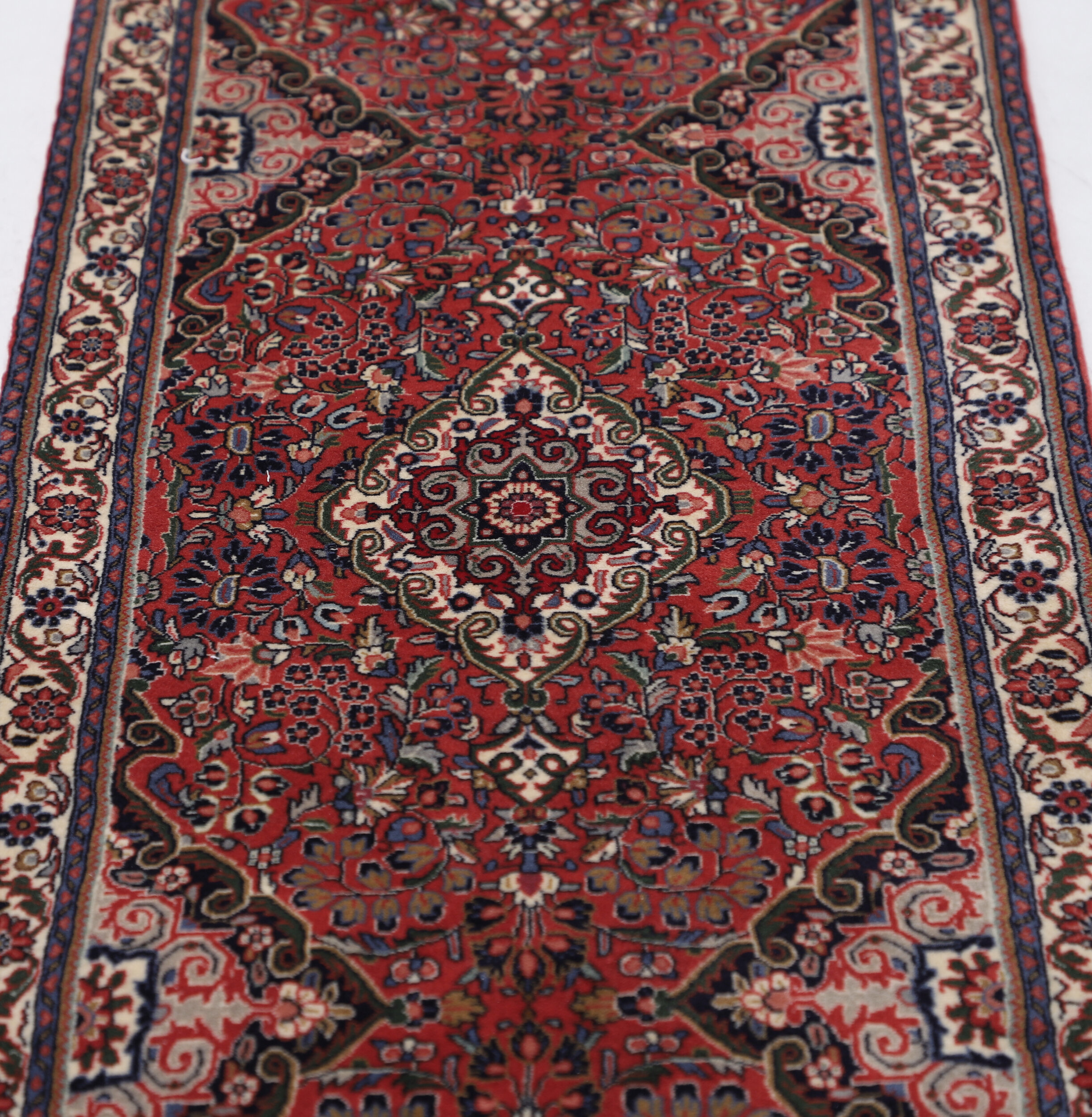 This Persian Rug is Hand Knotted with 100% Wool Pile and Cotton Foundation. This Rug has a Floral Design and its Main color is Red, Beige and Blue.